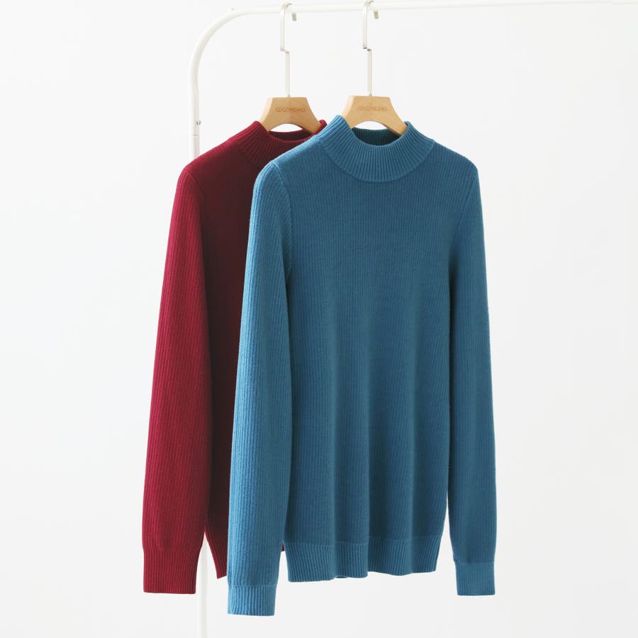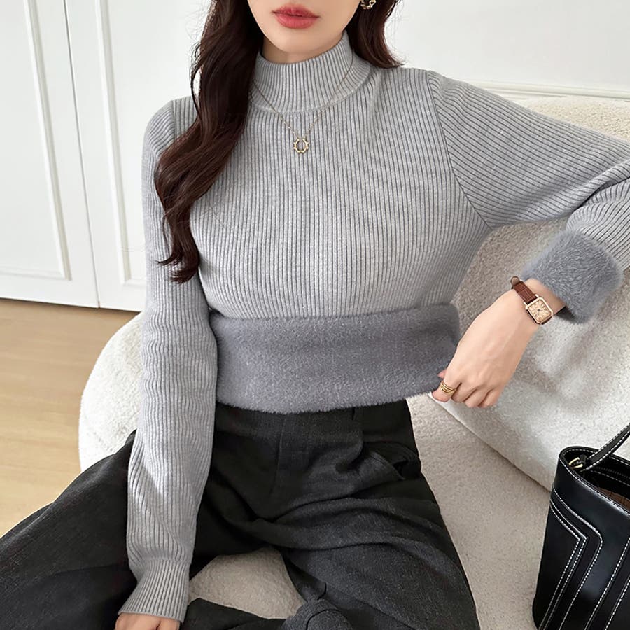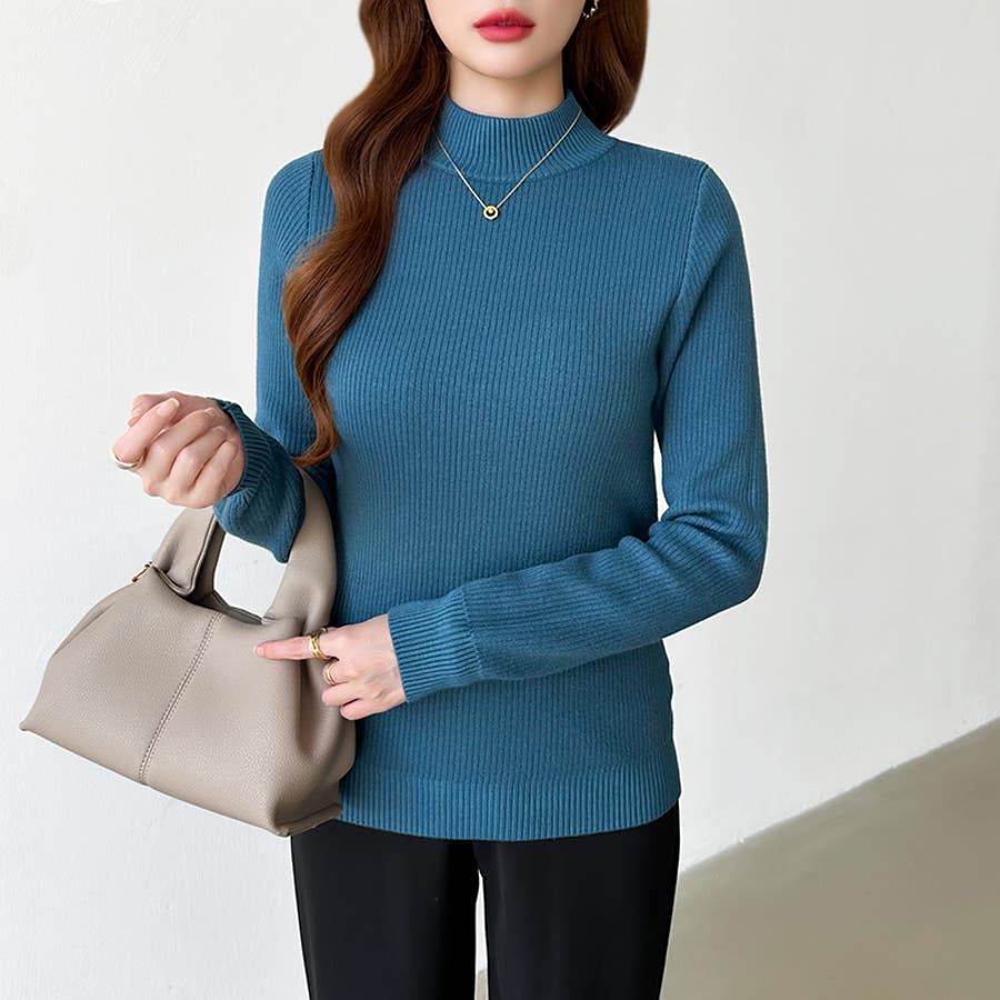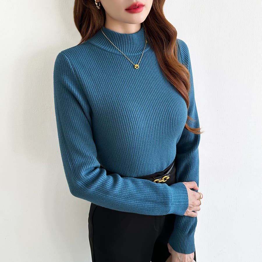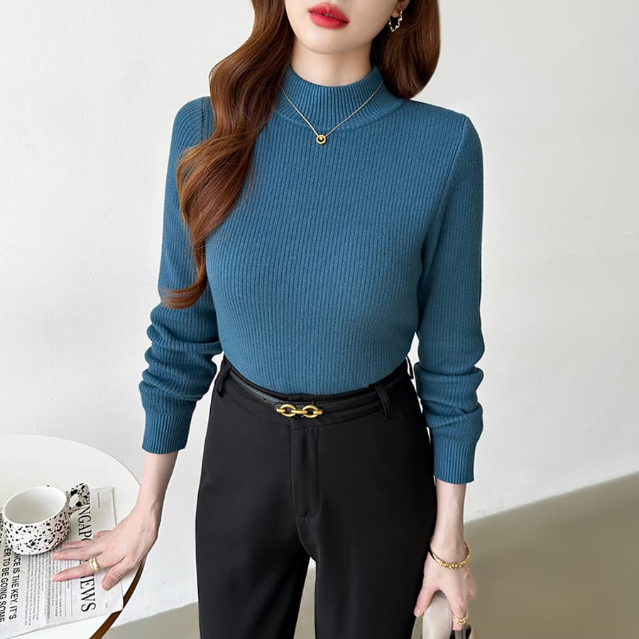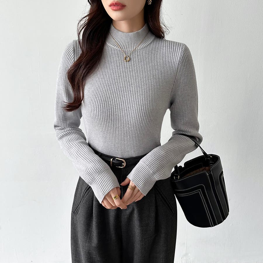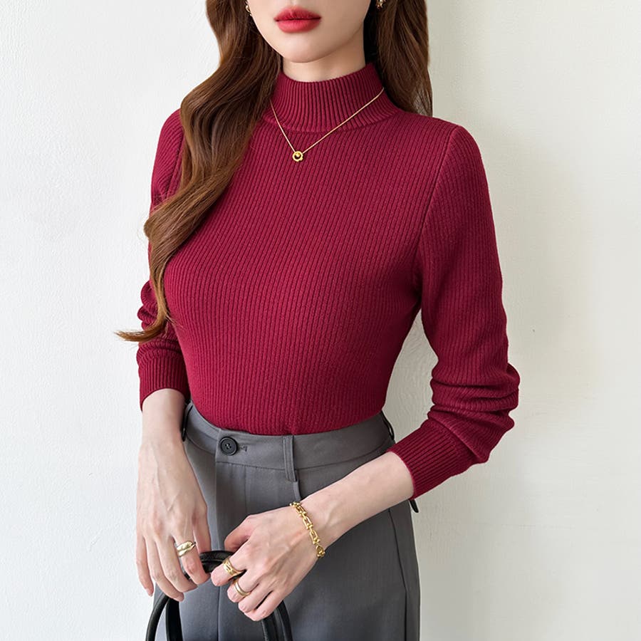 裏起毛ふわもちニット ハイネックリブニット 裏起毛ニット