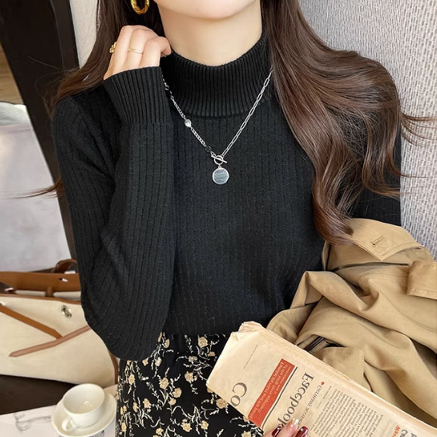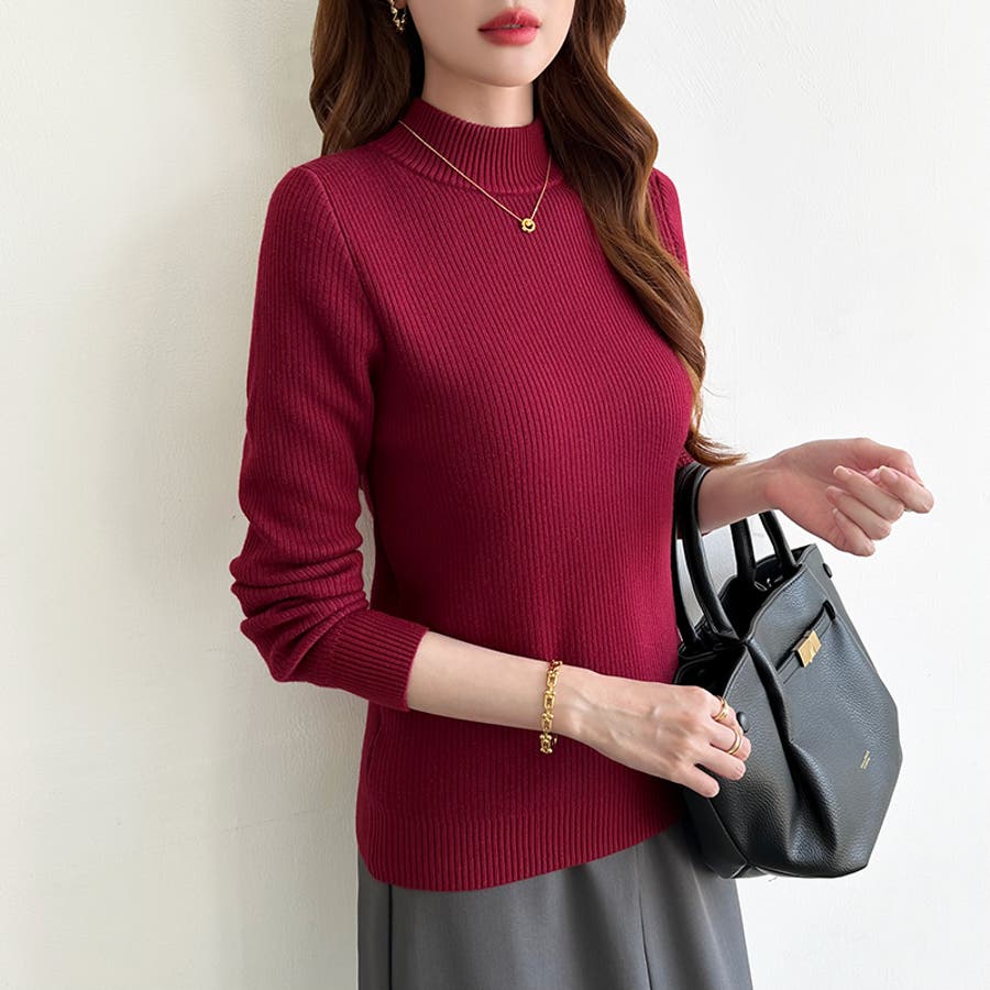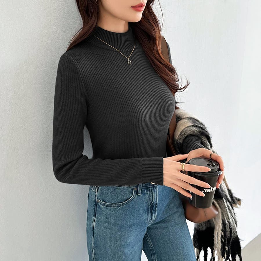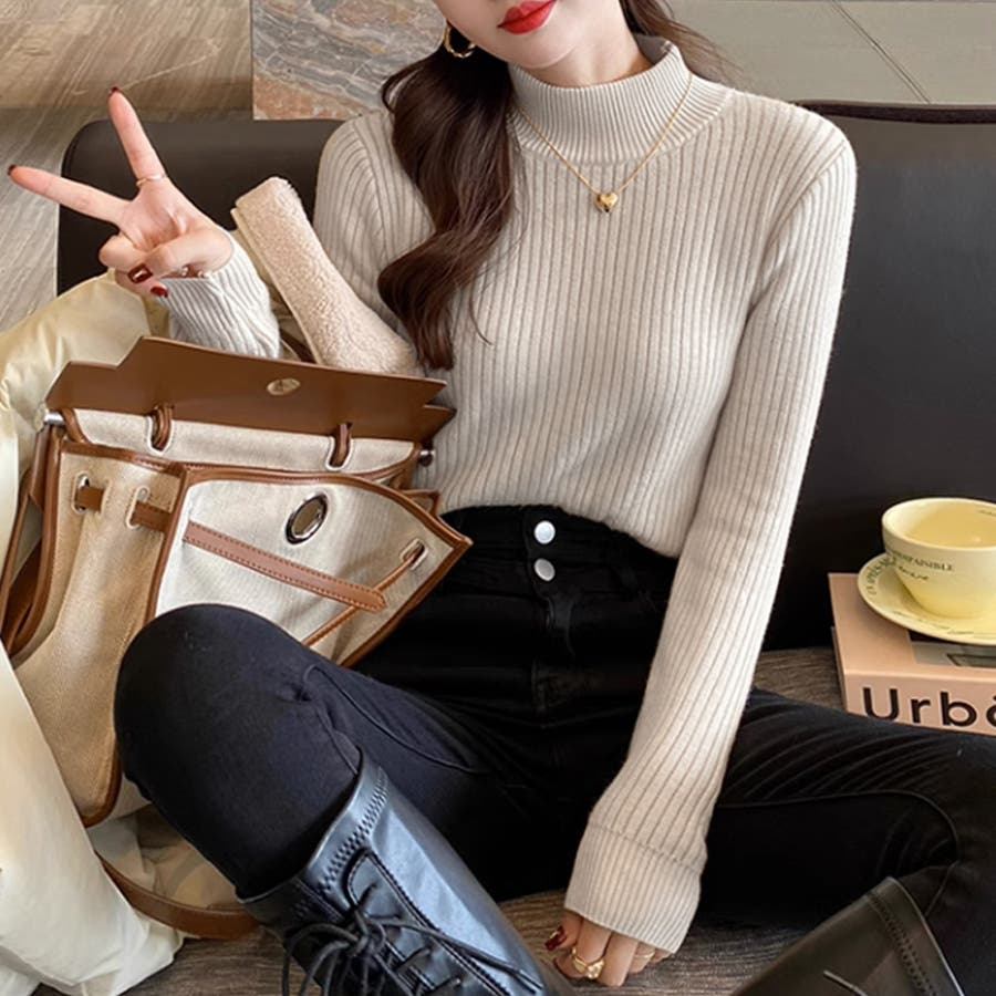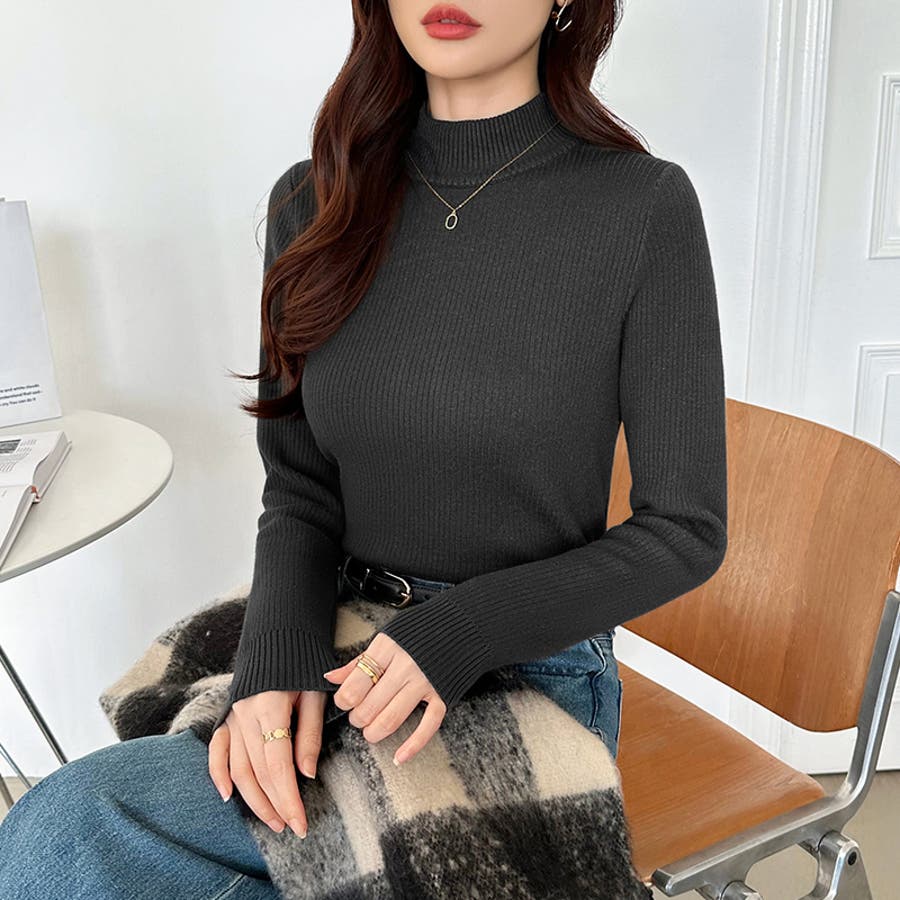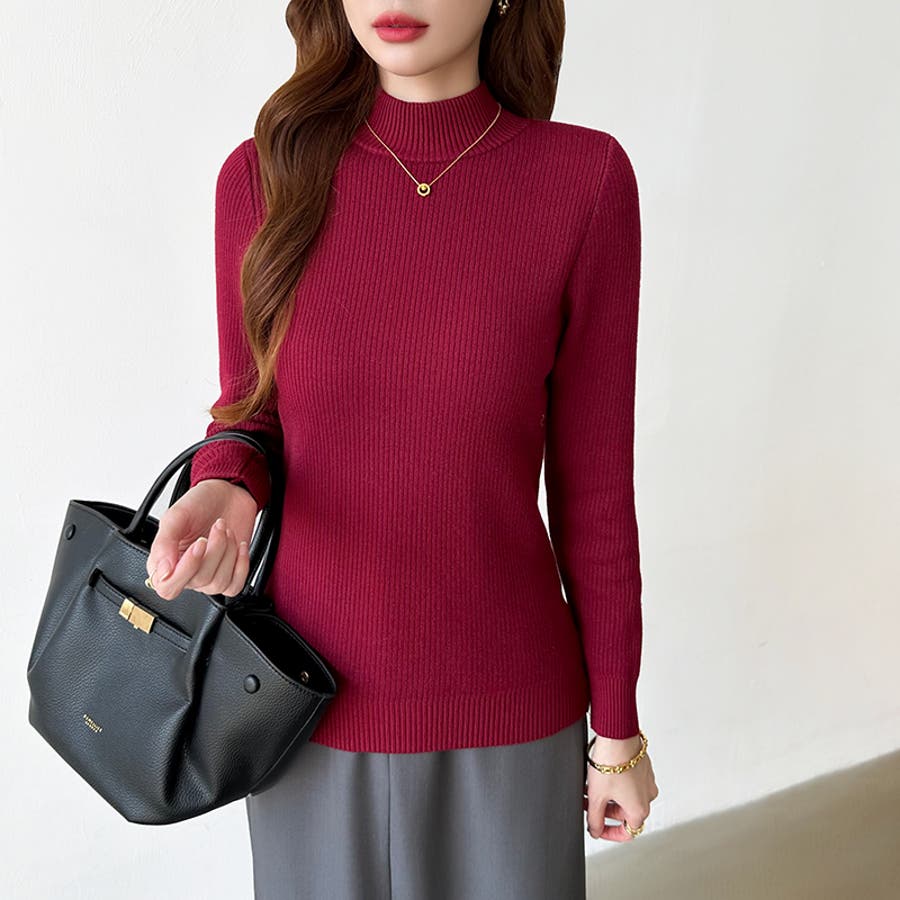 裏起毛ふわもちニット ハイネックリブニット 裏起毛ニット