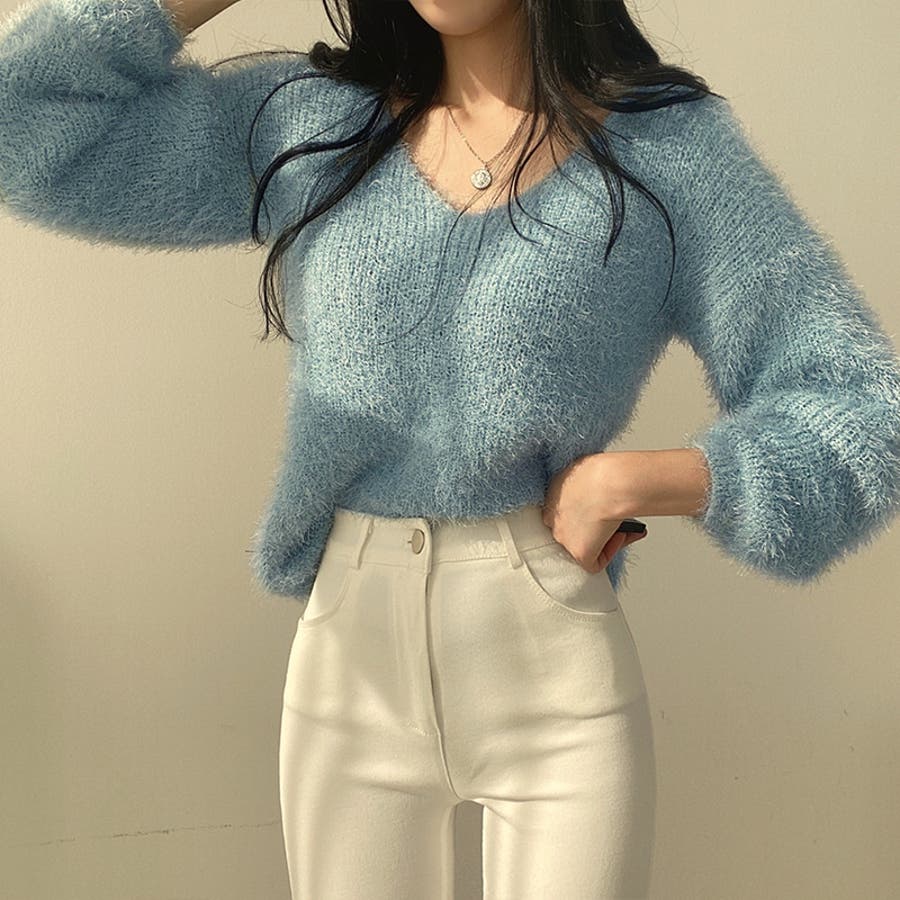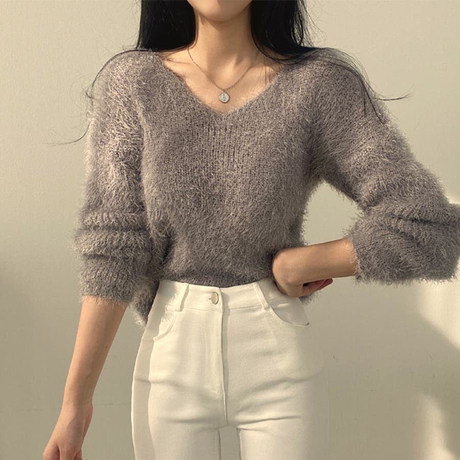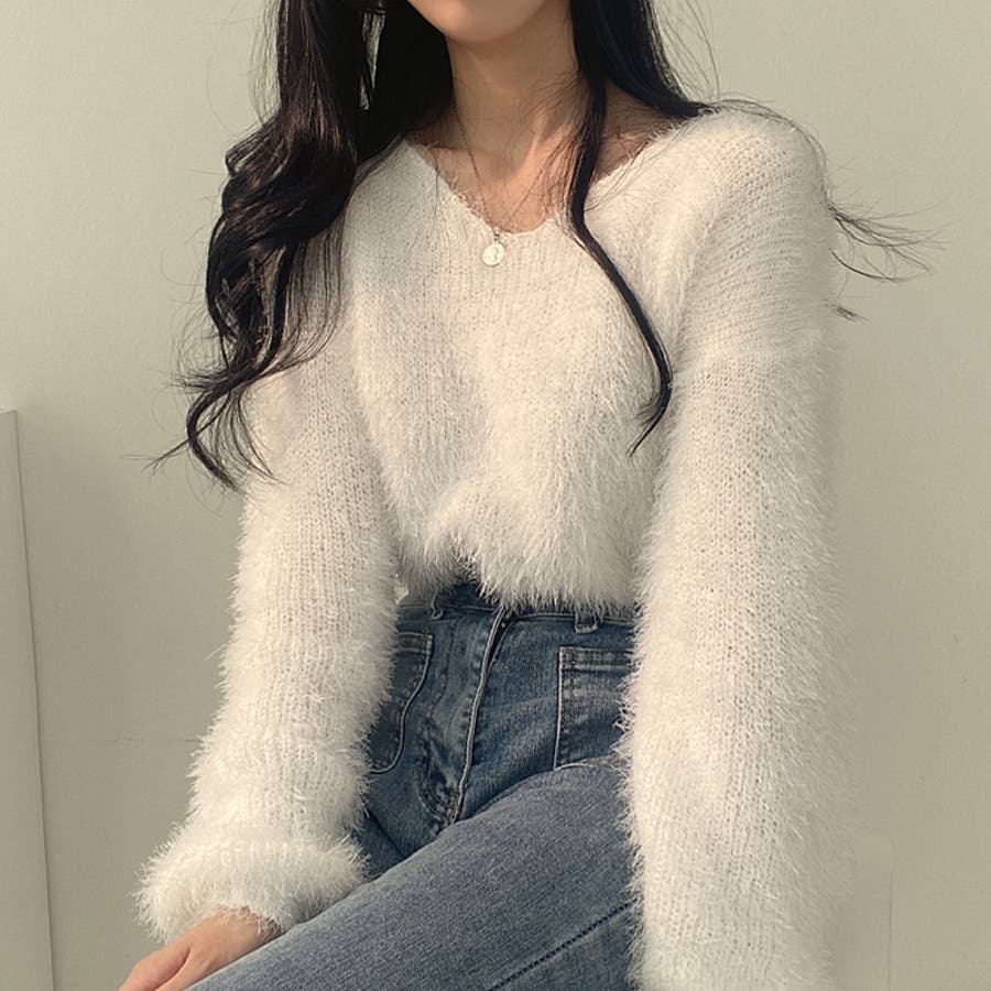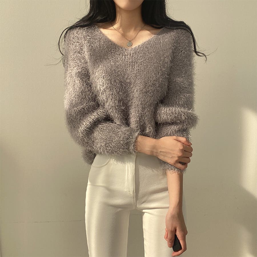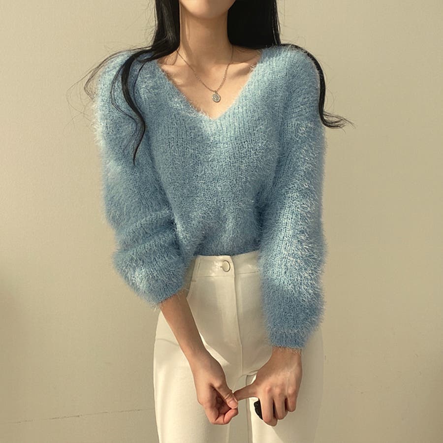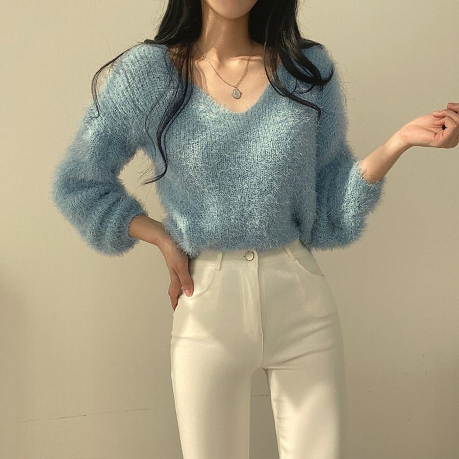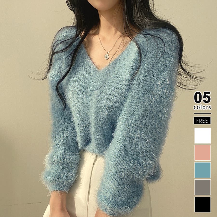 シャギーニット vネック トップス ニット レディース ショート丈 トップス 長袖 セーター シャギー ファー ニットトップス ニットセーター ルーズ ゆる ゆったり 大きめ ニットレディース v プルオーバー ショート 丈 シンプル 無地 モヘア モヘア調 モヘアタッチ フェザーヤーン tops 袖 細見え 華奢見え 着回し 伸縮性 ストレッチ 袖 長め ロングスリーブ ボリューム ボリューム袖 ボリュームスリーブ 起毛 アクリル アクリル100% ふんわり ふわふわ ふわもこ もこもこ 柔らかい やわらかい やわらか なめらか チクチクしない チクチクしにくい ヤク風 ヤク風ニット 骨格ウェーブ 暖か 暖かい あたたかい あったか 韓国風 フェミニン ガーリーセクシー カジュアル 大人 オトナ かわいい 可愛い 大人可愛い おしゃれ オシャレ プチプラ 高見え フリーサイズ トレンド ヒット 商品 おすすめ 服 ファッション ホワイト 白 ピンク ブルー 水色 グレー 灰色 ブラック 黒 くすみ カラー くすみカラー 秋色 新作 2023aw 2023AW 23年 2023 秋冬新作 秋冬 春 秋 冬 春服 秋服 冬服 韓国 韓国ファッション 10代 20代 30代 40代 50代 60代 cocomomo ココモモ