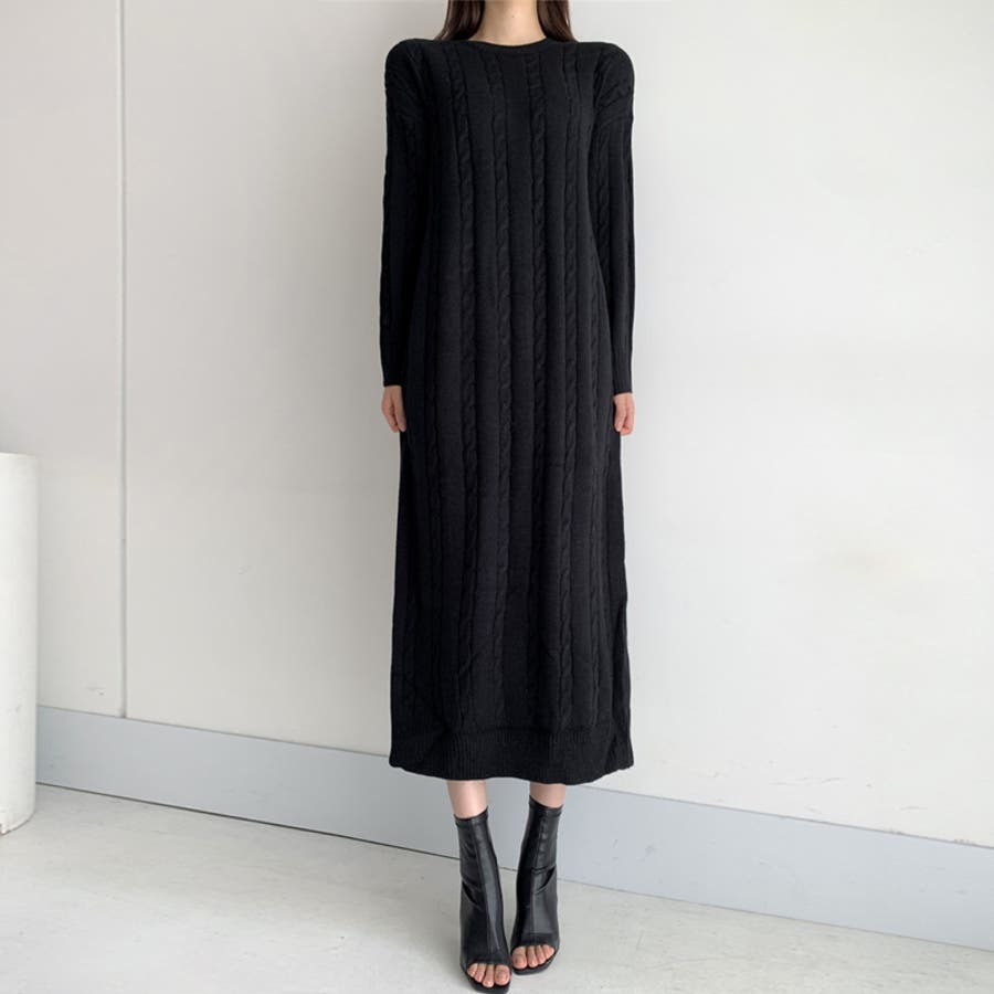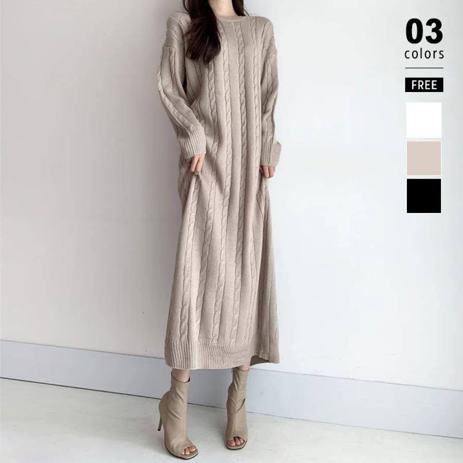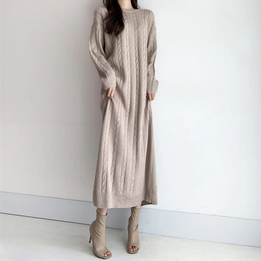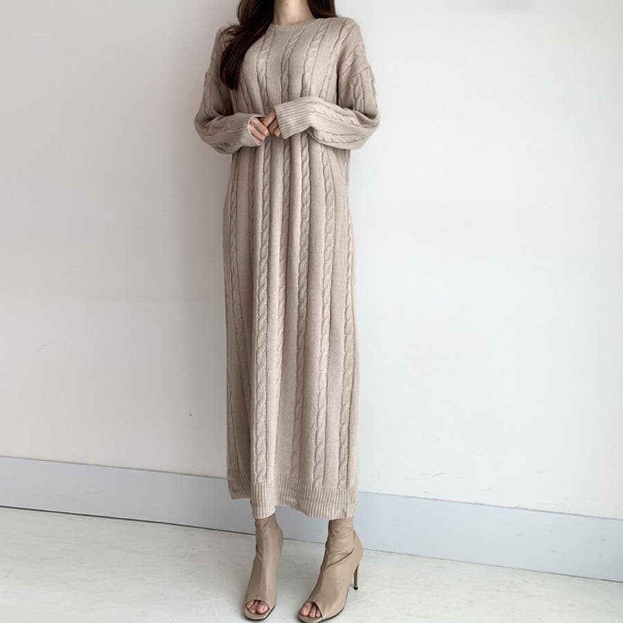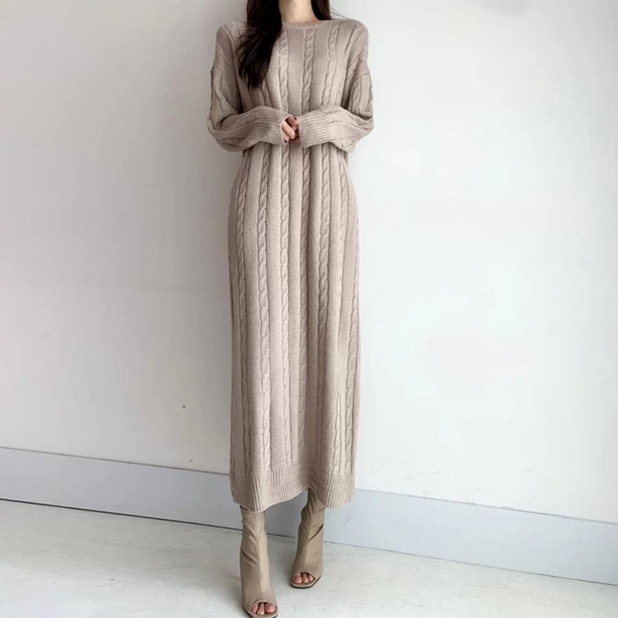 ケーブルニットワンピース ロングワンピース ケーブル編み