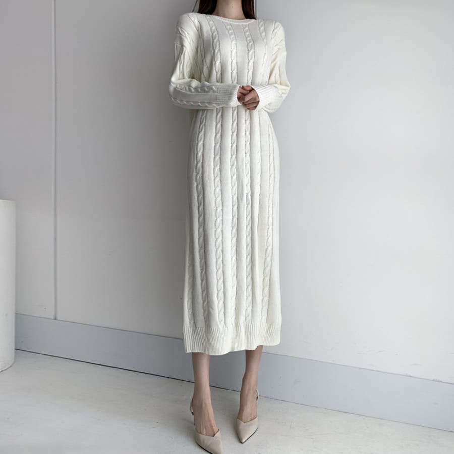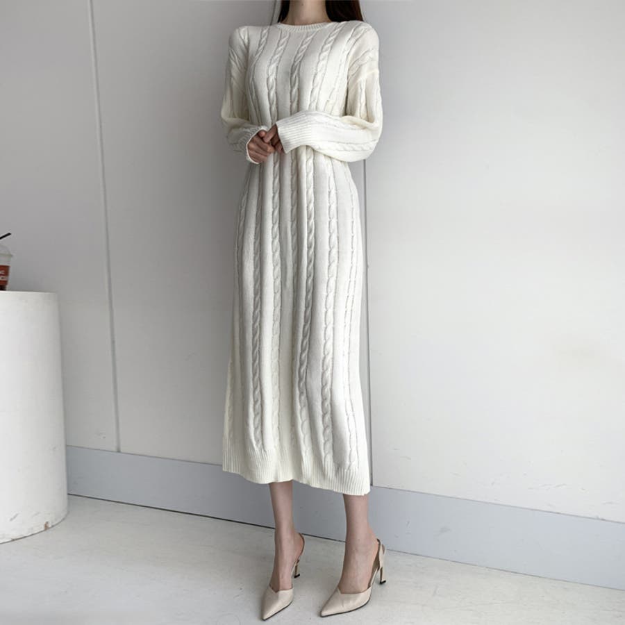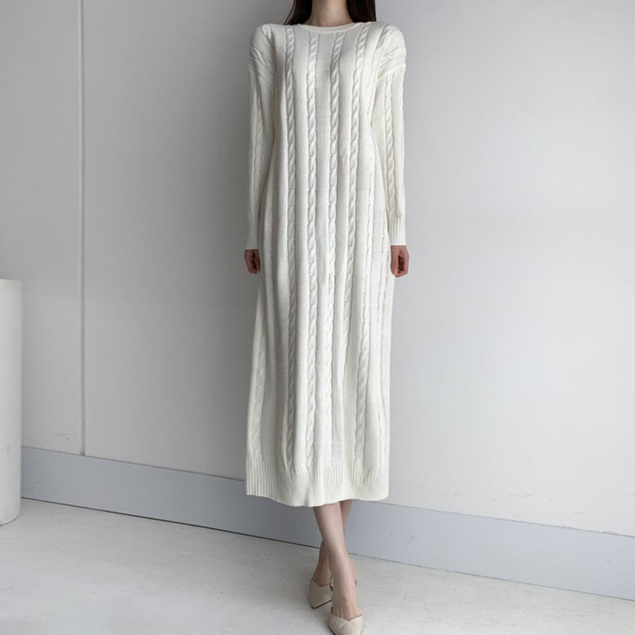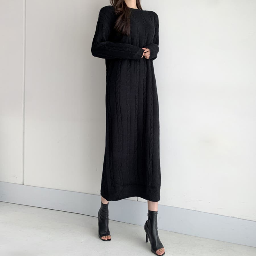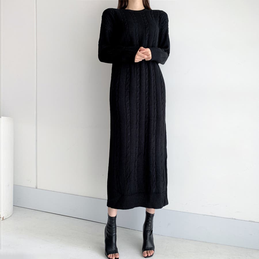 ケーブルニットワンピース ロングワンピース ケーブル編み