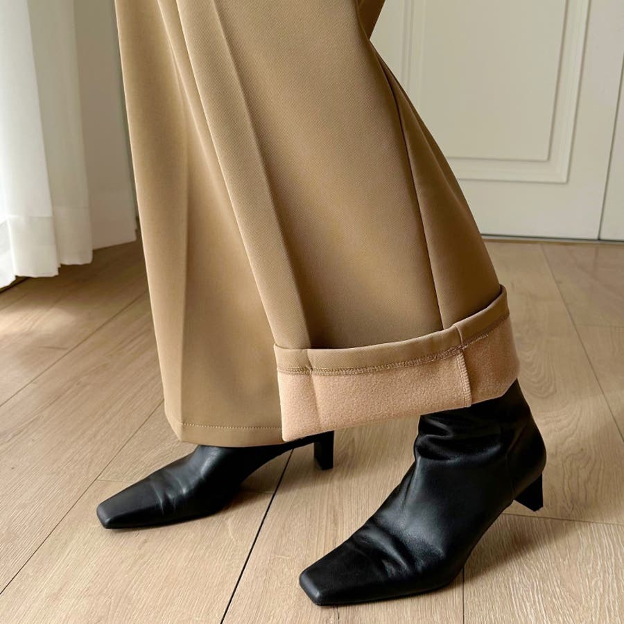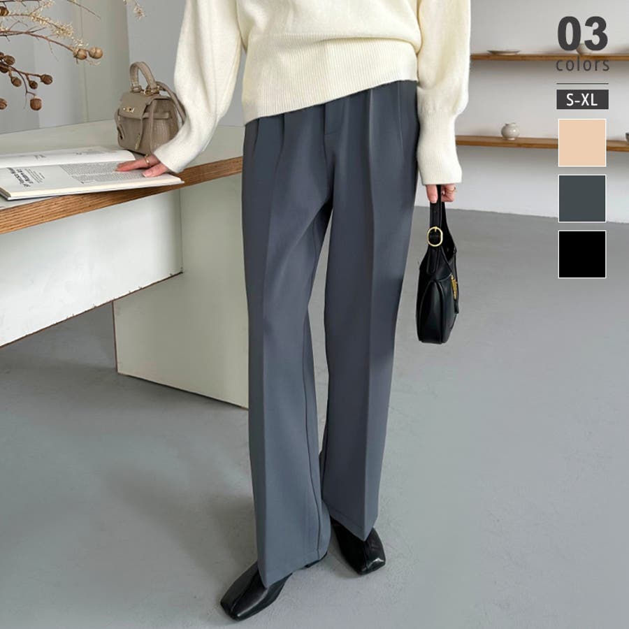 裏起毛 スラックスパンツ ストレートワイドパンツ