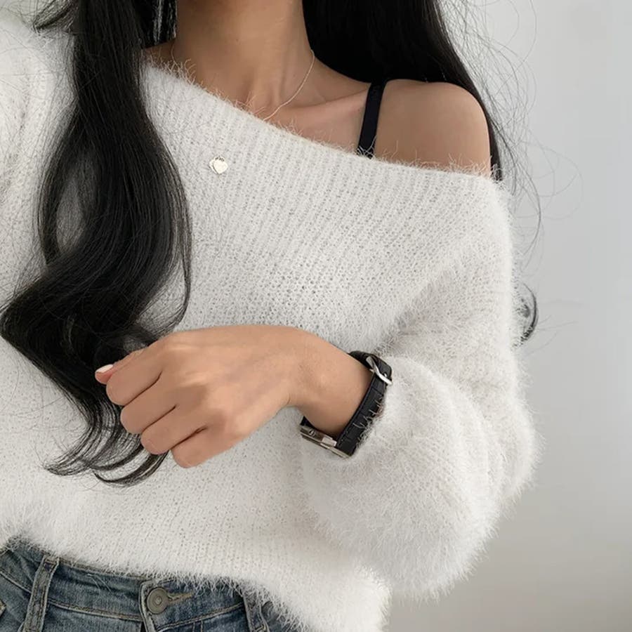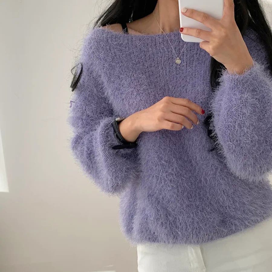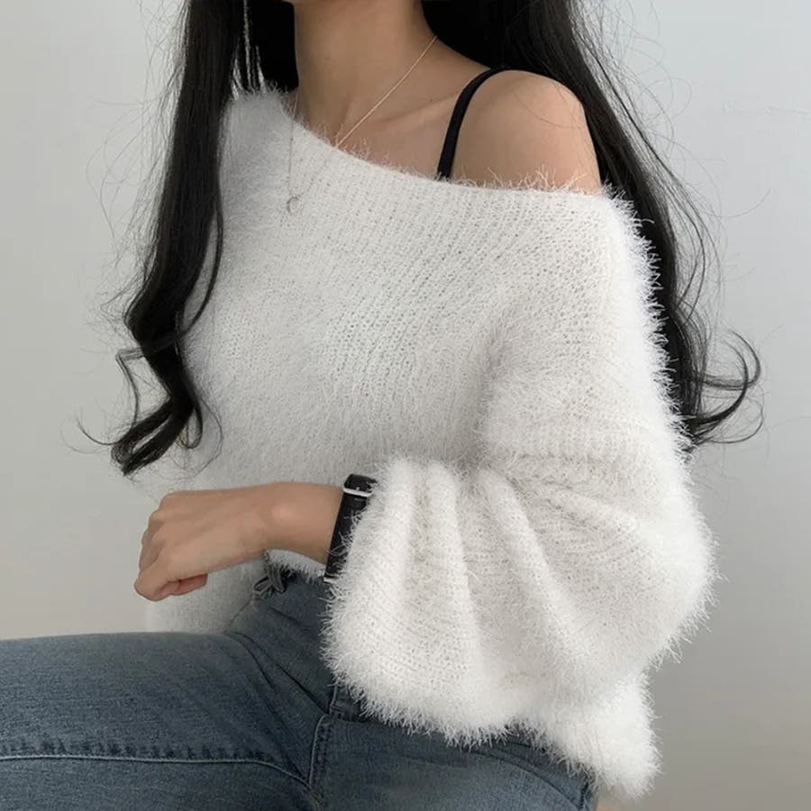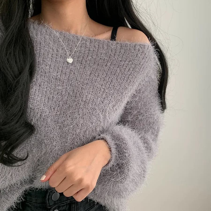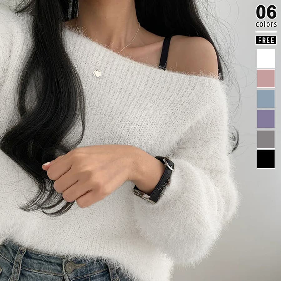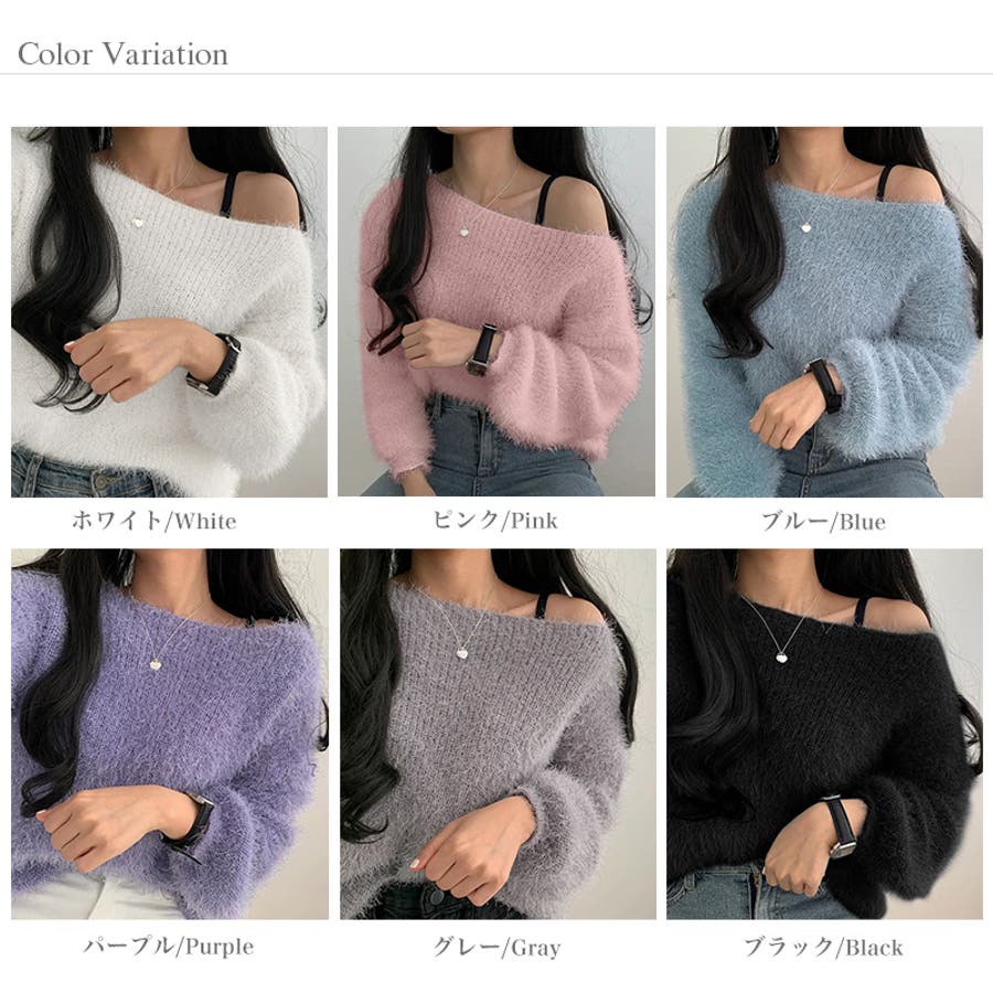シャギーニット ふわふわ ニット フェザーヤーン オフショル トップス レディース 長袖 ボートネック オフショルダー セーター シャギー ファー ニットトップス ニットセーター ニットレディース プルオーバー シンプル 無地 モヘア モヘア調 モヘアタッチ tops ボリューム ボリューム袖 ボリュームスリーブ ぽわん ポワン ぽわん袖 ファータッチ 細見え 華奢見え 着回し 伸縮性 ストレッチ 起毛 アクリル ふわふわ ふわもこ モコモコ モケモケ 柔らかい やわらかい やわらか なめらか ふんわり もちもち チクチクしない チクチクしにくい 洗える 洗濯機で洗える 暖かい あたたかい あったか 韓国風 セクシー フェミニン ガーリー カジュアル 大人 オトナ かわいい 可愛い 大人可愛い おしゃれ オシャレ プチプラ 高見え フリーサイズ トレンド ヒット 商品 おすすめ 服 ファッション ホワイト 白 グレー 灰色 ピンク ブラック 黒 ブルー 水色 青 パープル 紫 くすみ カラー くすみカラー 秋色 新作 2023aw 2023AW 23年 2023 秋冬新作 秋冬 春 秋 冬 春服 秋服 冬服 韓国 韓国ファッション 10代 20代 30代 40代 50代 60代 cocomomo ココモモ