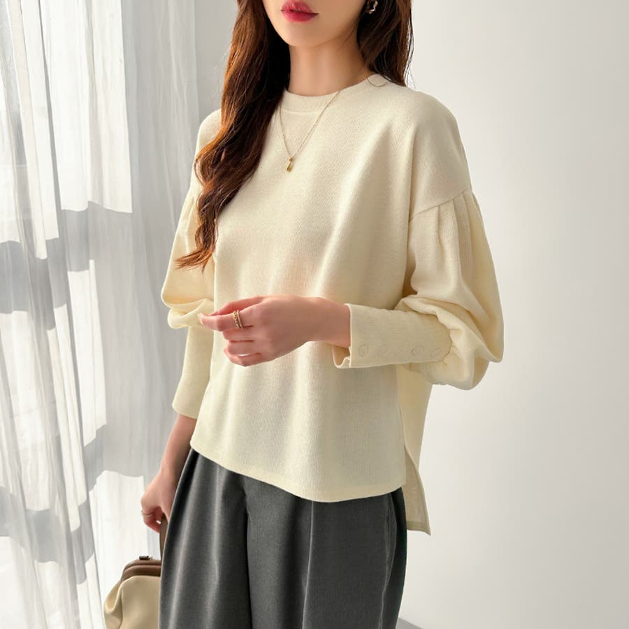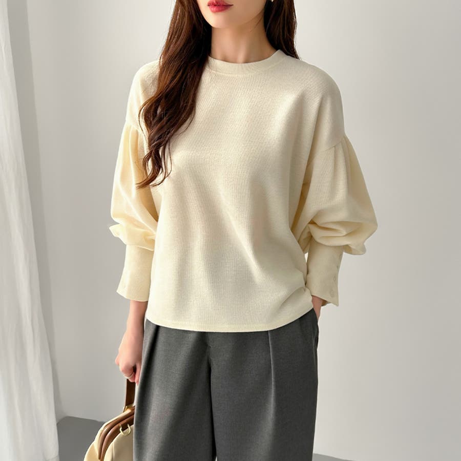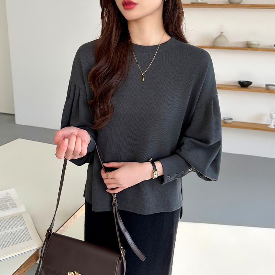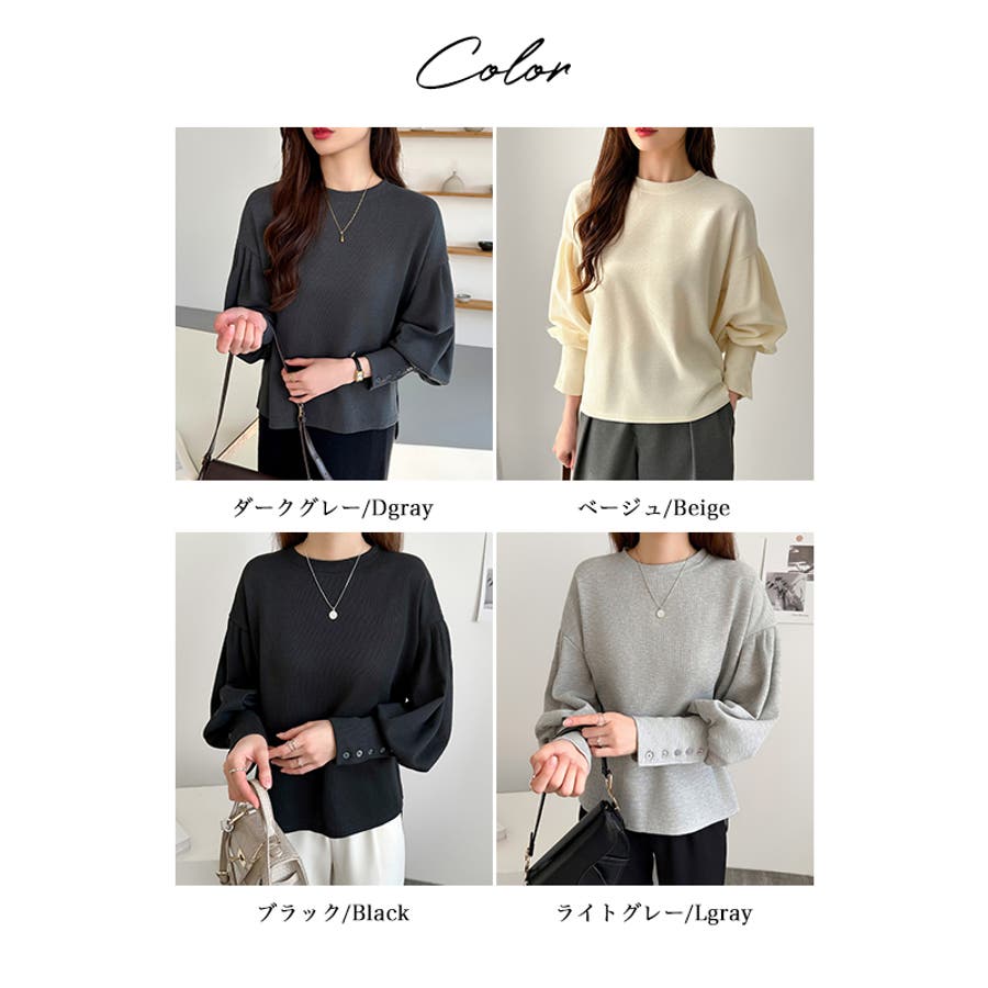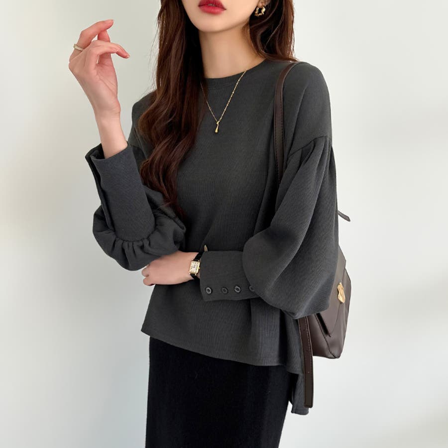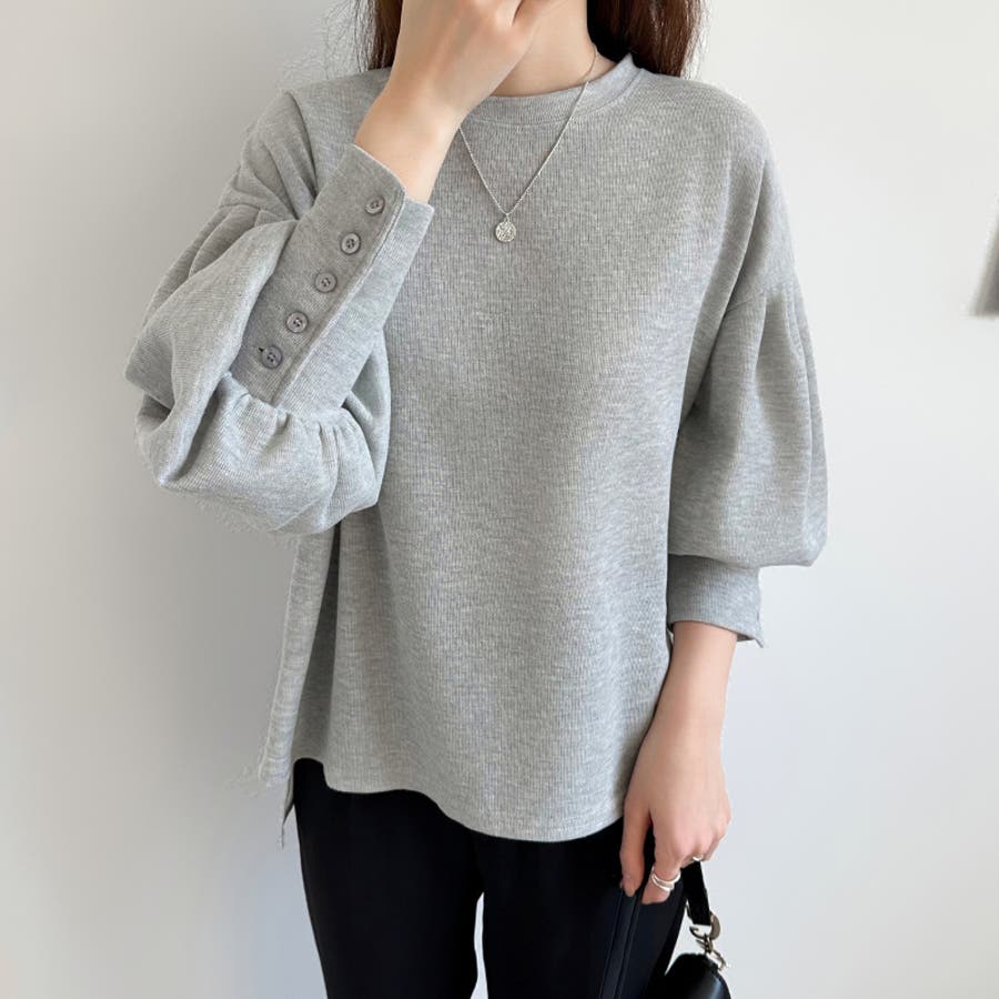 カットソー 長袖 レディース きれいめ トレーナー おしゃれ トップス スウェット クルーネック ラウンドネック プルオーバー ゆったり 体型カバー お尻カバー カバー 隠し ボリューム ボリューム袖 ボリュームスリーブ バルーンスリーブ バルーン袖 カフス 袖 ボタン 後ろ 長め 後ろ長め スリット スリット入り ロングテール フィッシュテール 前後差ドロップショルダー tops シンプル 無地 ぽわん ポワン ぽわん袖 タック タック入り ふんわり やわらか やわらかい ソフトな肌触り ストレッチ 伸縮性 洗える 洗濯機で洗える 1枚で決まる コットン 綿 ポリエステル オフィス オフィスカジュアル オフィスカジュアル秋冬 オフィスコーデ オフィスファッション カジュアル フェミニン 上品 大人 綺麗 きれい め キレイめ かわいい 可愛い 大人かわいい 大人可愛い オトナ女子 オシャレ 通勤 通学 仕事 OL ビジネス プチプラ 高見え トレンド ヒット 商品 おすすめ 服 ファッション コーデ フリーサイズ ダークグレー 灰色 ベージュ ブラック 黒 ライトグレー aw 春秋 秋冬 春 秋 冬 春服 秋服 冬服 春物 秋物 冬物 秋色 韓国 韓国ファッション 10代 20代 30代 40代 50代 cocomomo ココモモ