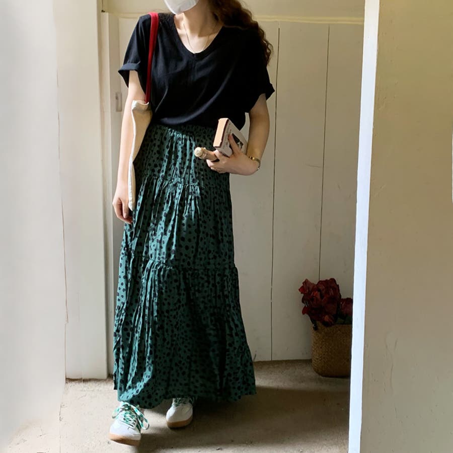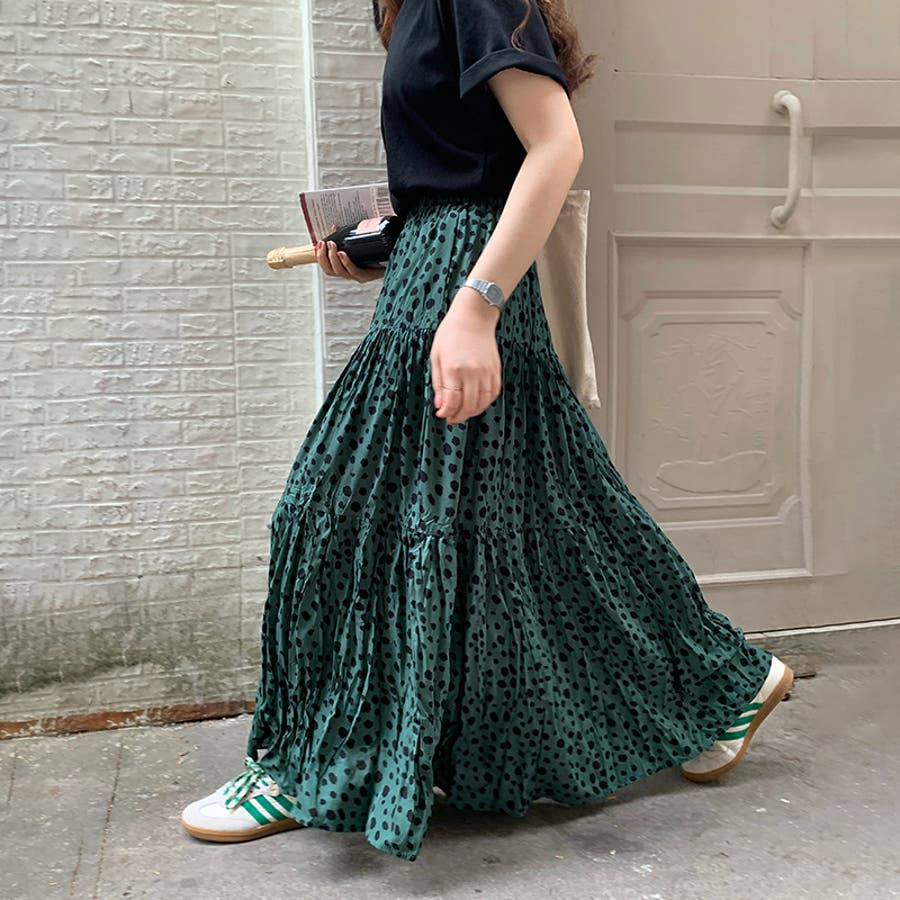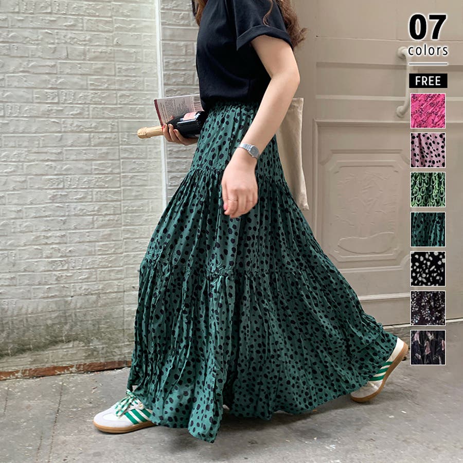 ティアードスカート ロング スカート ロングスカート プリーツ ギャザー ティアード フレア フレアスカート ロング丈 マキシ 丈 マキシスカート レディース ハイウエスト ウエスト ゴム ウエストゴム ボリューム 膝下 長め aライン ふんわり お腹 ゆったり 体型カバー 体型 カバー 隠し 楽ちん らくちん ボトムス 裏 地 裏地 裏地付き 裏地あり ダルメシアン柄 ダルメシアン 柄 総柄 花柄 小花柄 ボタニカル ボタニカル柄 レオパード アニマル柄 アニマル 伸縮性 ストレッチ ポリエステル 柔らかい やわらかい 柔らか やわらか 柔らかい素材 着回し 洗える 洗濯機で洗える エスニック アジアン カジュアル フェミニン ガーリー レトロ 華やか 大人 かわいい 可愛い 大人可愛い オトナ女子 おしゃれ オシャレ 通勤 通学 トレンド ヒット 商品 おすすめ 服 ファッション コーデ プチプラ 高見え ママ ママコーデ 母 女性 グリーン 緑 ピンク ブラック 黒 新作 ss aw 春物 夏物 秋物 冬物 春用 夏用 秋用 冬用 春夏 秋冬 春 夏 秋 冬 春服 夏服 秋服 冬服 韓国 韓国ファッション 10代 20代 30代 40代 50代 60代 cocomomo ココモモ