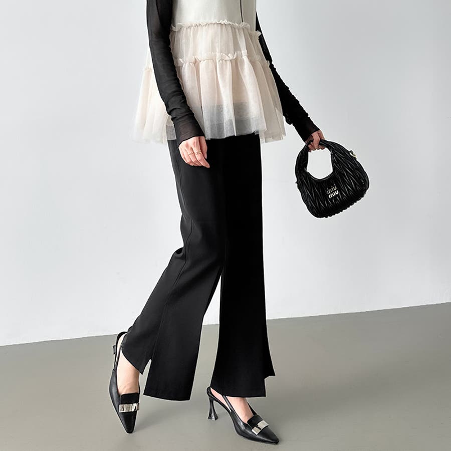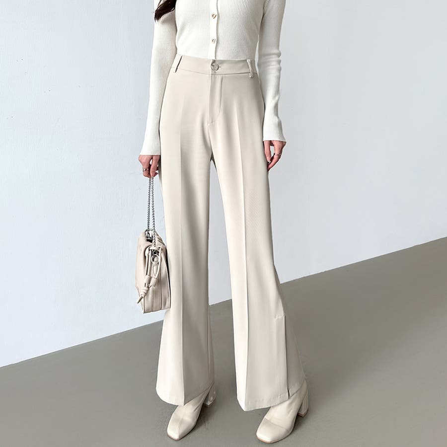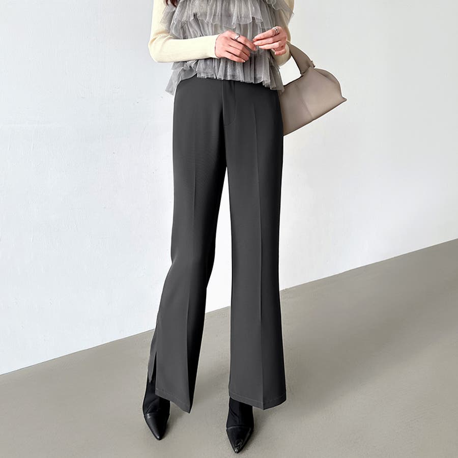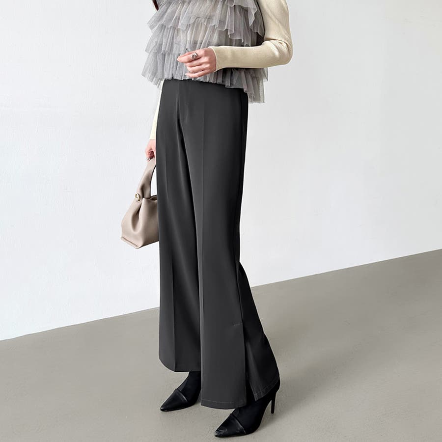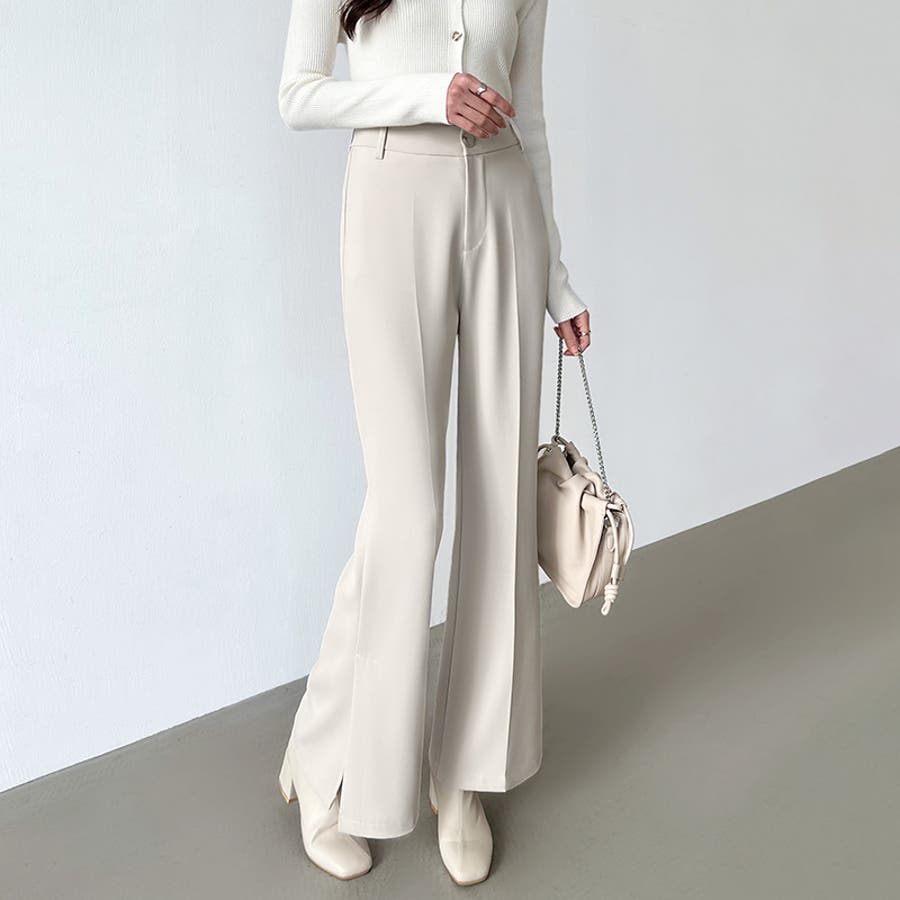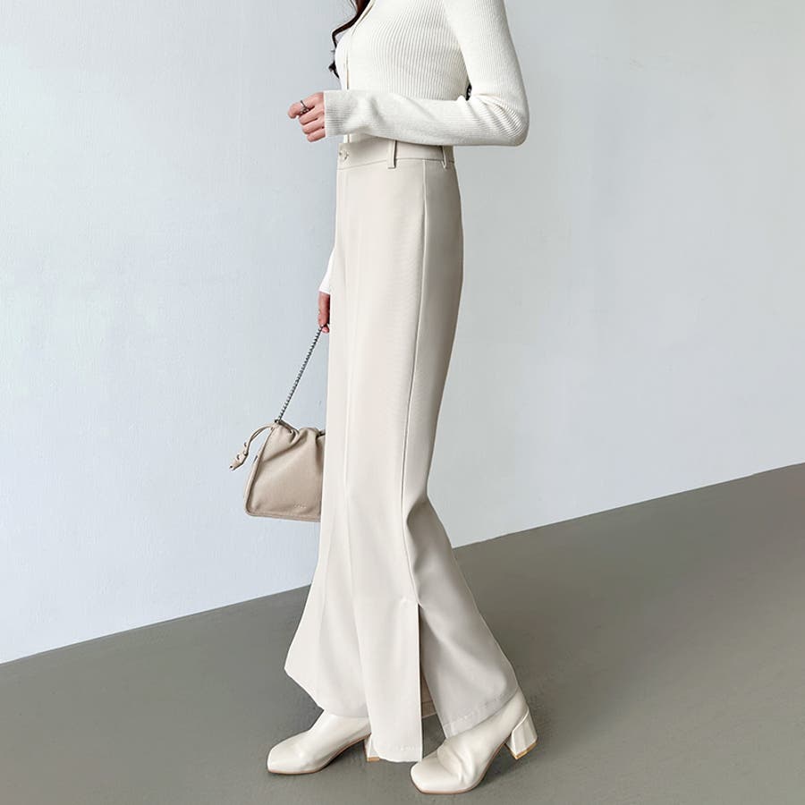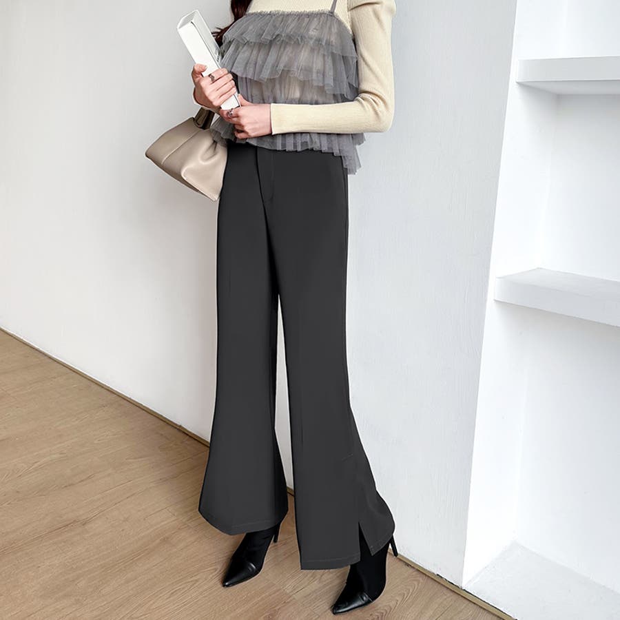 サイドスリットフレアパンツ。