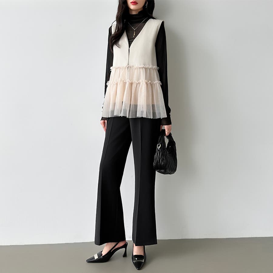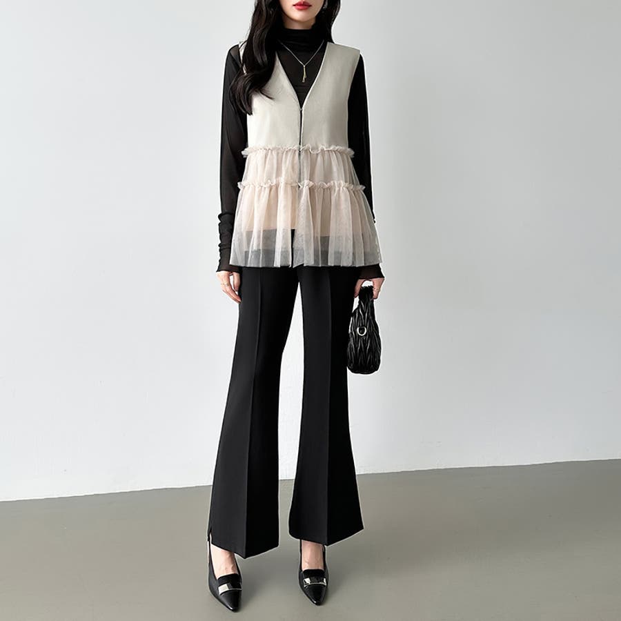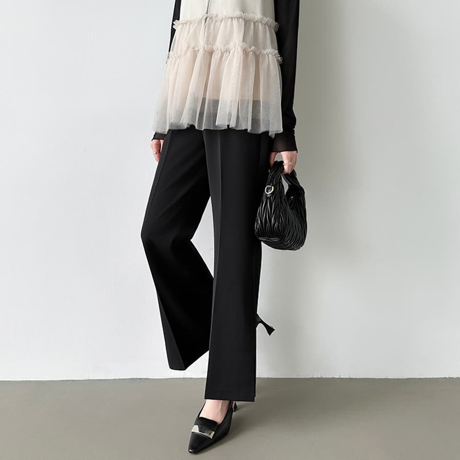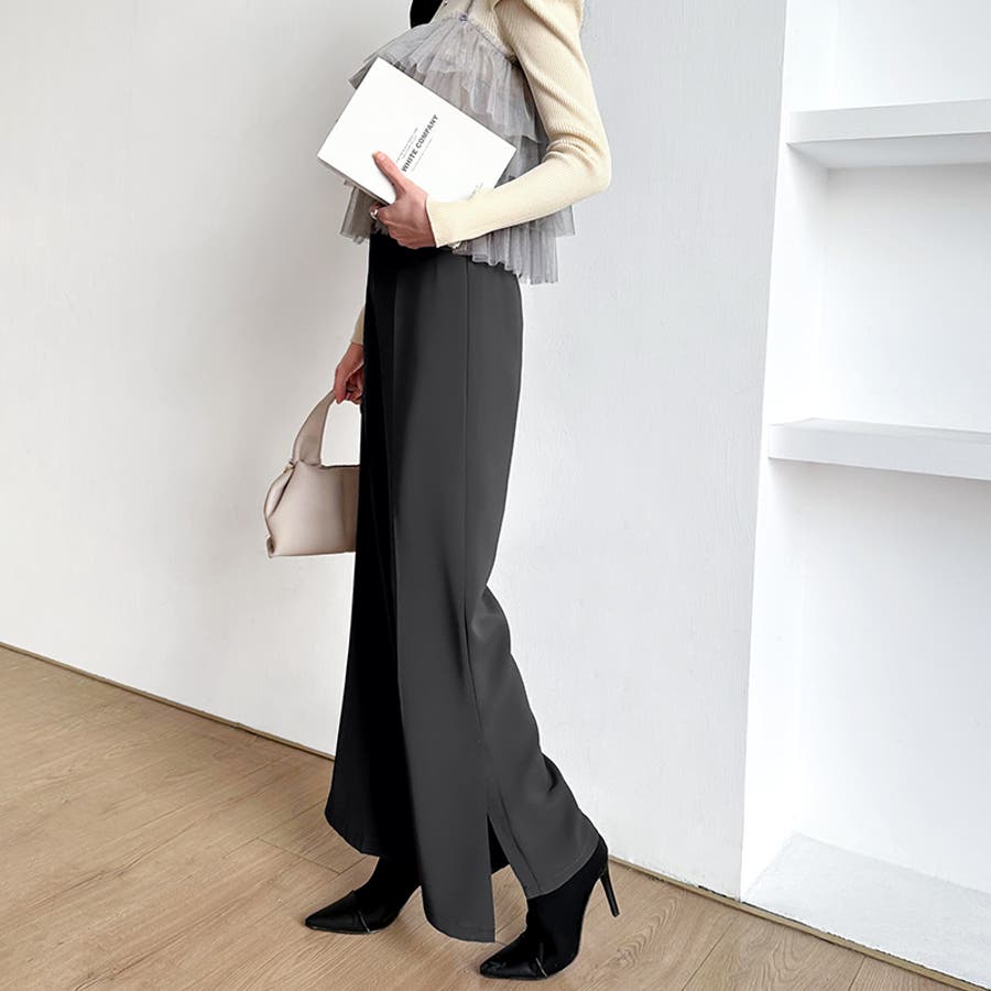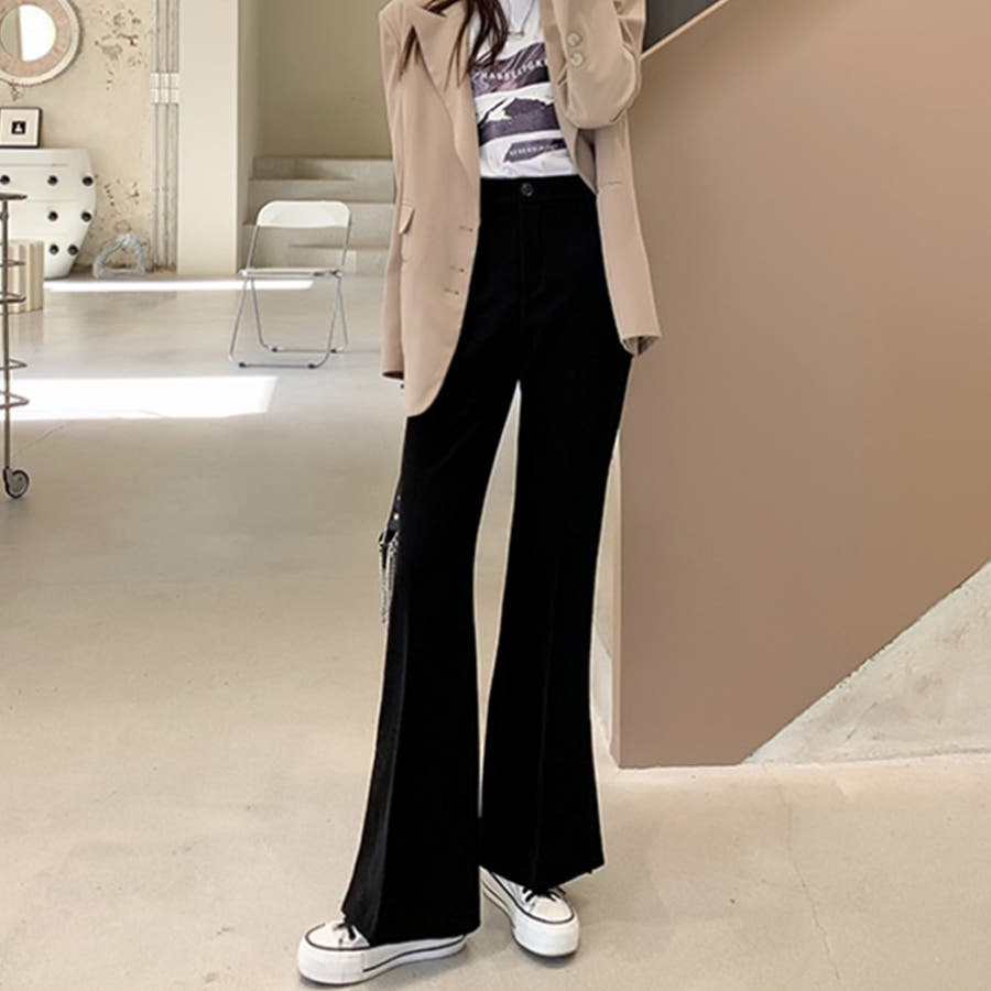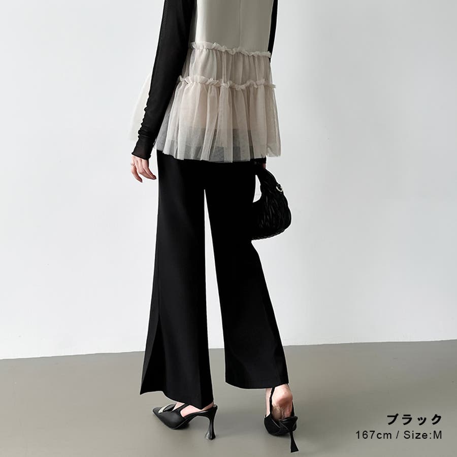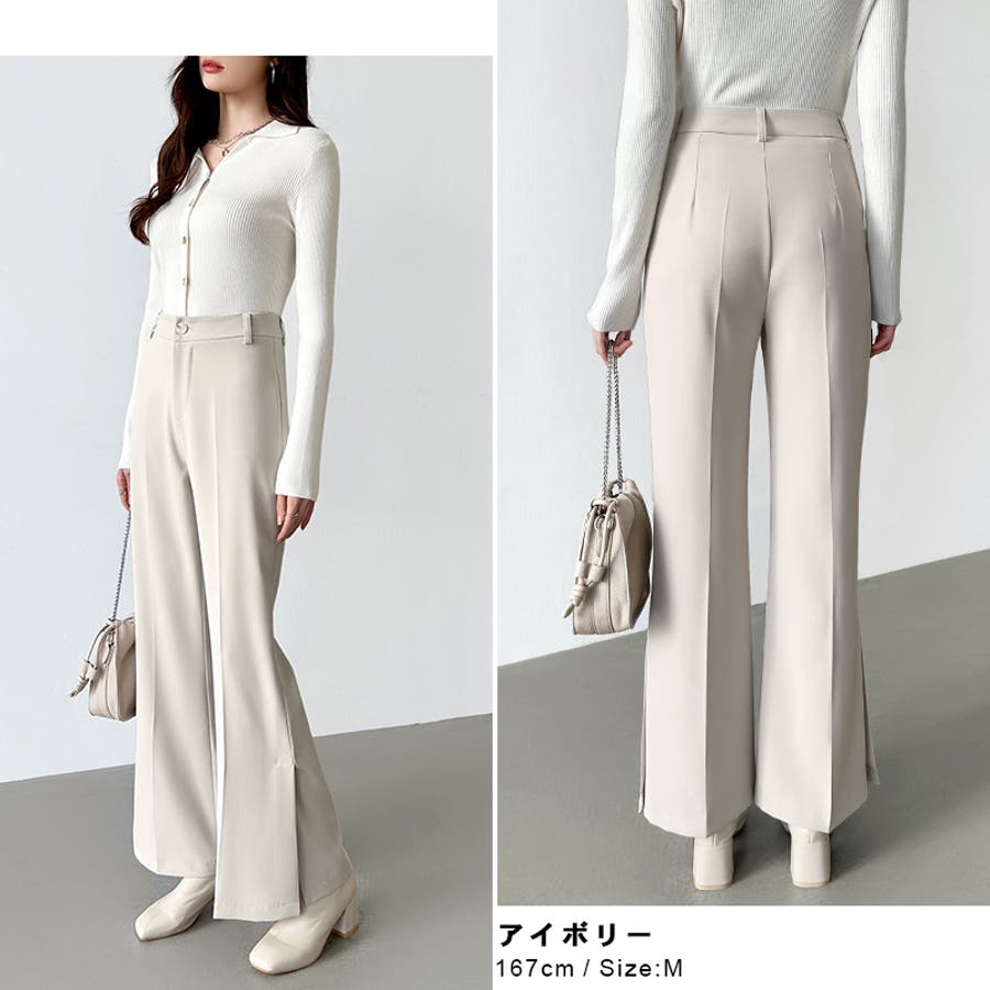 サイドスリットフレアパンツ。