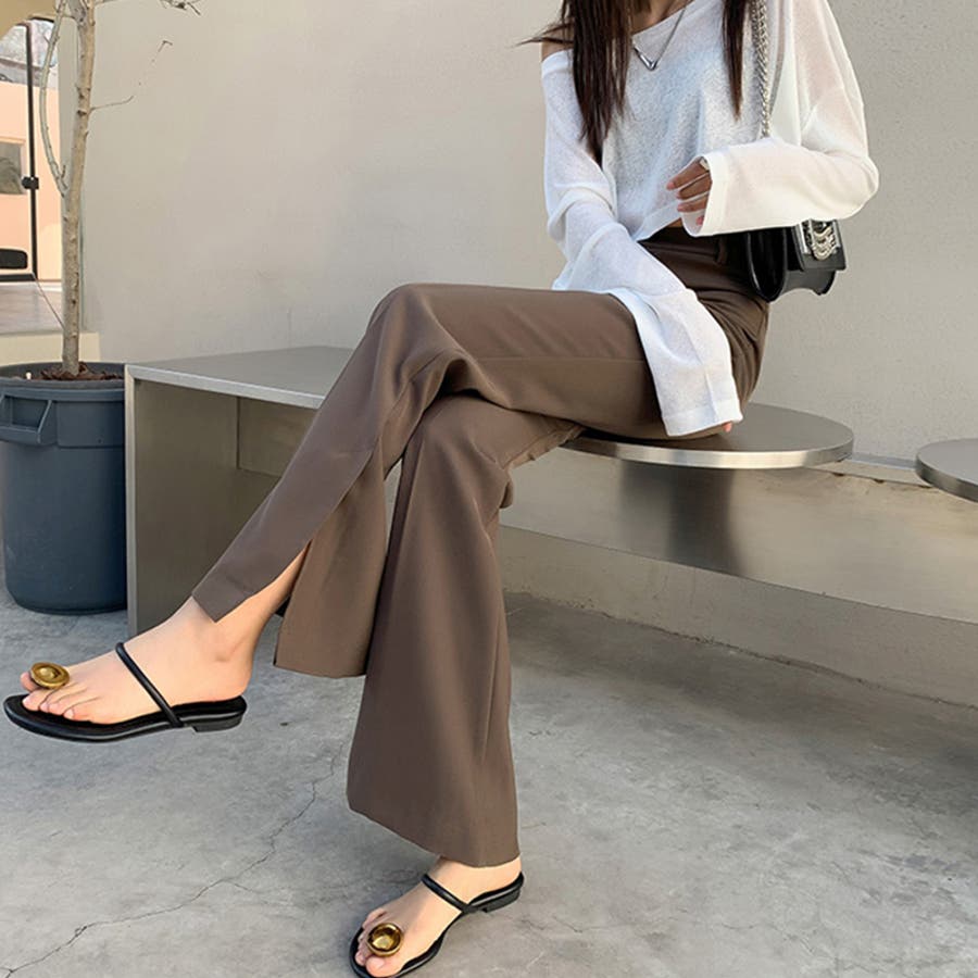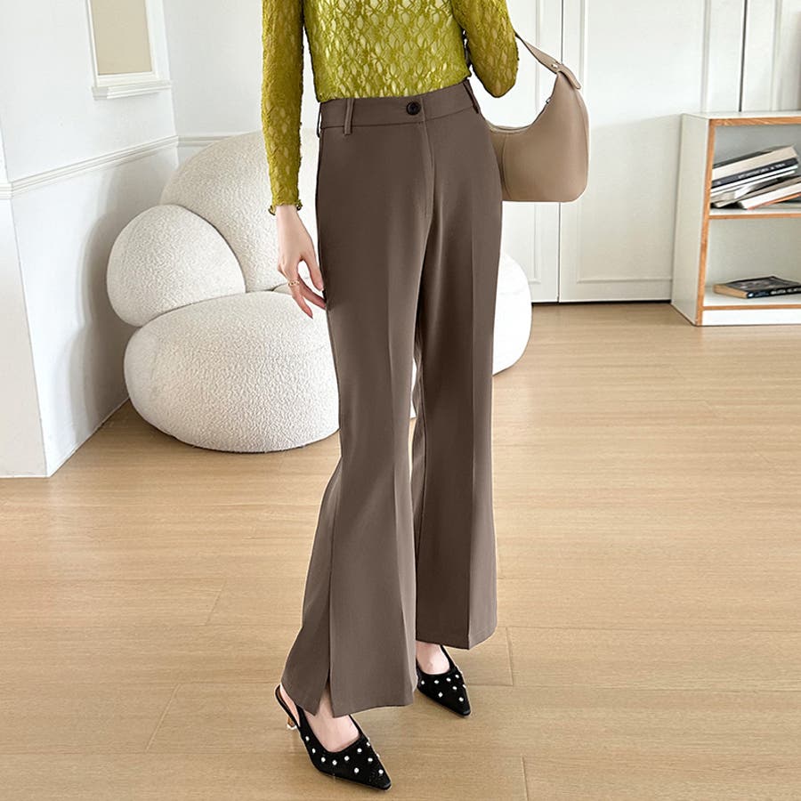 フレアパンツ サイドスリット レディース ブーツカット ブーツカットパンツ スリット スリット入り サイドスリットパンツ スリットパンツ スラックス スラックスパンツ ベルボトム ハイウエスト ハイウエストパンツ ボトムス ボトム セミフレア 着回し 美脚 脚長 細見え ロング ロング丈 裾 長ズボン ズボン 落ち感 ボタン ポリエステル 柔らかい やわらかい やわらか オフィス オフィスカジュアル オフィスカジュアル春夏 ol 仕事 上品 カジュアル きれいめ きれい め 綺麗 キレイめ 大人 オトナ かわいい 可愛い 大人可愛い 大人女子 オトナ女子 かっこいい おしゃれ オシャレ 母 ママ ママコーデ おすすめ トレンド ランキング 注目 人気 流行 プチプラ 高見え トレンド ヒット 商品 おすすめ 服 ファッション コーデ sサイズ mサイズ lサイズ xlサイズ s m l xl サイズ ブラウン 茶色 ブラック 黒 黒パンツ 新作 ss 春夏 春 夏 秋 春服 夏服 秋服 韓国 韓国ファッション 10代 20代 30代 40代 50代 cocomomo ココモモ ダークグレー グレー 灰色 アイボリー