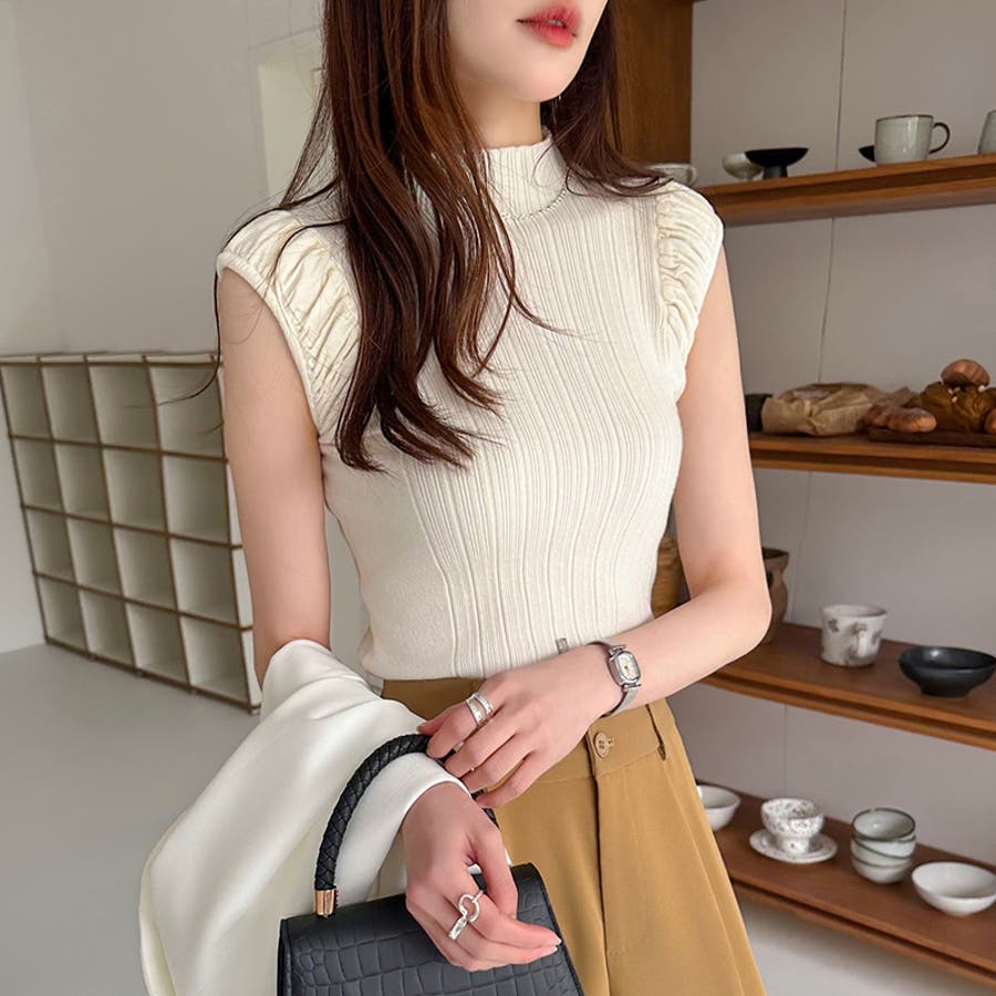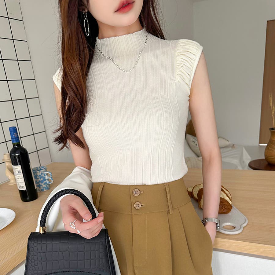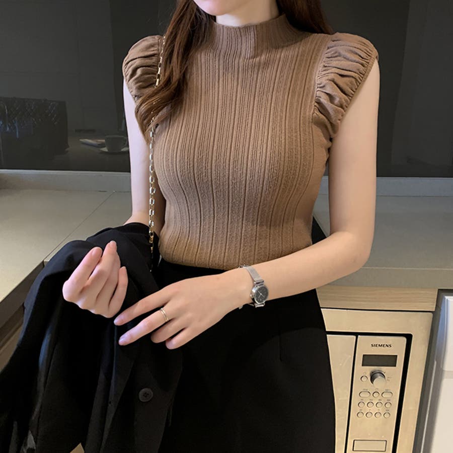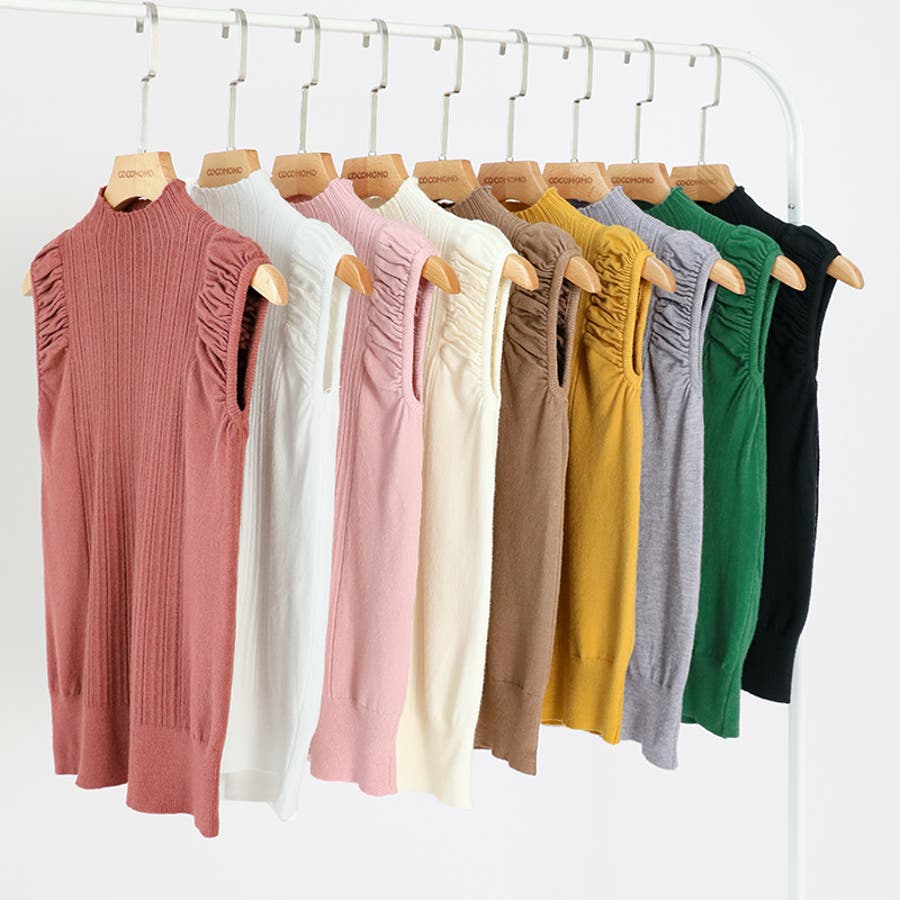 ハイネック パフショルダー レディース サマーニット ノースリーブ ニット トップス タンクトップ パフスリーブ フレンチスリーブ ギャザー モックネック プチハイネック ハイネックニット サマーにっと リブ 生地 リブニット インナー 無地 スタンド ネック 袖 なし スリーブ 肩出し 肩 肩だし 丈 服 着回し 細見え さらさら サマー 生地 夏トップス ニット生地 ストレッチ 伸縮性 フィット タイト ニットセーター ニットソー ニットトップス ニットレディース アクリル やわらか やわらかい 柔らかい ソフトな肌触り チクチクしない 毛玉になりにくい 涼しい 重ね着 レイヤード tops プルオーバー スリム フリーサイズ フォーマル セレモニー オケージョン シンプル オフィス オフィスカジュアル オフィスカジュアル春夏 カジュアル セクシー エレガント ナチュラル 上品 きれいめ キレイめ きれい め 綺麗 大人 かわいい 可愛い 大人可愛い おしゃれ オシャレ プチプラ 高見え 女性 ママ 母 ママコーデ 通勤 通学 ol 仕事 プチプラ 高見え トレンド ヒット 商品 おすすめ 服 ファッション コーデ ランキング 人気 ホワイト アイボリー グレー 灰色 グリーン 緑 モカ ブラック 黒 ホワイト 白 ピンク イエロー 黄色 ブラウン 茶色 カラー 春物 夏物 春コーデ 夏コーデ 新作 春夏新作 春夏 春服 夏服 春 夏 韓国 韓国ファッション 10代 20代 30代 40代 50代 10 20 30 40 50 代 cocomomo ココモモ