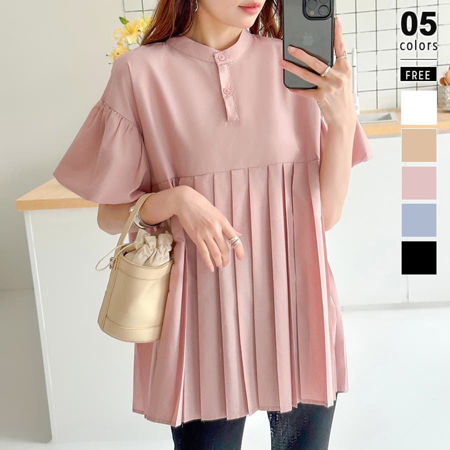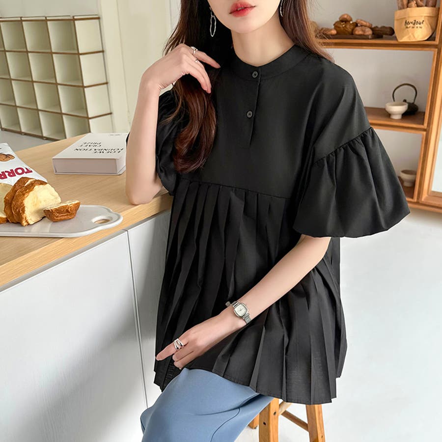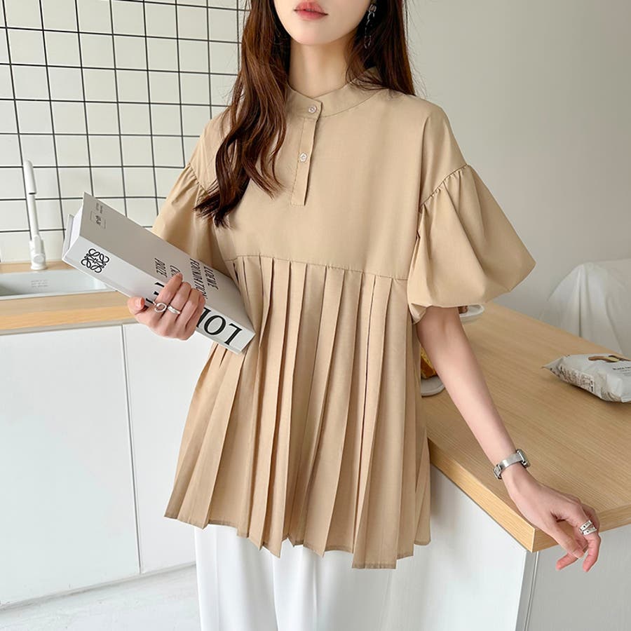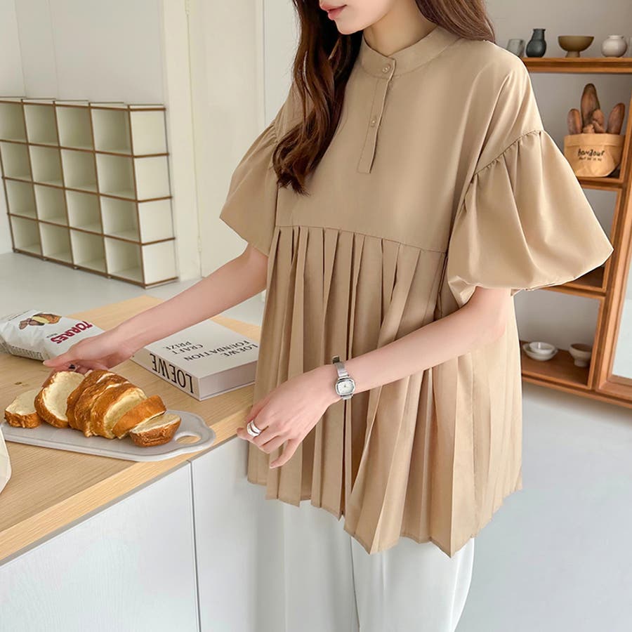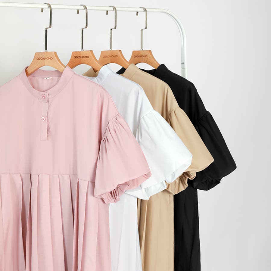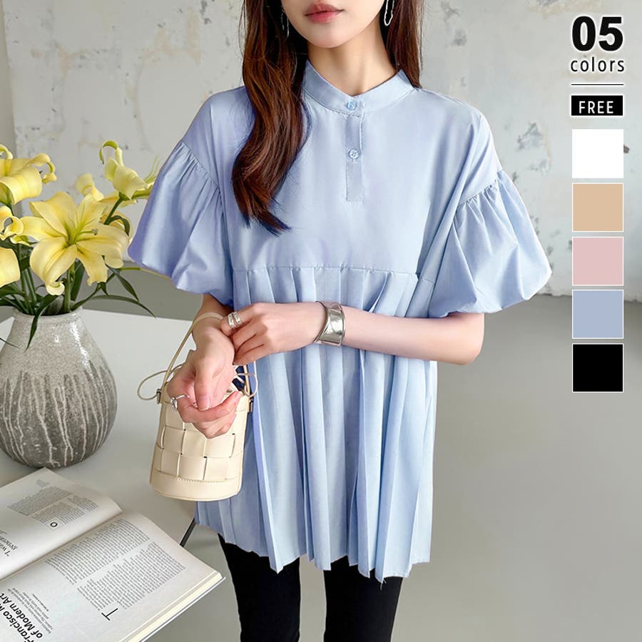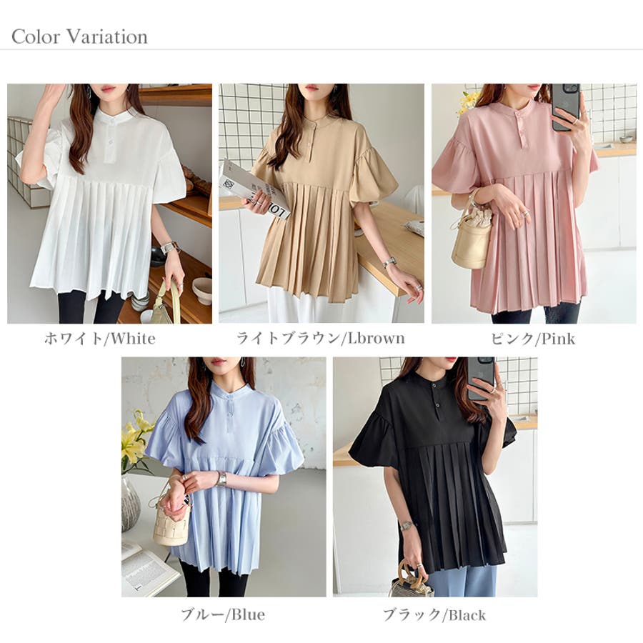 ブラウス チュニック パフスリーブ トップス レディース 半袖 チュニックブラウス 袖 ボリューム袖 ボリュームスリーブ ボリュームスリーブブラウス バルーンスリーブ バルーン袖 ランタンスリーブ aライン 袖口ゴム 袖口 ゴム ぽわん ぽわん袖 ポワン 袖 ポワン袖 ぽわんそで 袖コンシャス パフスリーブブラウス プリーツブラウス レディース春 春ブラウス 袖あり シャツ プリーツ バンドカラー スタンドカラー ゆったり 体型カバー 二の腕カバー 二の腕 カバー 隠し お腹カバー aライン 切り替え プリーツ切り替え 切り替えブラウス ハイウエスト 細見え 着回し ふんわり さらさら 涼しい フォーマル レディースブラウス 着痩せ 着やせ 立ち襟 半袖チュニック 半袖ブラウス 半袖シャツ シャツ シャツブラウス 着丈長め 襟なし コットン 綿 ポリエステル シンプル 無地 tops 通勤 通学 ol 仕事 お出かけ おでかけ 旅行 オフィス オフィスカジュアル オフィスカジュアル春夏 カジュアル フェミニン 華やか 上品 大人 かわいい 可愛い 大人かわいい 大人可愛い きれい め きれいめ キレイめ おしゃれ オシャレ ママ ママコーデ 母 女性 マタニティー プチプラ 高見え トレンド ヒット 商品 おすすめ 服 ファッション コーデ フリーサイズ ブラック 黒 ホワイト 白 ライトブラウン ブラウン 茶色 ピンク 桃色 新作 春夏 春 夏 春服 夏服 春物 夏物 韓国 韓国ファッション 10代 20代 30代 40代 50代 cocomomo ココモモ