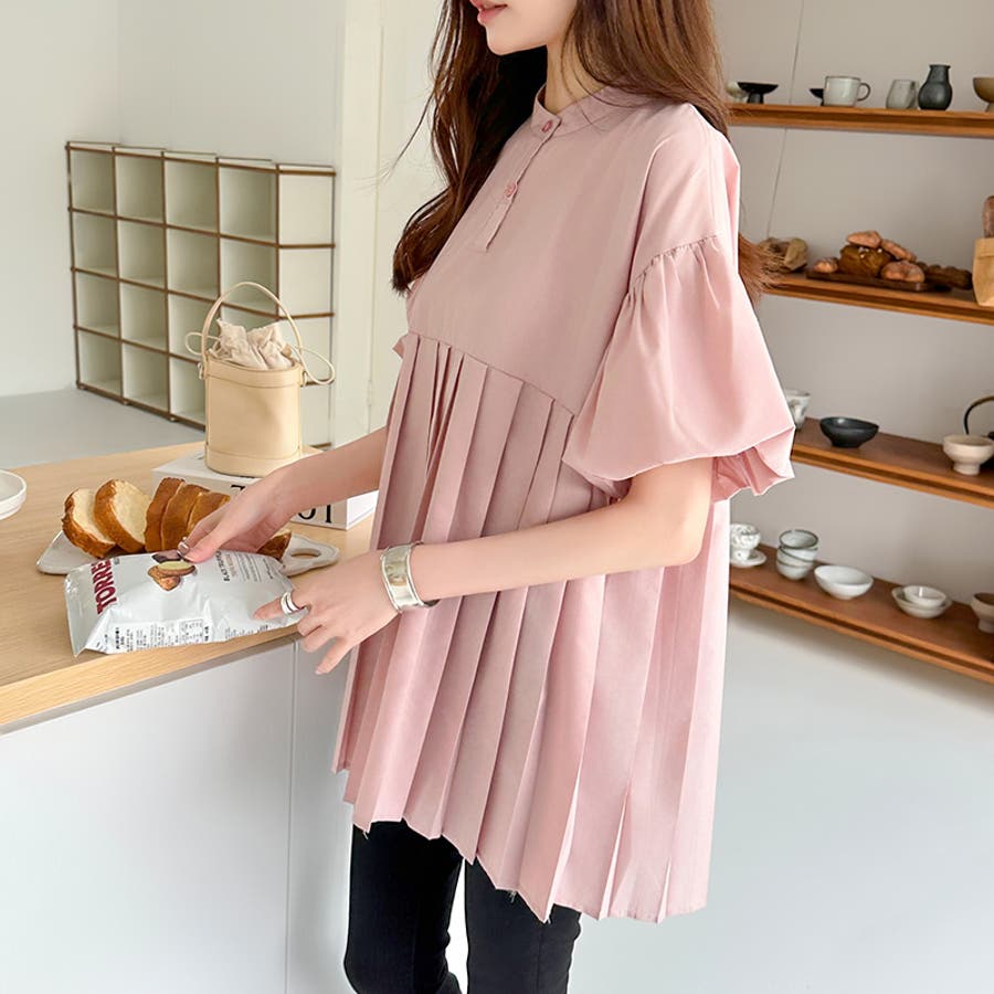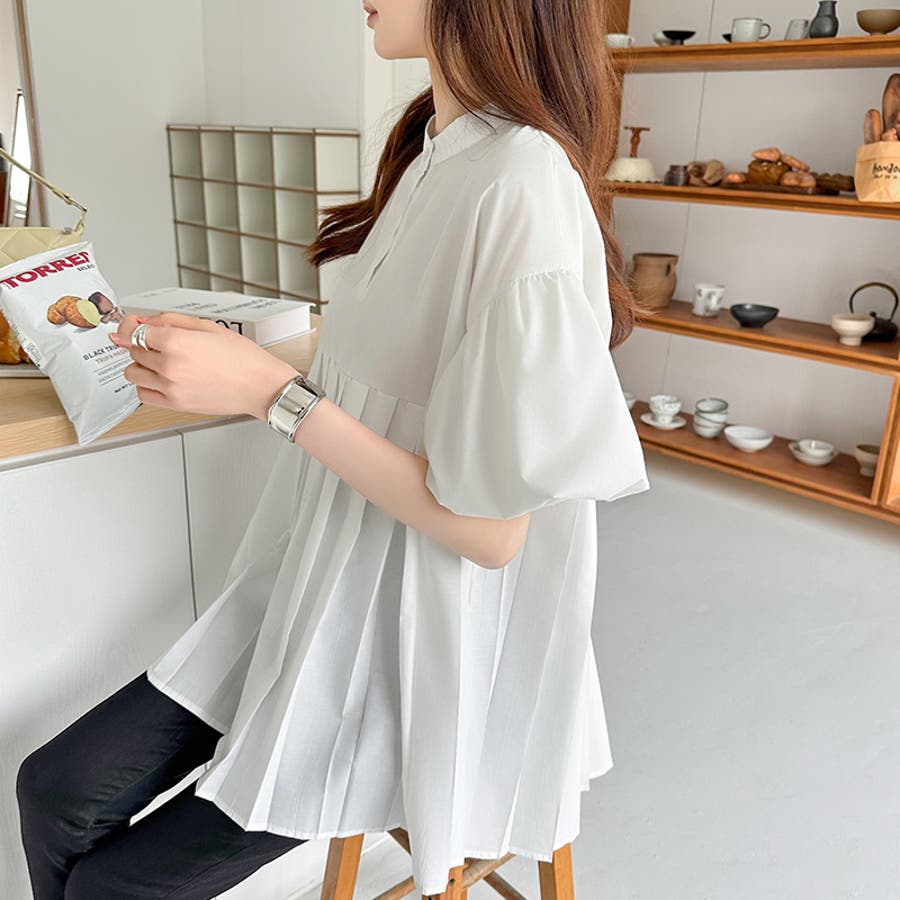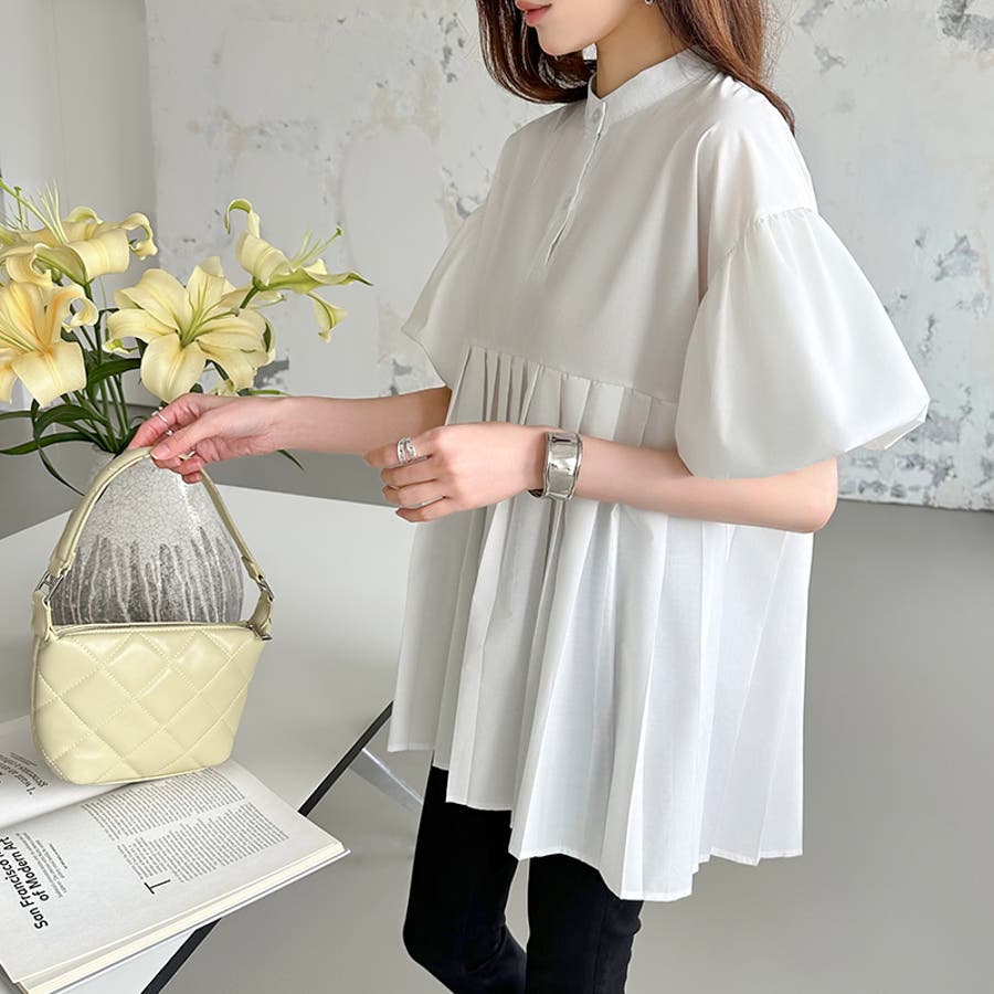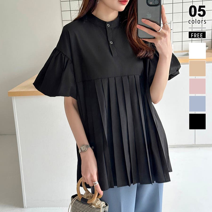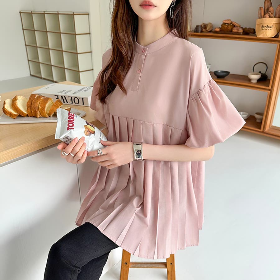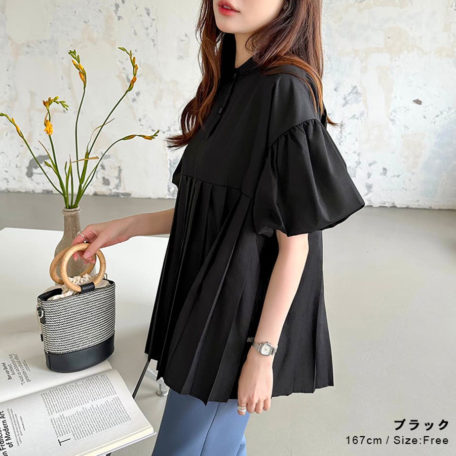 ブラウス チュニック パフスリーブ トップス レディース 半袖 チュニックブラウス 袖 ボリューム袖 ボリュームスリーブ ボリュームスリーブブラウス バルーンスリーブ バルーン袖 ランタンスリーブ aライン 袖口ゴム 袖口 ゴム ぽわん ぽわん袖 ポワン 袖 ポワン袖 ぽわんそで 袖コンシャス パフスリーブブラウス プリーツブラウス レディース春 春ブラウス 袖あり シャツ プリーツ バンドカラー スタンドカラー ゆったり 体型カバー 二の腕カバー 二の腕 カバー 隠し お腹カバー aライン 切り替え プリーツ切り替え 切り替えブラウス ハイウエスト 細見え 着回し ふんわり さらさら 涼しい フォーマル レディースブラウス 着痩せ 着やせ 立ち襟 半袖チュニック 半袖ブラウス 半袖シャツ シャツ シャツブラウス 着丈長め 襟なし コットン 綿 ポリエステル シンプル 無地 tops 通勤 通学 ol 仕事 お出かけ おでかけ 旅行 オフィス オフィスカジュアル オフィスカジュアル春夏 カジュアル フェミニン 華やか 上品 大人 かわいい 可愛い 大人かわいい 大人可愛い きれい め きれいめ キレイめ おしゃれ オシャレ ママ ママコーデ 母 女性 マタニティー プチプラ 高見え トレンド ヒット 商品 おすすめ 服 ファッション コーデ フリーサイズ ブラック 黒 ホワイト 白 ライトブラウン ブラウン 茶色 ピンク 桃色 新作 春夏 春 夏 春服 夏服 春物 夏物 韓国 韓国ファッション 10代 20代 30代 40代 50代 cocomomo ココモモ