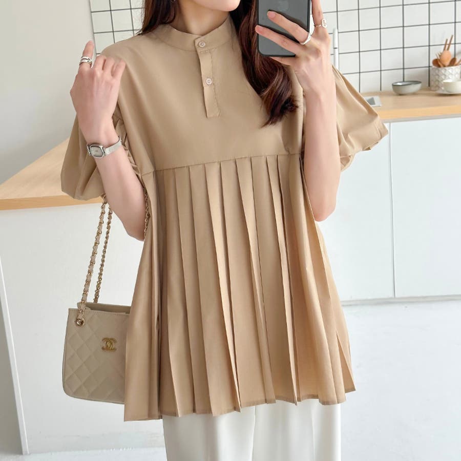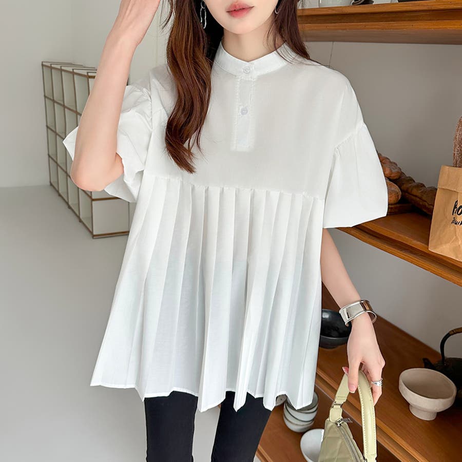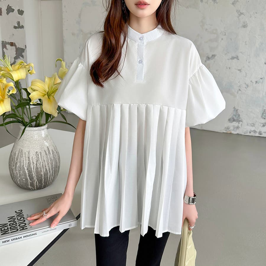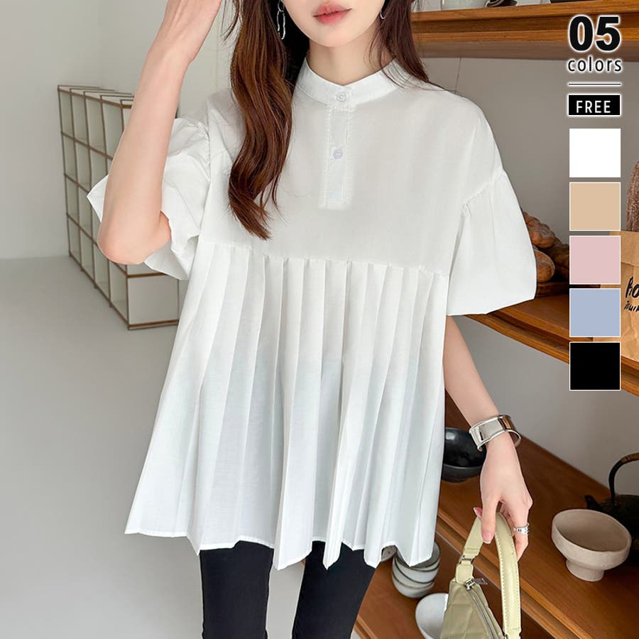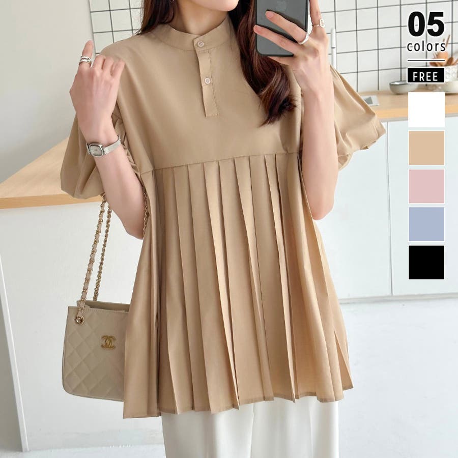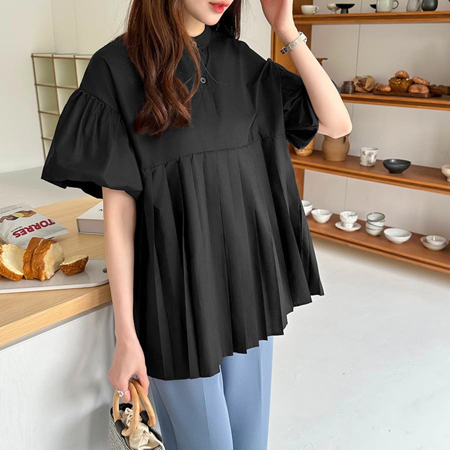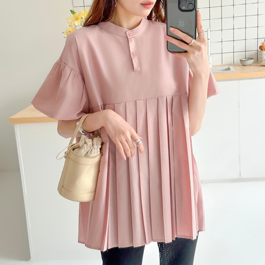 ブラウス チュニック パフスリーブ トップス レディース 半袖 チュニックブラウス 袖 ボリューム袖 ボリュームスリーブ ボリュームスリーブブラウス バルーンスリーブ バルーン袖 ランタンスリーブ aライン 袖口ゴム 袖口 ゴム ぽわん ぽわん袖 ポワン 袖 ポワン袖 ぽわんそで 袖コンシャス パフスリーブブラウス プリーツブラウス レディース春 春ブラウス 袖あり シャツ プリーツ バンドカラー スタンドカラー ゆったり 体型カバー 二の腕カバー 二の腕 カバー 隠し お腹カバー aライン 切り替え プリーツ切り替え 切り替えブラウス ハイウエスト 細見え 着回し ふんわり さらさら 涼しい フォーマル レディースブラウス 着痩せ 着やせ 立ち襟 半袖チュニック 半袖ブラウス 半袖シャツ シャツ シャツブラウス 着丈長め 襟なし コットン 綿 ポリエステル シンプル 無地 tops 通勤 通学 ol 仕事 お出かけ おでかけ 旅行 オフィス オフィスカジュアル オフィスカジュアル春夏 カジュアル フェミニン 華やか 上品 大人 かわいい 可愛い 大人かわいい 大人可愛い きれい め きれいめ キレイめ おしゃれ オシャレ ママ ママコーデ 母 女性 マタニティー プチプラ 高見え トレンド ヒット 商品 おすすめ 服 ファッション コーデ フリーサイズ ブラック 黒 ホワイト 白 ライトブラウン ブラウン 茶色 ピンク 桃色 新作 春夏 春 夏 春服 夏服 春物 夏物 韓国 韓国ファッション 10代 20代 30代 40代 50代 cocomomo ココモモ
