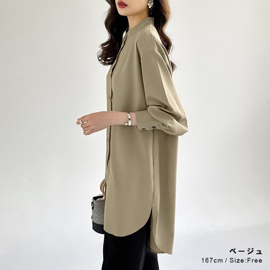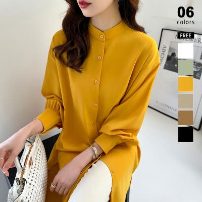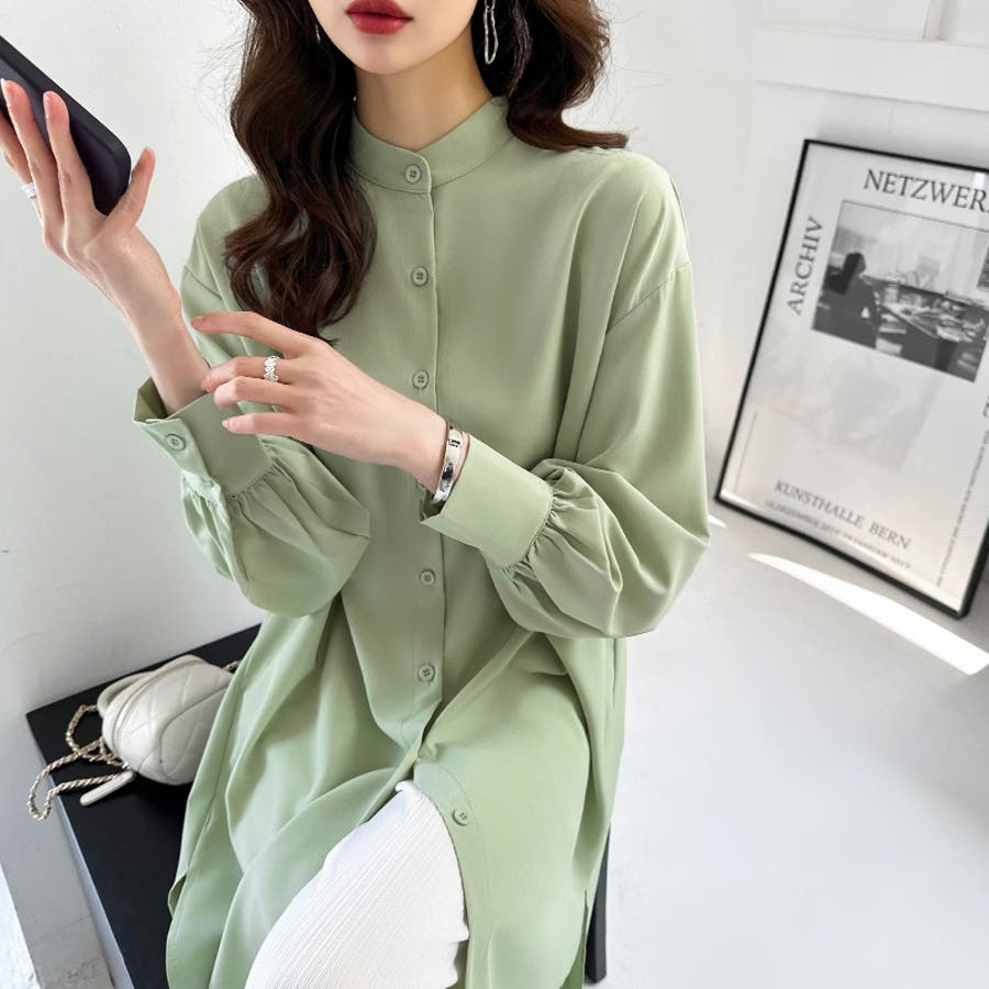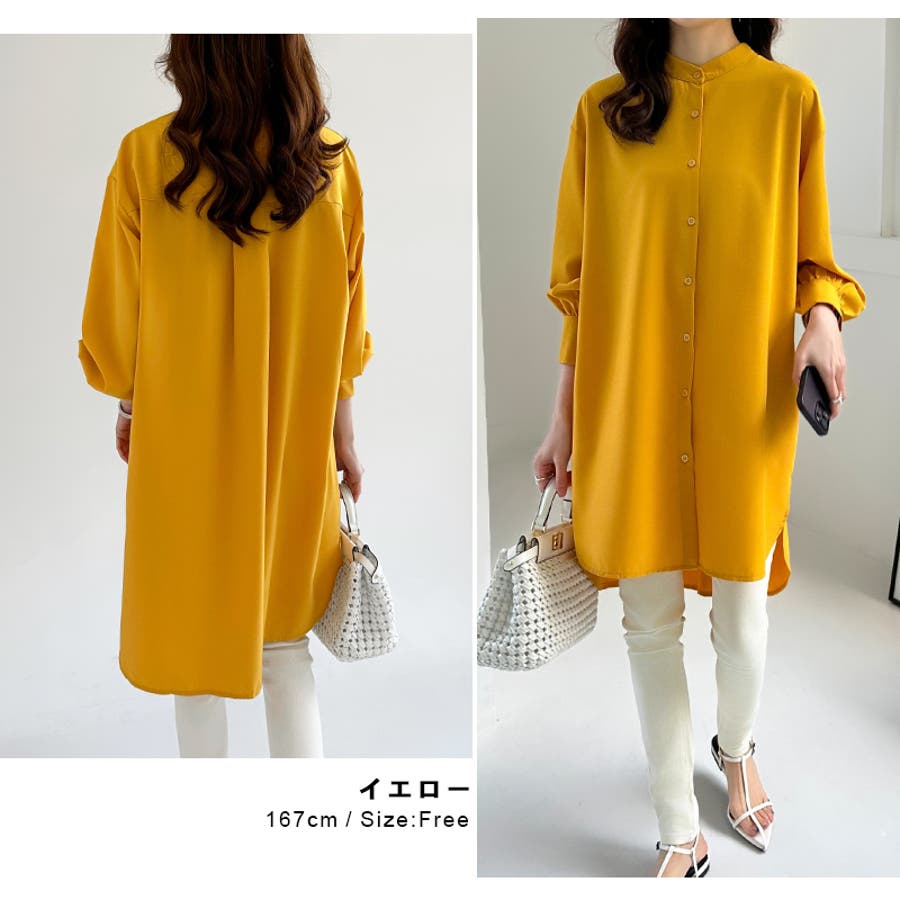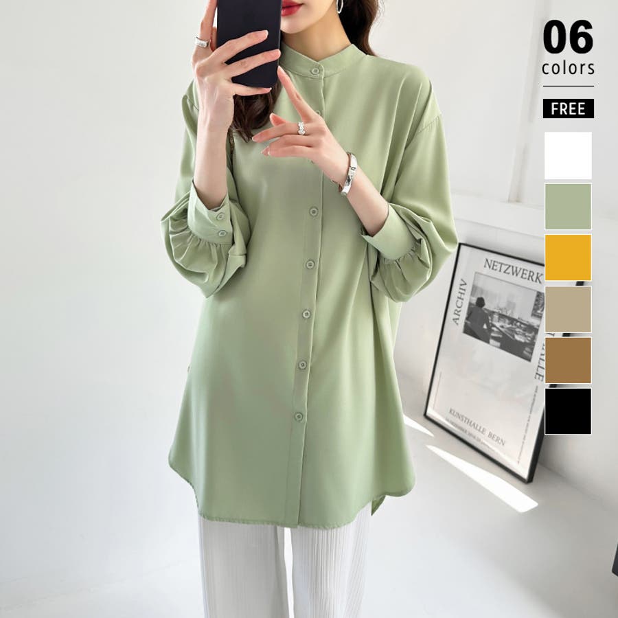 シャツチュニック ロングシャツ バンドカラー シャツ レディース トップス ブラウス バンドカラーシャツ バンドカラーロングブラウス シャツブラウス シャツワンピース シャツワンピ 七分袖 ゆったり 大きめ 体型カバー お尻カバー カバー 隠し シンプル 無地 ノーカラー ノーカラーシャツ ノーカラーブラウス ボリューム ボリューム袖 ボリュームスリーブ ぽわん ぽわん袖 ポワン 前開き 前あき ボタン ボタン付き スリット スリット入り ロング ロング丈 ラウンドヘム 後ろ長め 後ろ 長め 袖あり 袖 羽織り 羽織 羽織もの スタンドネック 立ち襟 着回し 着まわし 重ね着 さらさら 爽やか 通勤 通学 オフィス オフィスカジュアル レディース春 カジュアル 綺麗 きれいめ キレイめ きれい め 大人 オトナ かわいい 可愛い 大人可愛い オトナ女子 おしゃれ オシャレ 女性 母 母親 女 ママ ママコーデ プチプラ 高見え きちんと感 トレンド ヒット 商品 おすすめ 服 ファッション コーデ フリー サイズ フリーサイズ ホワイト 白 ベージュ ブラウン 茶色 イエロー 黄色 グリーン 緑 ブラック 黒 カラー 新作 ss aw 春夏 春秋 春 夏 秋 春服 夏服 秋服 韓国 韓国ファッション 10代 20代 30代 40代 50代 60代 cocomomo ココモモ