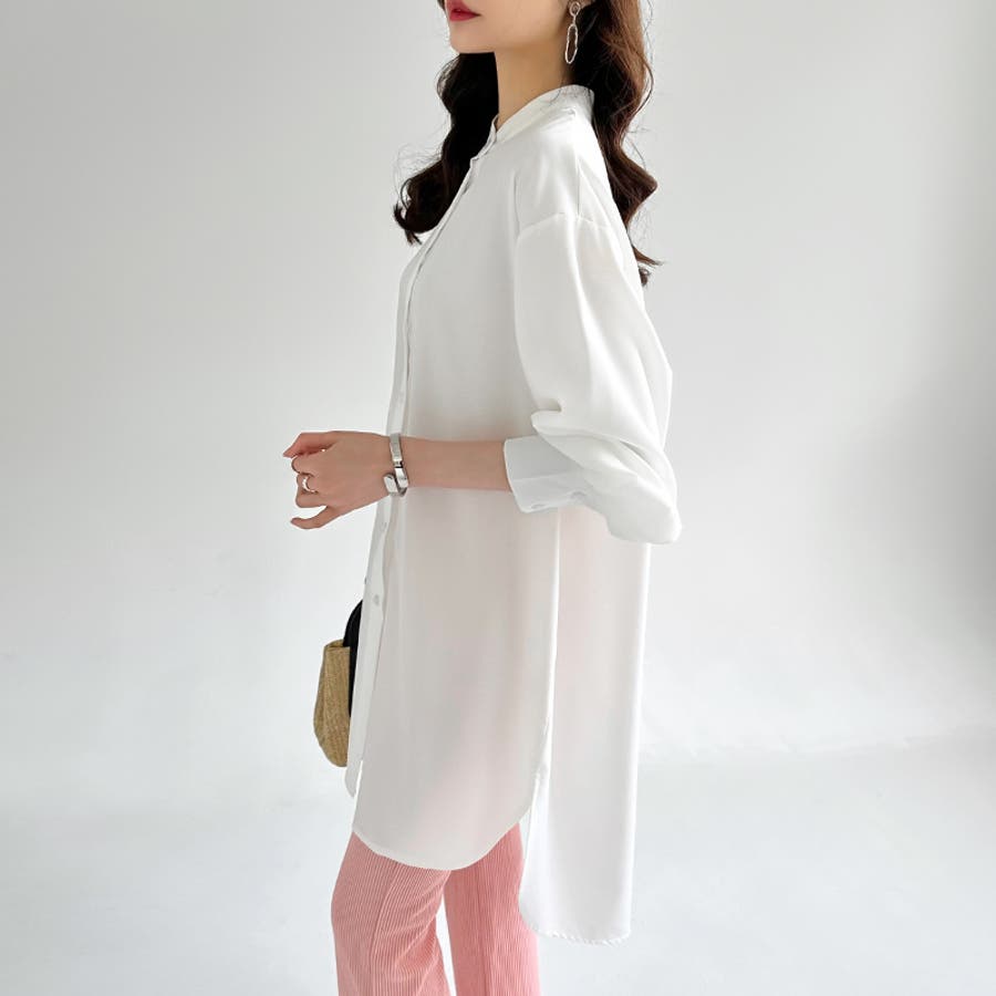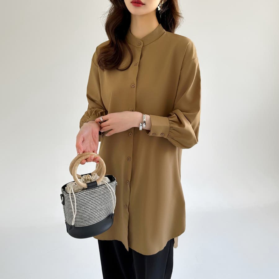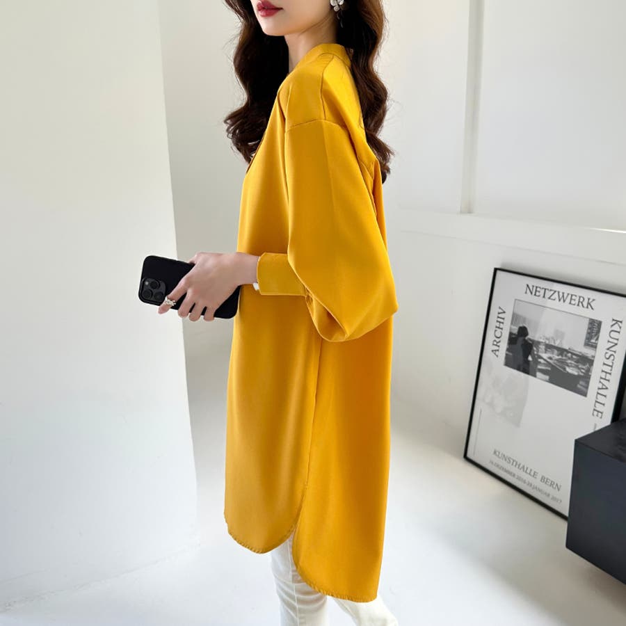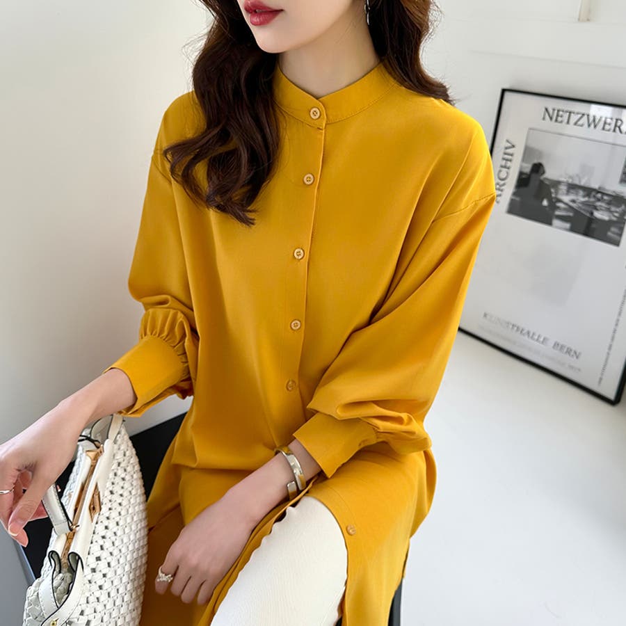 シャツチュニック ロングシャツ バンドカラー シャツ レディース トップス ブラウス バンドカラーシャツ バンドカラーロングブラウス シャツブラウス シャツワンピース シャツワンピ 七分袖 ゆったり 大きめ 体型カバー お尻カバー カバー 隠し シンプル 無地 ノーカラー ノーカラーシャツ ノーカラーブラウス ボリューム ボリューム袖 ボリュームスリーブ ぽわん ぽわん袖 ポワン 前開き 前あき ボタン ボタン付き スリット スリット入り ロング ロング丈 ラウンドヘム 後ろ長め 後ろ 長め 袖あり 袖 羽織り 羽織 羽織もの スタンドネック 立ち襟 着回し 着まわし 重ね着 さらさら 爽やか 通勤 通学 オフィス オフィスカジュアル レディース春 カジュアル 綺麗 きれいめ キレイめ きれい め 大人 オトナ かわいい 可愛い 大人可愛い オトナ女子 おしゃれ オシャレ 女性 母 母親 女 ママ ママコーデ プチプラ 高見え きちんと感 トレンド ヒット 商品 おすすめ 服 ファッション コーデ フリー サイズ フリーサイズ ホワイト 白 ベージュ ブラウン 茶色 イエロー 黄色 グリーン 緑 ブラック 黒 カラー 新作 ss aw 春夏 春秋 春 夏 秋 春服 夏服 秋服 韓国 韓国ファッション 10代 20代 30代 40代 50代 60代 cocomomo ココモモ