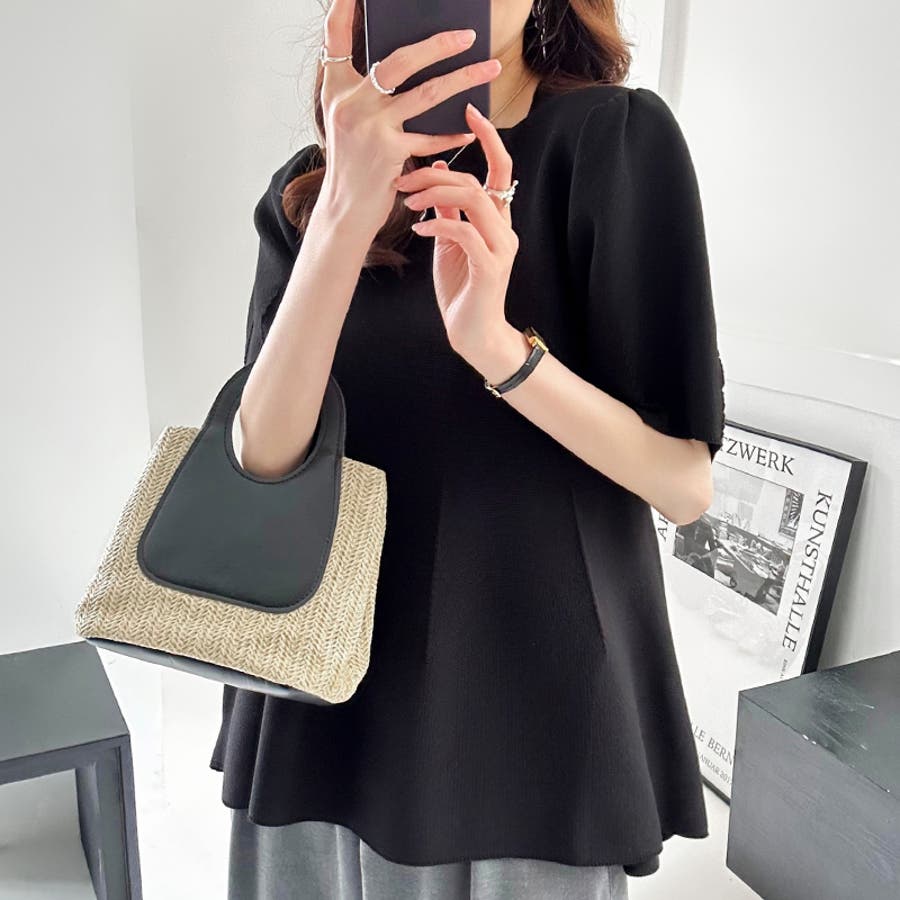 ペプラムトップス サマーニット オフィスカジュアル