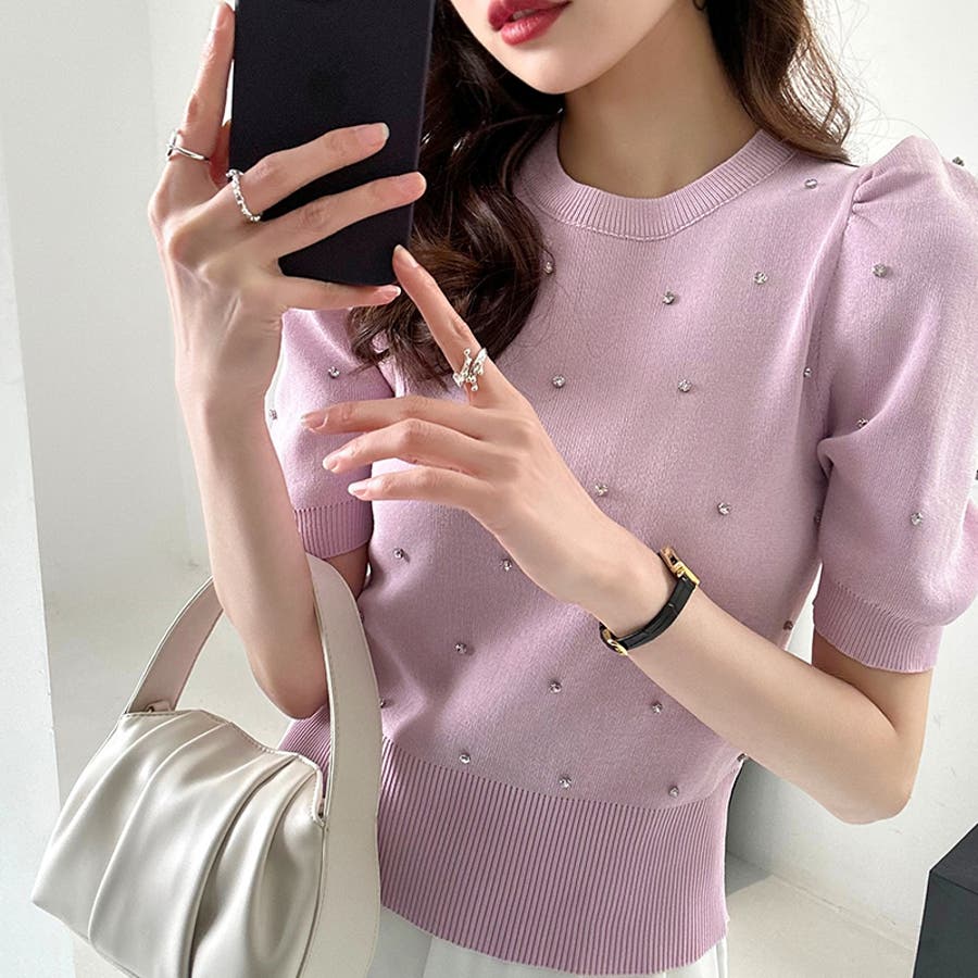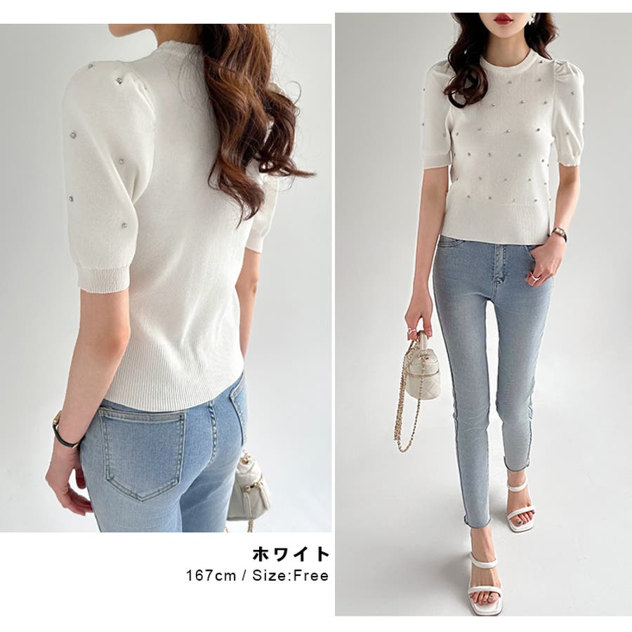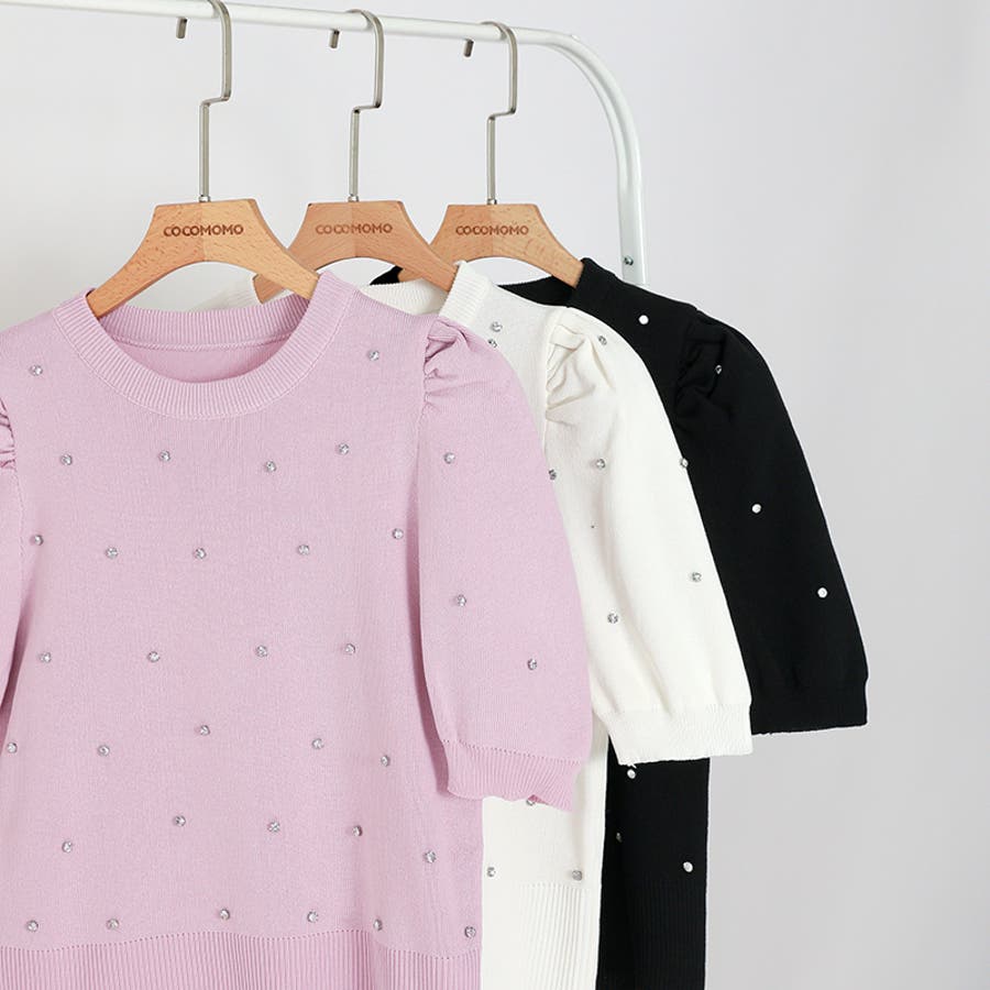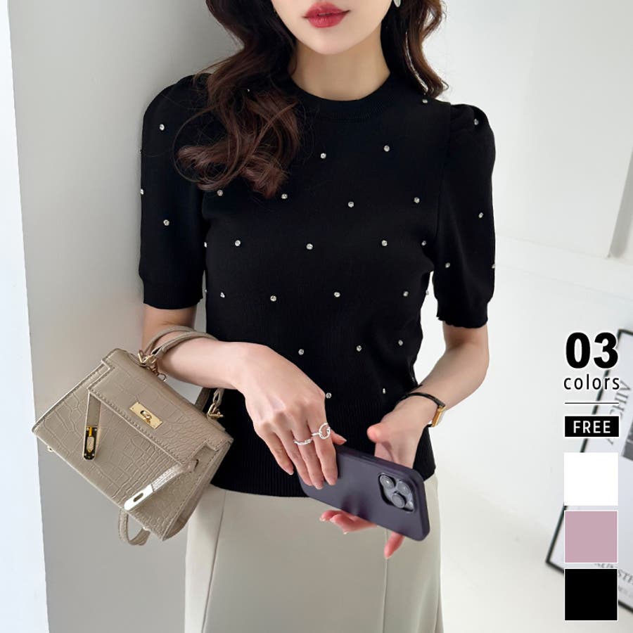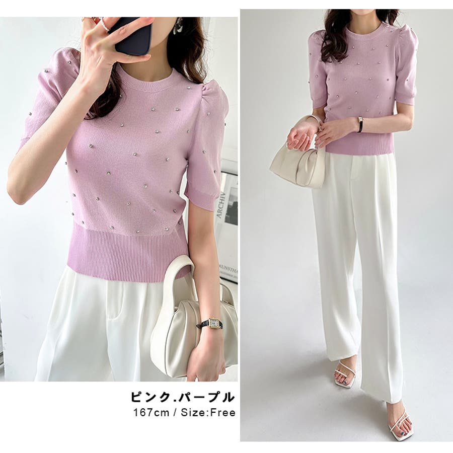サマーニット ビジュー パフスリーブ ニット トップス キラキラ ビジュー付き 五分袖 レディース サマーにっと 無地 細見え さらさら サマー 生地 夏トップス 半袖 ドット 水玉柄 きらきら ストーン ニット生地 ストレッチ 伸縮性 フィット ニットセーター ニットトップス ニットレディース セーター ぽわん ぽわん袖 ポワン パフショル パフショルダー アクリル やわらか やわらかい 柔らかい ソフトな肌触り チクチクしない 毛玉になりにくい 涼しい 薄手 重ね着 レイヤード 着回し tops プルオーバー オフィス オフィスカジュアル オフィスカジュアル春夏 カジュアル エレガント フェミニン ガーリー 華やか 上品 きれいめ キレイめ きれい め 綺麗 大人 かわいい 可愛い 大人可愛い 大人かわいい おしゃれ オシャレ プチプラ 高見え 女性 ママ 母 ママコーデ 通勤 通学 ol 仕事 プチプラ 高見え トレンド ヒット 商品 おすすめ 服 ファッション コーデ ランキング 人気 フリーサイズ ホワイト 白 パープル 紫 ブラック 黒 カラー 春物 夏物 春コーデ 夏コーデ 新作 春夏新作 春夏 春服 夏服 春 夏 韓国 韓国ファッション 10代 20代 30代 40代 50代 cocomomo ココモモ