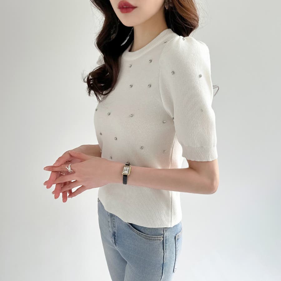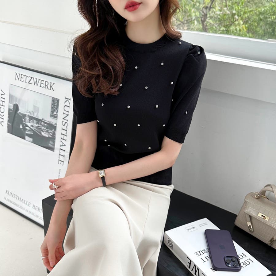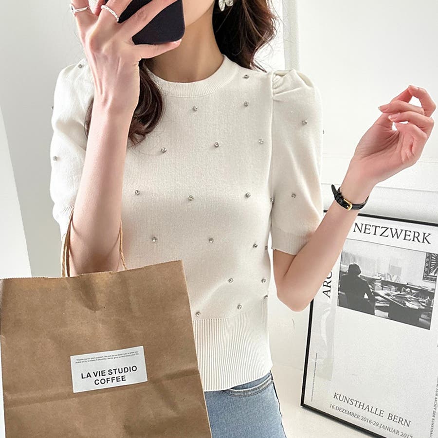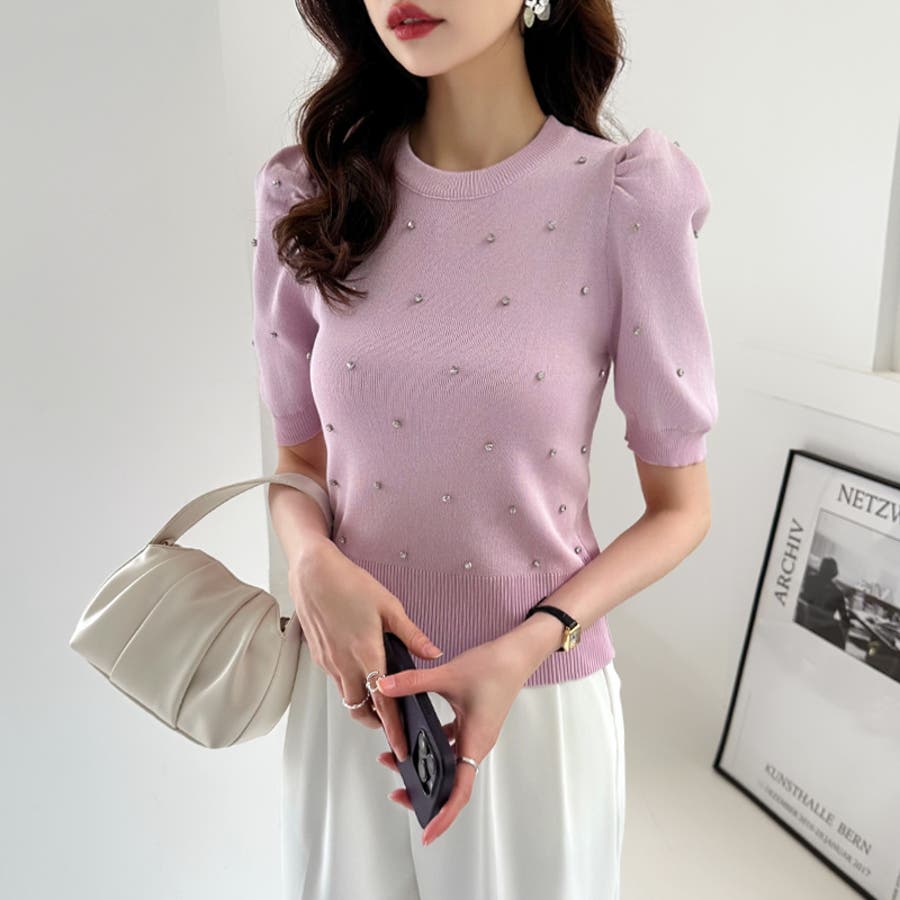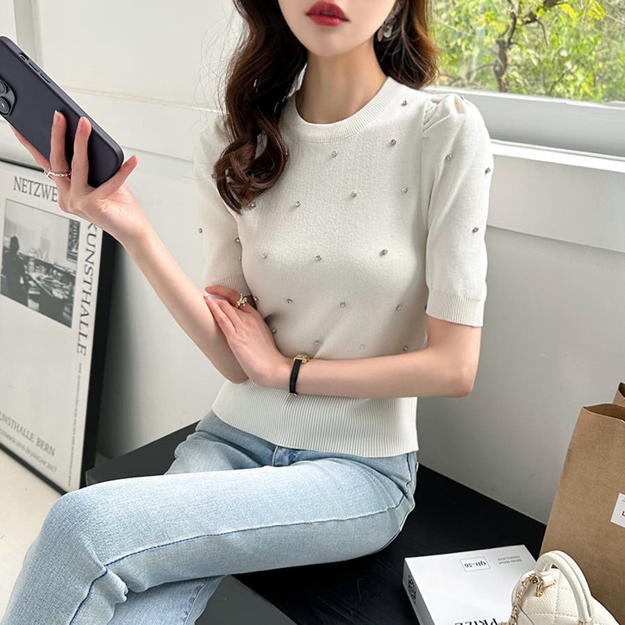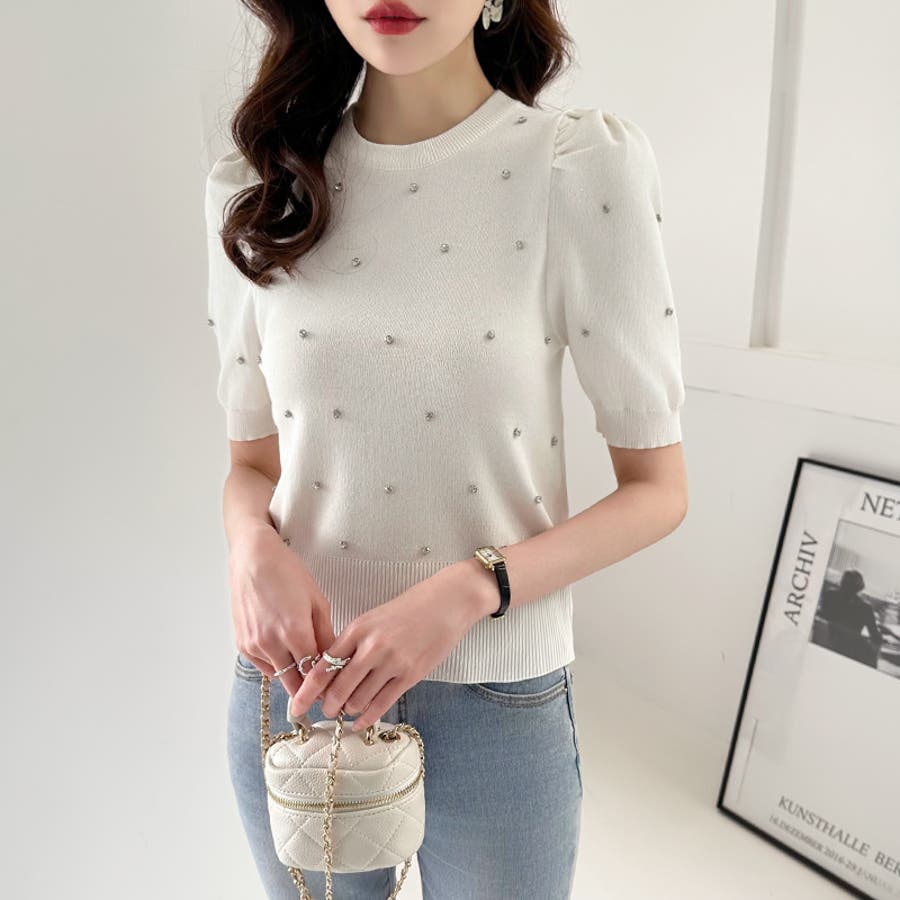 サマーニット ビジュー パフスリーブ ニット トップス キラキラ ビジュー付き 五分袖 レディース サマーにっと 無地 細見え さらさら サマー 生地 夏トップス 半袖 ドット 水玉柄 きらきら ストーン ニット生地 ストレッチ 伸縮性 フィット ニットセーター ニットトップス ニットレディース セーター ぽわん ぽわん袖 ポワン パフショル パフショルダー アクリル やわらか やわらかい 柔らかい ソフトな肌触り チクチクしない 毛玉になりにくい 涼しい 薄手 重ね着 レイヤード 着回し tops プルオーバー オフィス オフィスカジュアル オフィスカジュアル春夏 カジュアル エレガント フェミニン ガーリー 華やか 上品 きれいめ キレイめ きれい め 綺麗 大人 かわいい 可愛い 大人可愛い 大人かわいい おしゃれ オシャレ プチプラ 高見え 女性 ママ 母 ママコーデ 通勤 通学 ol 仕事 プチプラ 高見え トレンド ヒット 商品 おすすめ 服 ファッション コーデ ランキング 人気 フリーサイズ ホワイト 白 パープル 紫 ブラック 黒 カラー 春物 夏物 春コーデ 夏コーデ 新作 春夏新作 春夏 春服 夏服 春 夏 韓国 韓国ファッション 10代 20代 30代 40代 50代 cocomomo ココモモ