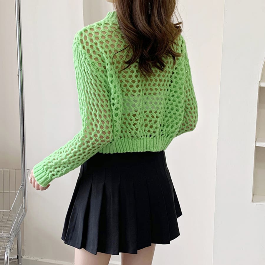 メッシュニット 透かし編みトップス ショート丈