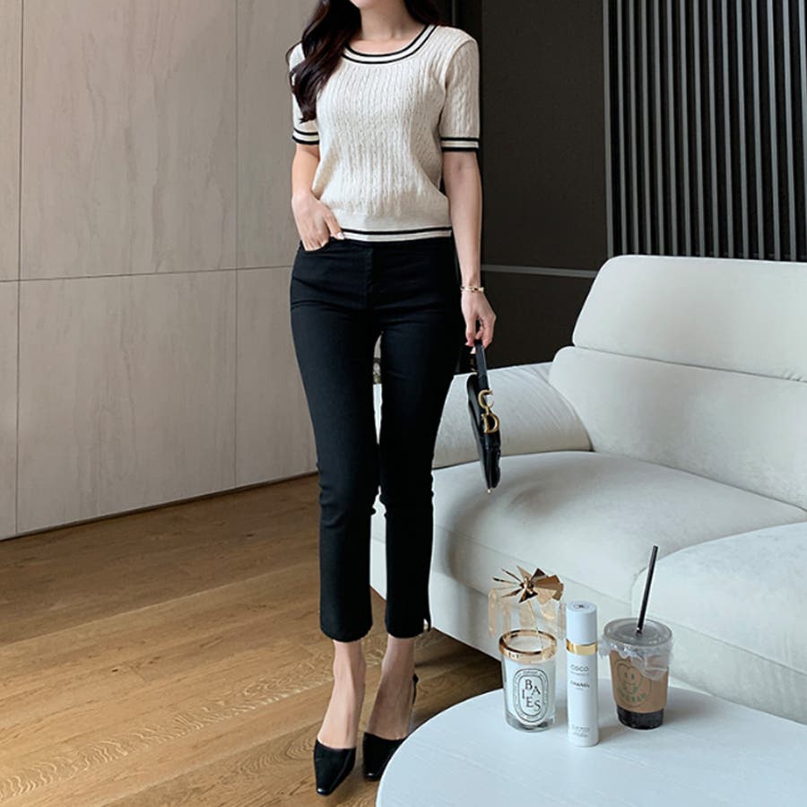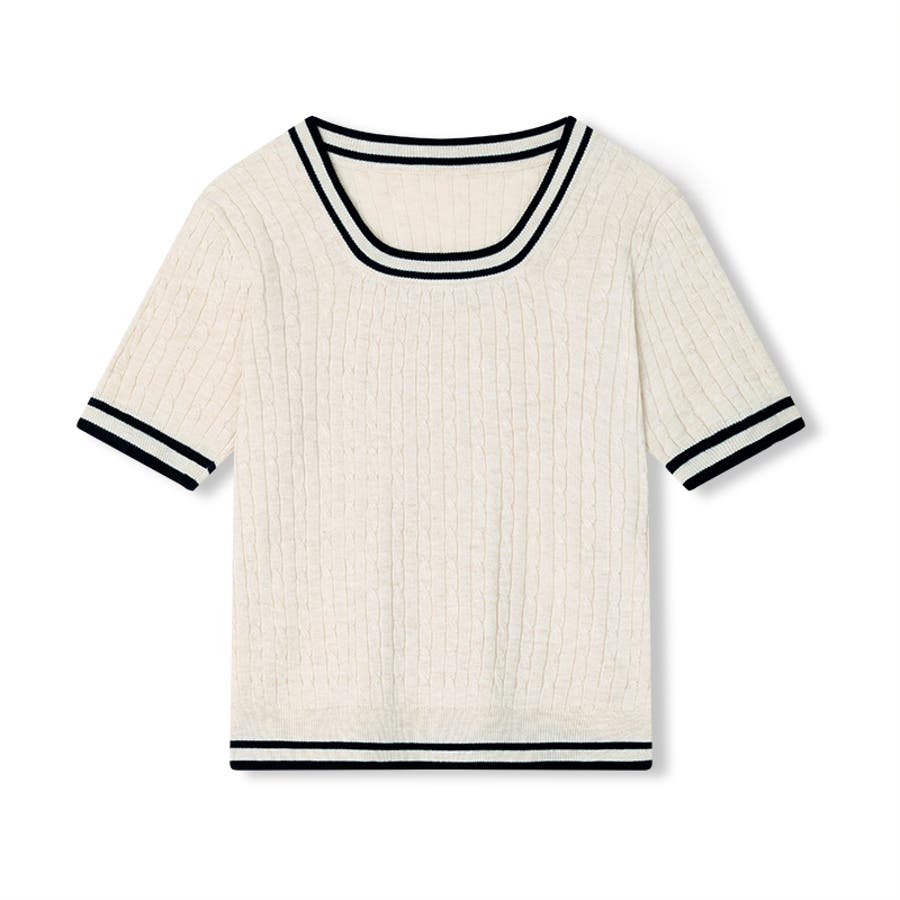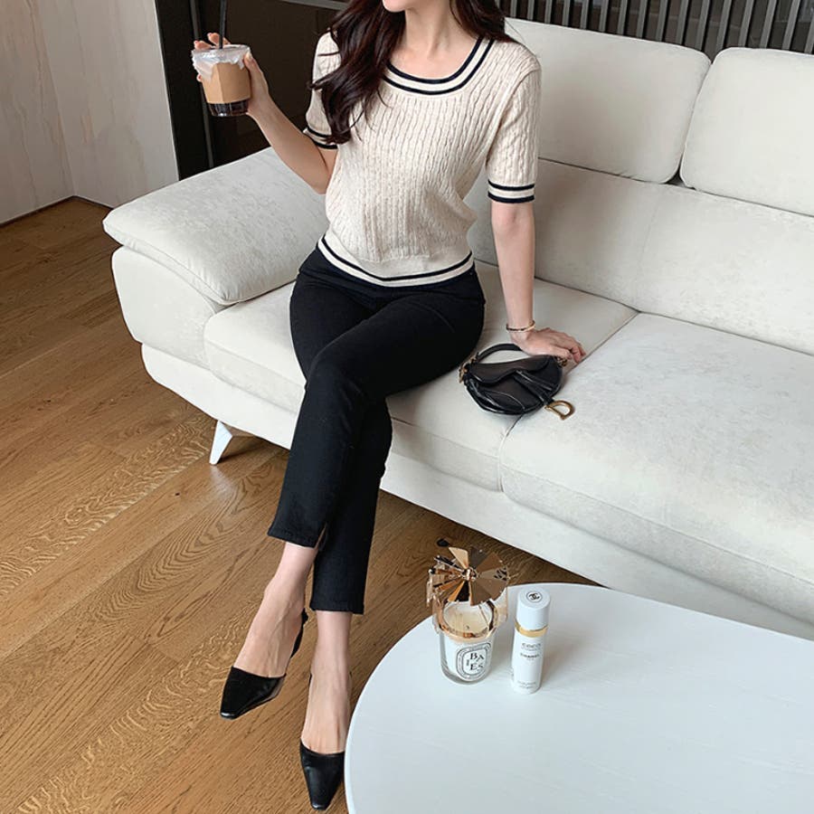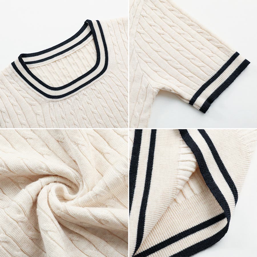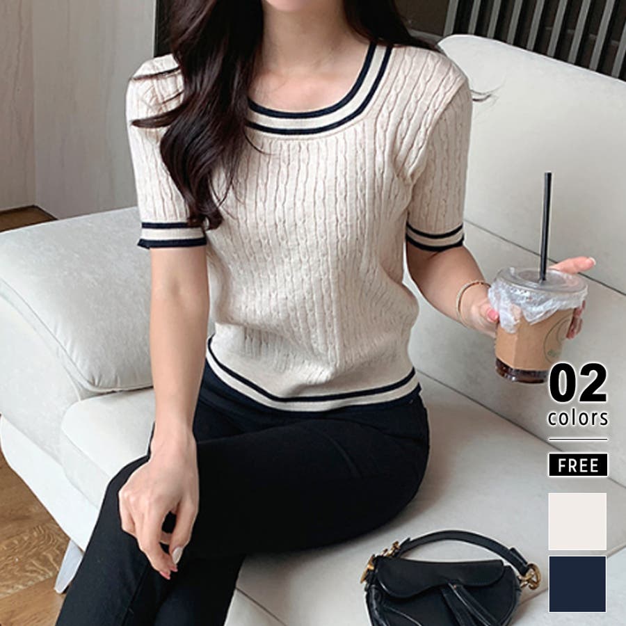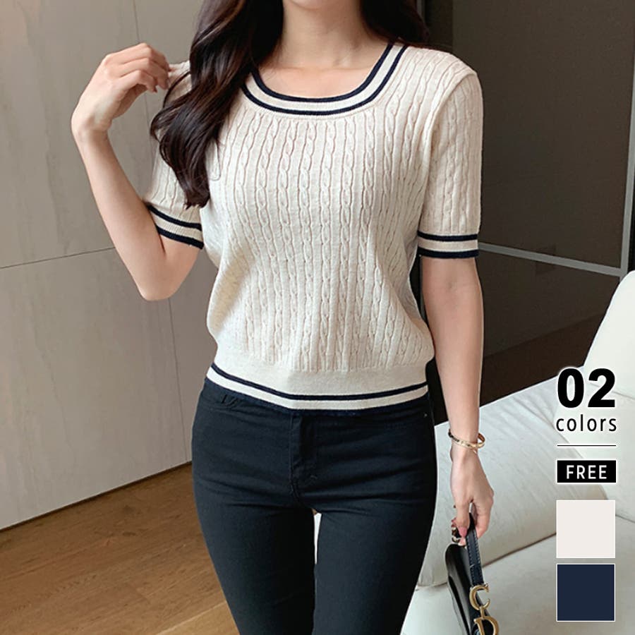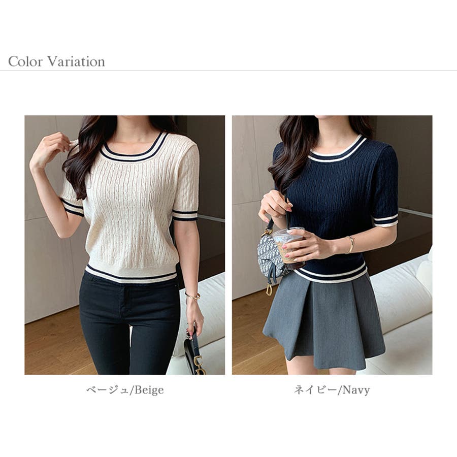 ニット ライン トップス サマーニット ケーブル編み レディース 五分袖 半袖 半袖ニット クロップド クロップド丈 ショート ショート丈 プルオーバー 配色 バイカラー 配色ライン ストライプ 二の腕 二の腕カバー サマーにっと 夏トップス ラウンドネック ニット生地 プレッピー チルデン チルデンニット トラッド スクール カレッジ ニットセーター ニットトップス ニットレディース セーター 伸縮性 ストレッチ アクリル やわらか やわらかい 柔らかい ソフトな肌触り チクチクしない 毛玉になりにくい 着回し tops カジュアル フェミニン ガーリー スポーティ スポーティー 大人 かわいい 可愛い 大人可愛い 大人かわいい おしゃれ オシャレ プチプラ 高見え 女性 ママ 母 ママコーデ トレンド ヒット 商品 おすすめ 服 ファッション コーデ ランキング 人気 フリーサイズ ベージュ ネイビー 紺 カラー 夏ニット 春物 夏物 新作 春夏 春服 夏服 春 夏 韓国 韓国ファッション 10代 20代 30代 40代 50代 cocomomo ココモモ