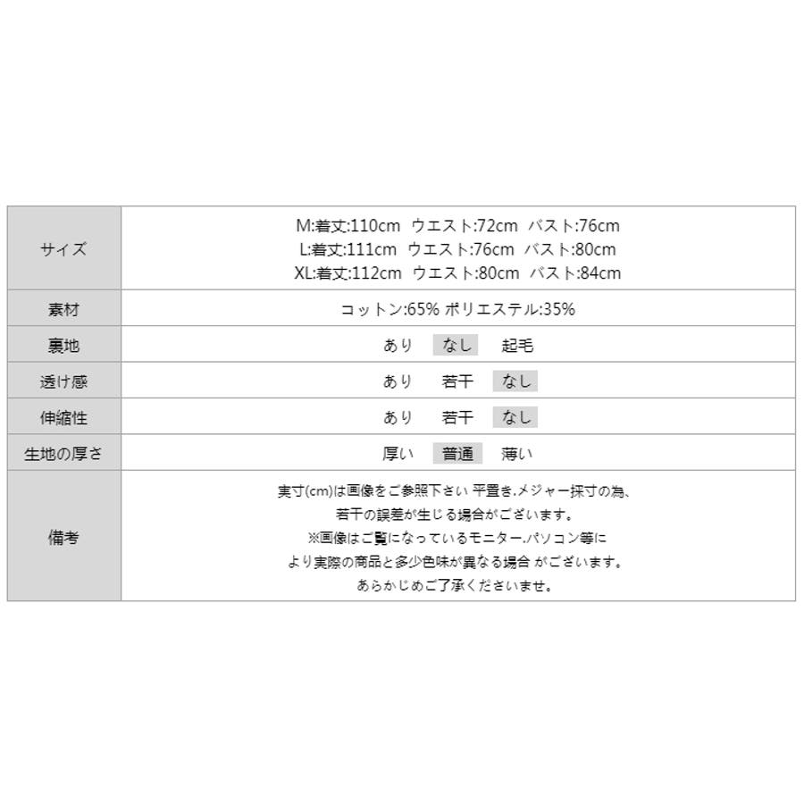 | サイズ | M: 着丈 110cm ウエスト 72cm バスト 76cm L: 着丈 111cm ウエスト 76cm バスト 80cm XL: 着丈 112cm ウエスト 80cm バスト 84cm |