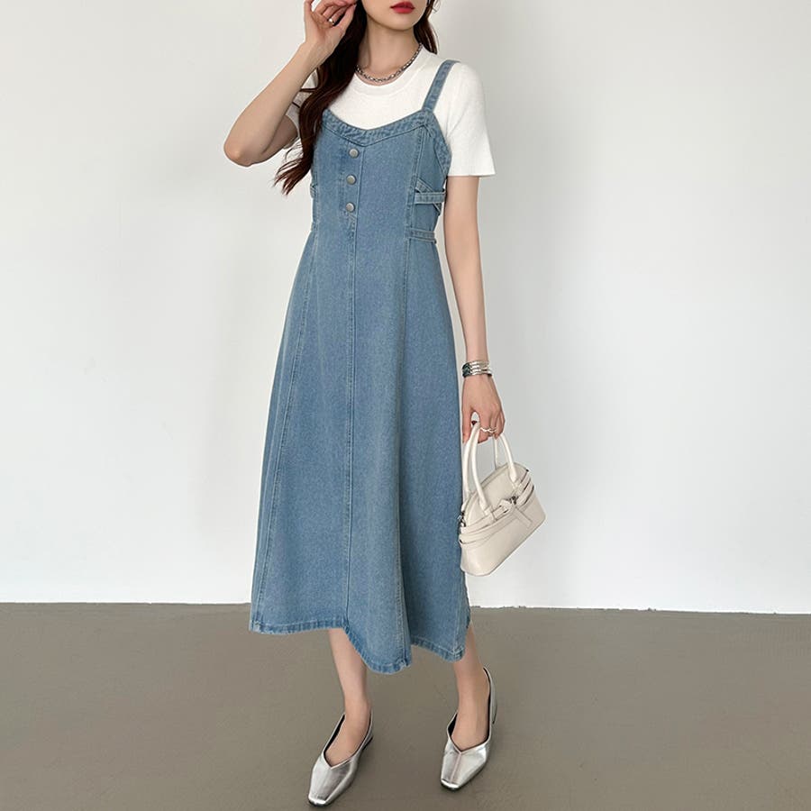 ワンピース ジャンパースカート デニム キャミワンピ ロングワンピース レディース デニムワンピース キャミワンピース キャミワンピースレディース ノースリーブ オールインワン ロング 丈 ミモレ ワンピ ウエストリボン リボン 紐 デニムワンピ デニムキャミ デニムキャミワンピース キャミソールワンピース ジャンスカ 体型カバー カバー 隠し サイドクロス 膝下 ひざ下 丈 袖なし 袖 フレア 金ボタン 重ね着 レイヤード aライン ハイウエスト 着痩せ 洗える 洗濯機で洗える 1枚で決まる らくちん 楽ちん シンプル 無地 お出かけ おでかけ 旅行 デート プチプラ 高見え カジュアル フェミニン きれい きれいめ きれい め キレイめ 大人 かわいい 可愛い 大人可愛い 大人っぽい 大人可愛いワンピース オトナ女子 おしゃれ オシャレ 女性 女子 ママ ママコーデ 母 m l xl mサイス lサイズ xlサイズ サイズ ワンピース春 ワンピース夏 ワンピース秋 ワンピース冬 ブルー 青 グレーブラック 黒 カラー 新作 春秋 秋冬 春 夏 秋 冬 春服 夏服 秋服 冬服 韓国 韓国ファッション 10代 20代 30代 40代 50代 60代 cocomomo ココモモ