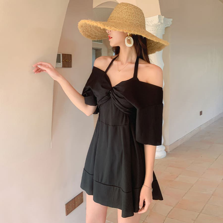 お腹や二の腕、太ももなど体型カバーしつつオフショルにすれば肌見せもできてとても可愛いです。ショーツも繋がってないのでトイレに行く時も楽ちんでいいです