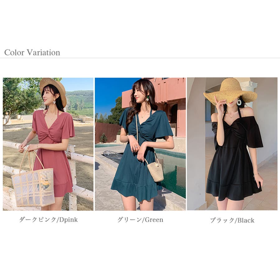 水着 ワンピース 体型カバー レディース 2way オフショル 露出控えめ ワンピース水着 スカート オールインワン 大きいサイズ ひらひら フレア v vネック ホルターネック ホルターネック水着 オフショル水着 オフショルダー オフショルダー水着 2way水着 半袖 袖あり 袖付き 袖 ウエスト ギャザー ツイスト 胸元 小胸 盛れる 盛る 太もも 体型 お腹 カバー 隠し 二の腕 二の腕カバー お尻 ヒップ ふんわり 細見え ハイウエスト ワンピ 一体型 インナー ショートパンツ パンツ インナーパンツ ショーツ 付き セット カップ カップ付き パッド パット パッド付き パット付き あり 2点 2セット セット 韓国風 体型カバー水着 水着体型カバー バスト シンプル 無地 ビーチウェア スイムウェア スイム ぽっちゃり 可愛い水着 海 プール ビーチ リゾート マリン 沖縄 海水浴 夏休み 旅行 セクシー キュート レトロ フェミニン ガーリー エレガント オトナ女子 女性 女子 高校生 大人 可愛い かわいい 大人可愛い おしゃれ オシャレ ママ ママ水着 母 女性 プチプラ 高見え l xl サイズ lサイズ xlサイズ ダークピンク グリーン 緑 ブラック 黒 新作 春夏 夏 韓国 韓国ファッション 10代 20代 30代 40代 50代 cocomomo ココモモ