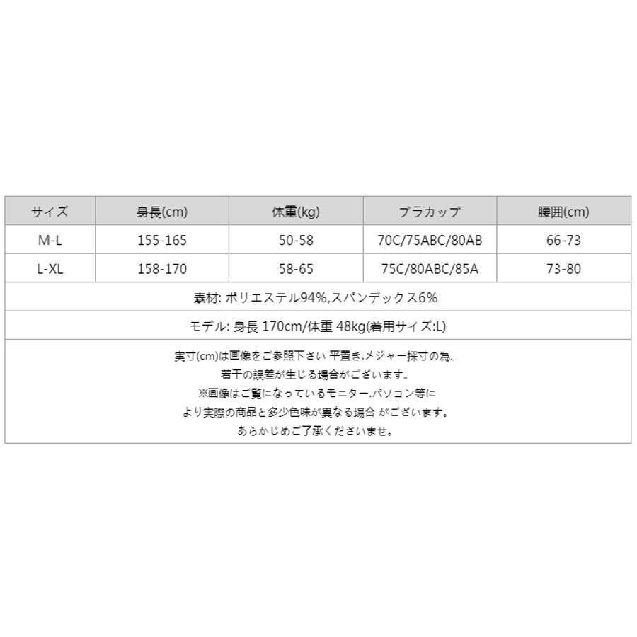 | サイズ | M-L: 身長 155-165cm 体重 50-58kg ブラカップ 70C/75ABC/80AB 腰囲 66-73cm L-XL: 身長 158-170cm 体重 58-65kg ブラカップ 75C/80ABC/85A 腰囲 73-80cm |