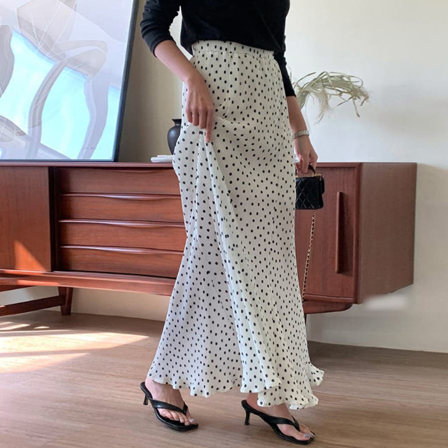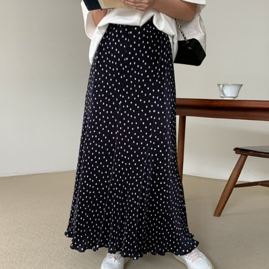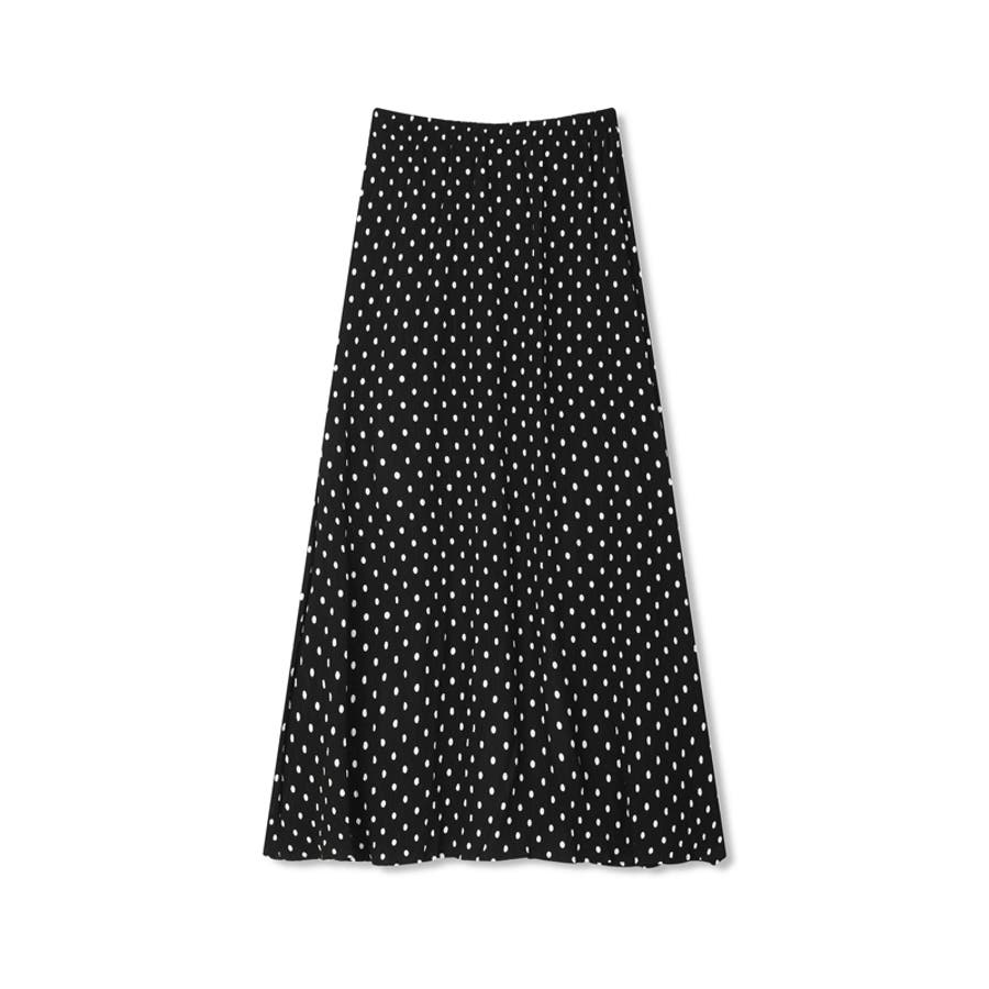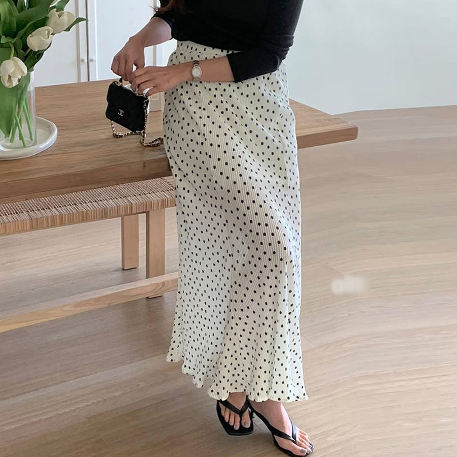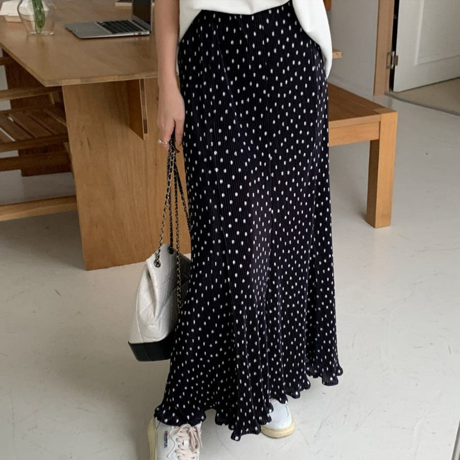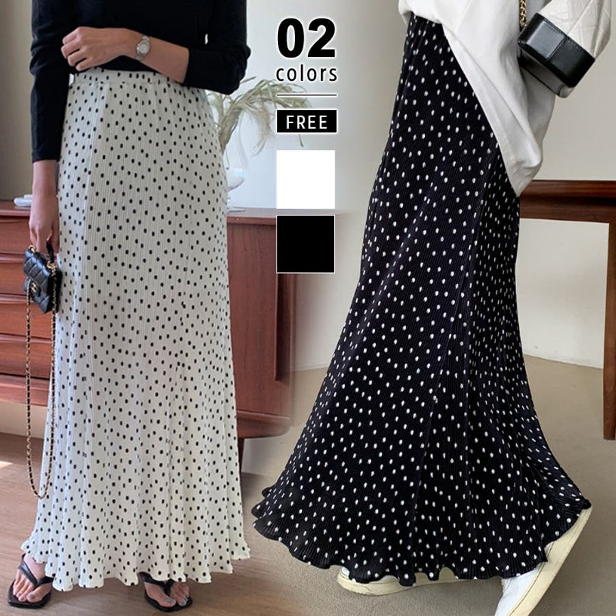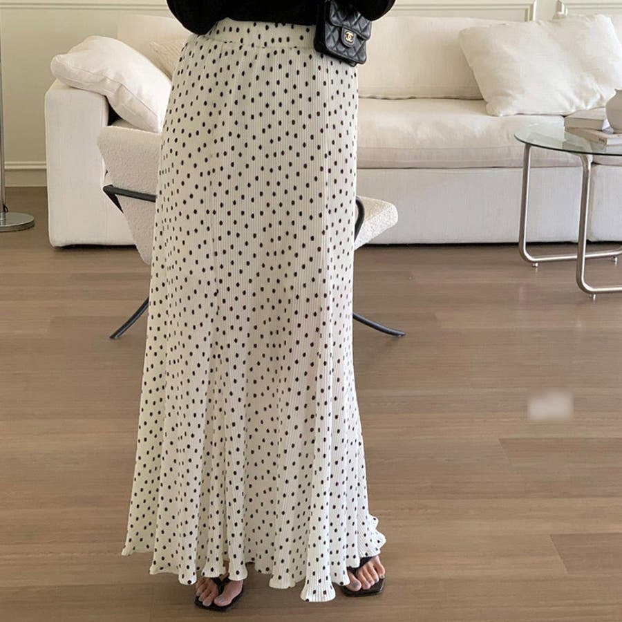 スカート プリーツスカート ロング ドット プリーツ ドットスカート ロングスカート ドット柄 水玉 水玉柄 フレア フレアスカート シフォン シフォンスカート ロング丈 マキシ 丈 マキシスカート レディース ハイウエスト ウエスト ゴム ウエストゴム ボトムス 膝下 長め aライン Aライン お腹 ゆったり 体型カバー 体型 カバー お尻 隠し 楽ちん らくちん 柄 総柄 ポリエステル ふんわり 柔らかい やわらかい 柔らか やわらか 柔らかい素材 ひらひら 着回し 洗える 洗濯機で洗える おでかけ お出かけ 外出 旅行 イベント カジュアル フェミニン ガーリー レトロ 華やか 大人 かわいい 可愛い 大人可愛い オトナ女子 きれい め きれいめ キレイめ おしゃれ オシャレ 通勤 通学 トレンド ヒット 商品 おすすめ 服 ファッション コーデ プチプラ 高見え ママ ママコーデ 母 女性 ホワイト 白 ブラック 黒 カラー 新作 ss aw 春物 夏物 春用 夏用 春夏 春 夏 秋 春服 夏服 秋服 韓国 韓国ファッション 10代 20代 30代 40代 50代 cocomomo ココモモ