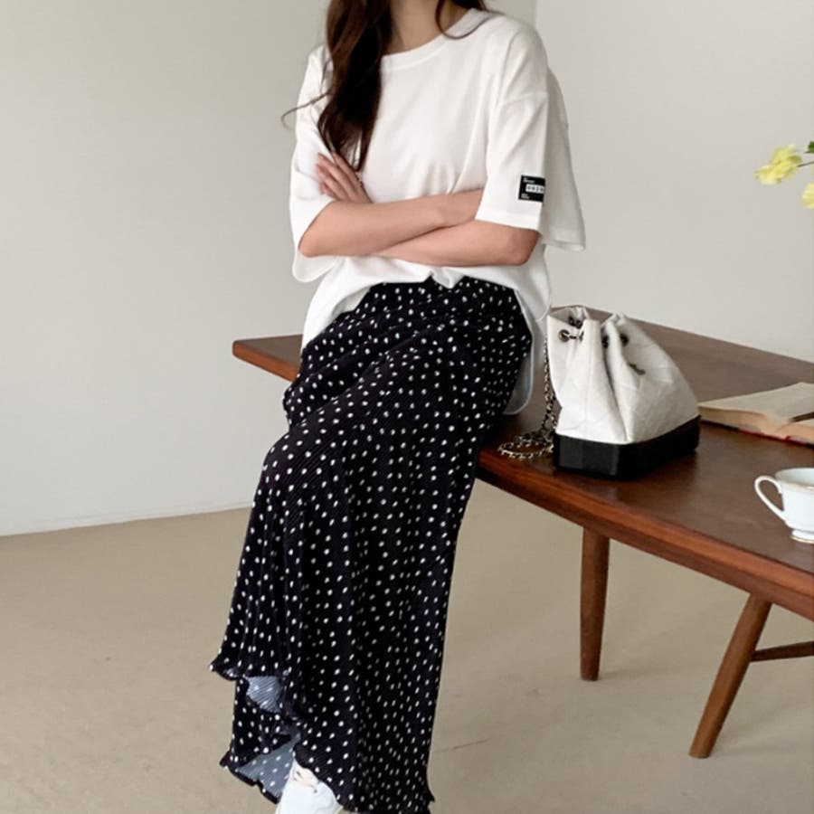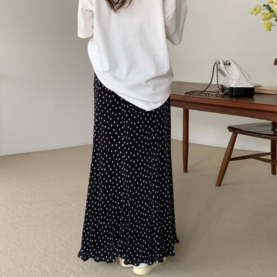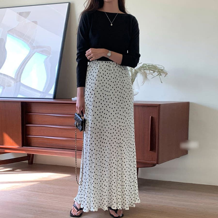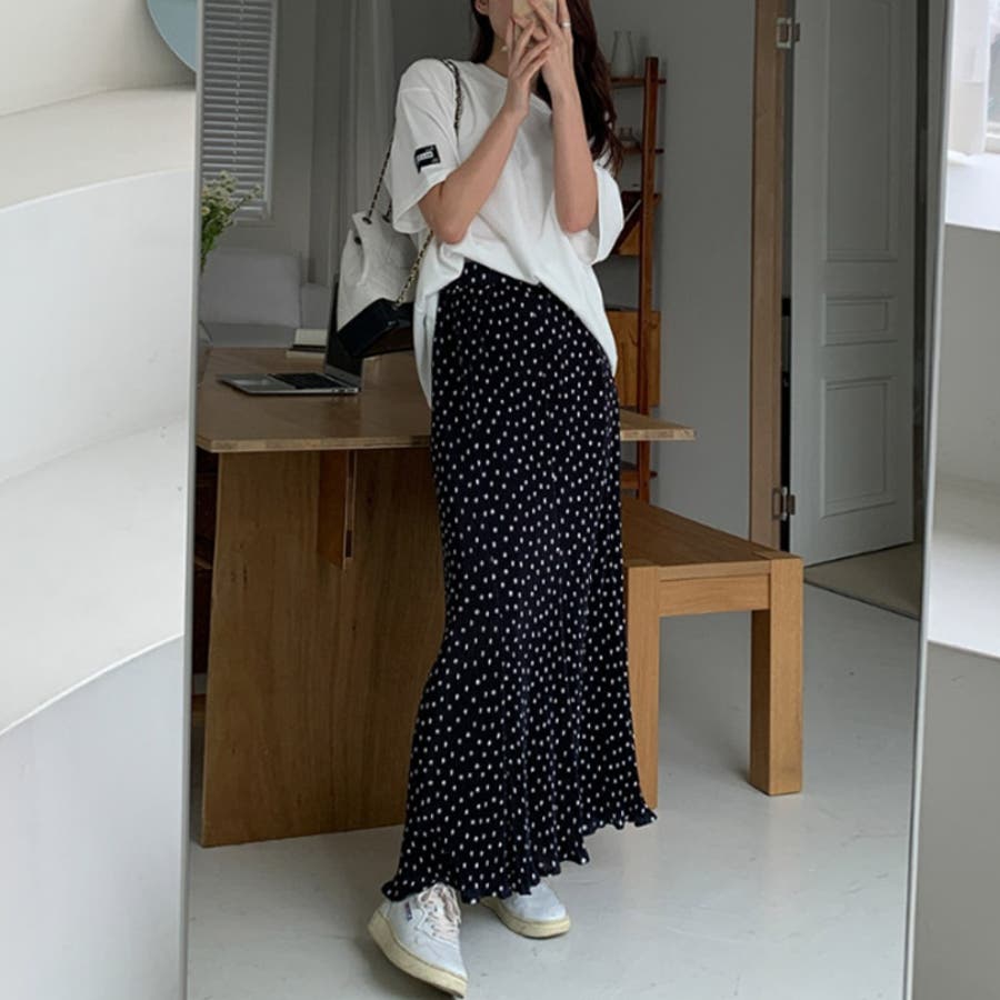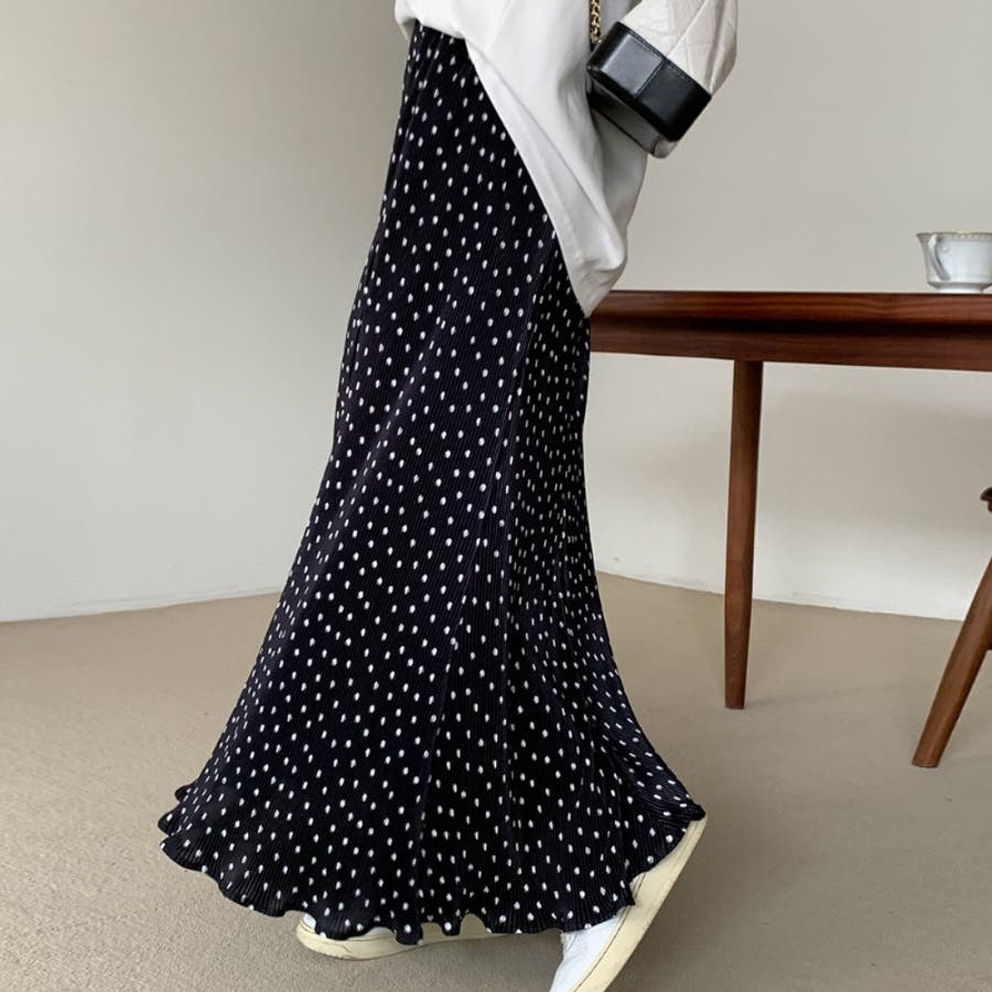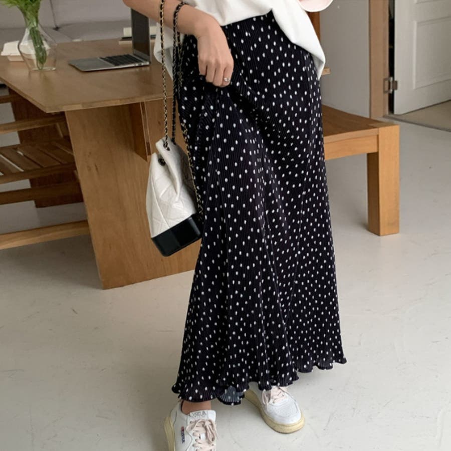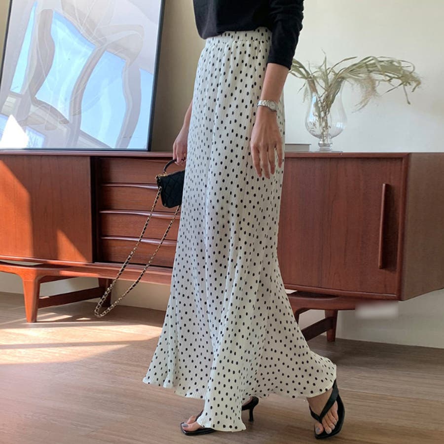 スカート プリーツスカート ロング ドット プリーツ ドットスカート ロングスカート ドット柄 水玉 水玉柄 フレア フレアスカート シフォン シフォンスカート ロング丈 マキシ 丈 マキシスカート レディース ハイウエスト ウエスト ゴム ウエストゴム ボトムス 膝下 長め aライン Aライン お腹 ゆったり 体型カバー 体型 カバー お尻 隠し 楽ちん らくちん 柄 総柄 ポリエステル ふんわり 柔らかい やわらかい 柔らか やわらか 柔らかい素材 ひらひら 着回し 洗える 洗濯機で洗える おでかけ お出かけ 外出 旅行 イベント カジュアル フェミニン ガーリー レトロ 華やか 大人 かわいい 可愛い 大人可愛い オトナ女子 きれい め きれいめ キレイめ おしゃれ オシャレ 通勤 通学 トレンド ヒット 商品 おすすめ 服 ファッション コーデ プチプラ 高見え ママ ママコーデ 母 女性 ホワイト 白 ブラック 黒 カラー 新作 ss aw 春物 夏物 春用 夏用 春夏 春 夏 秋 春服 夏服 秋服 韓国 韓国ファッション 10代 20代 30代 40代 50代 cocomomo ココモモ