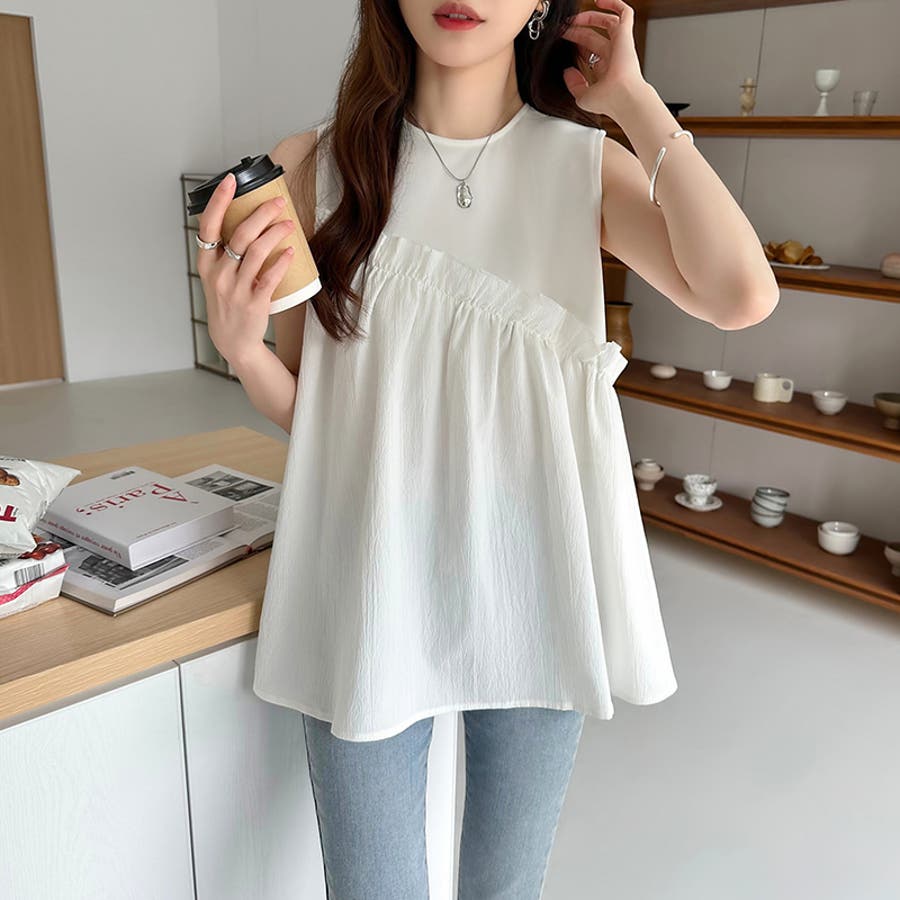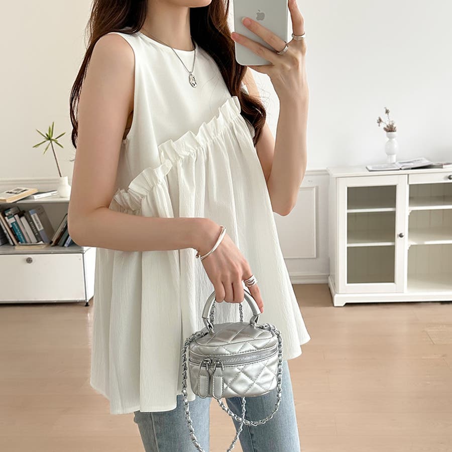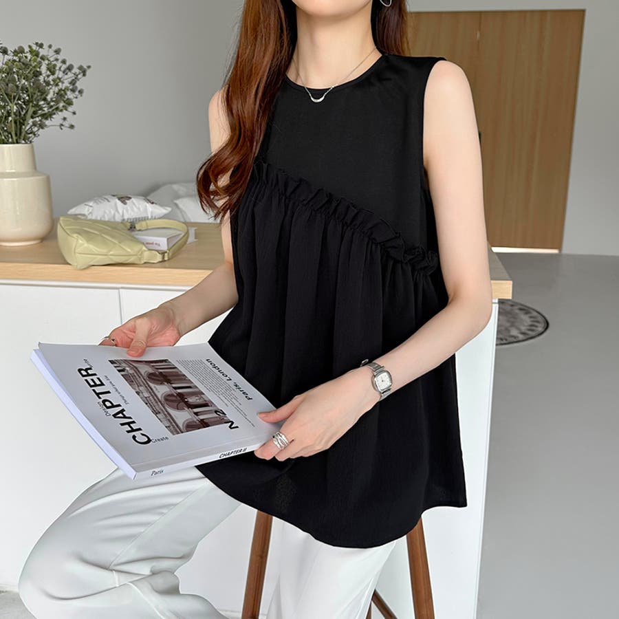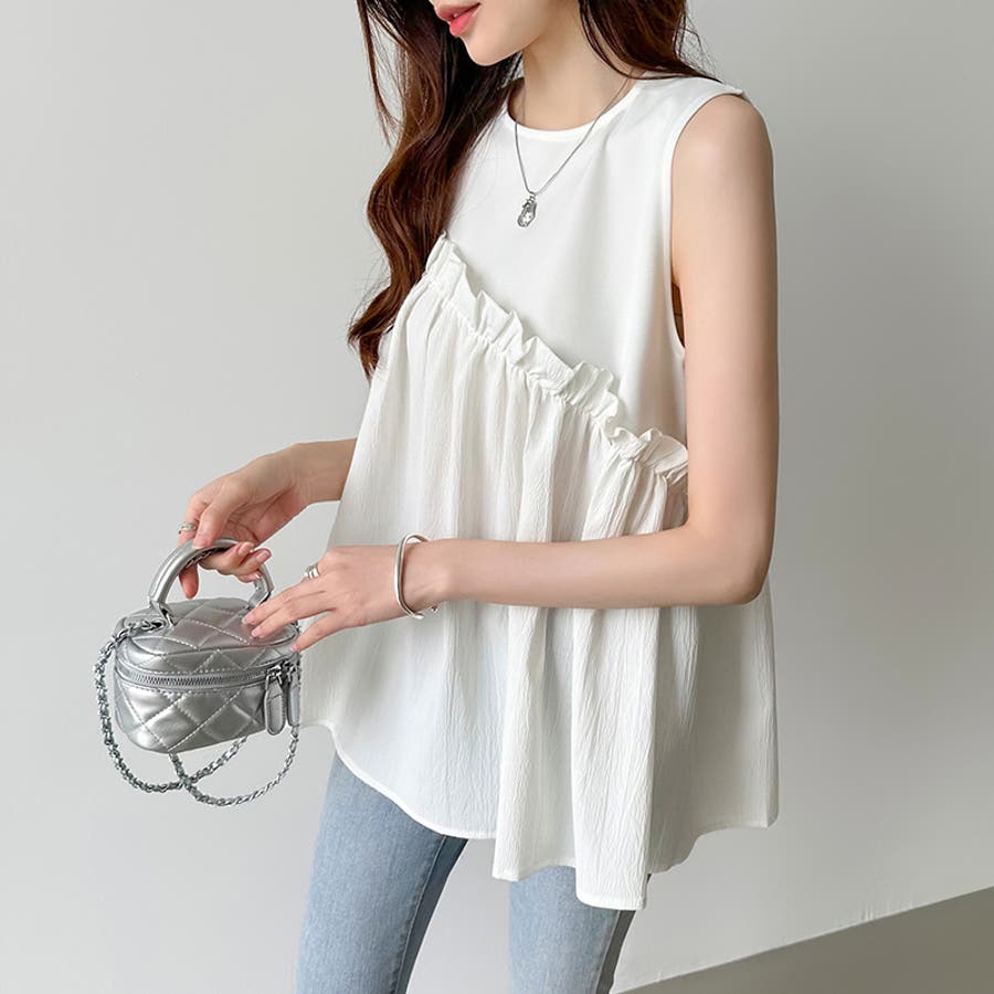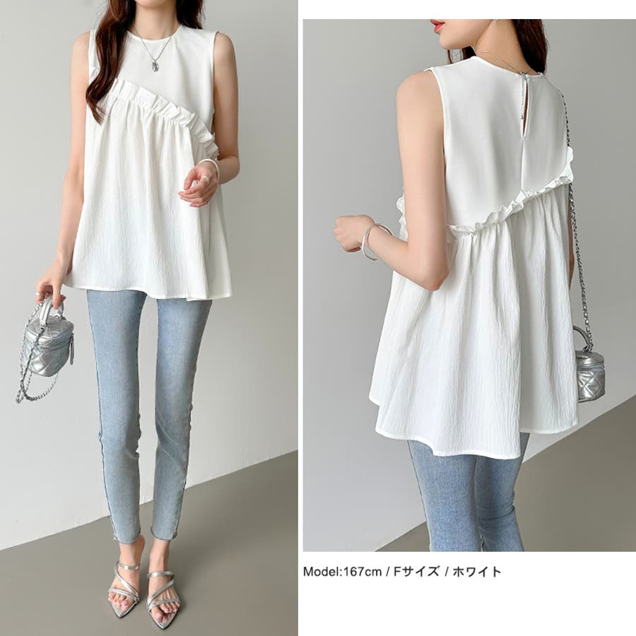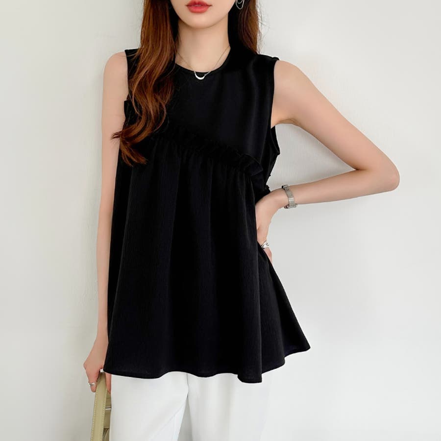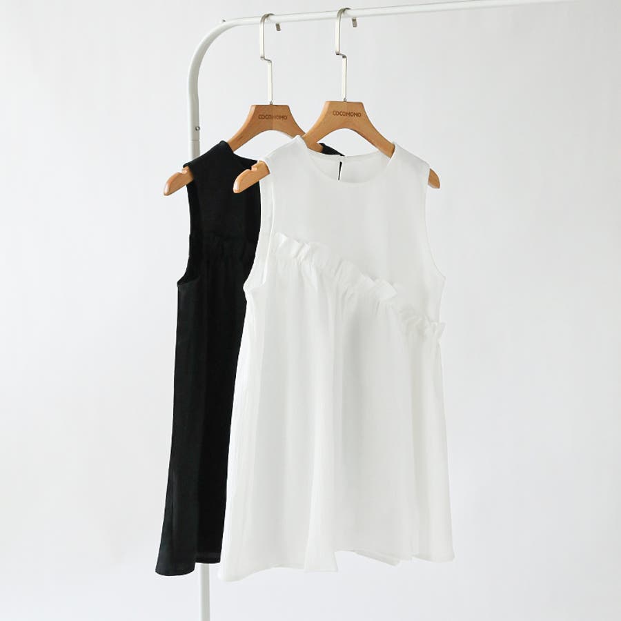 ノースリーブ フリル ブラウス チュニック 切り替え トップス レディース フリルブラウス タンクトップ プリーツ ペプラムブラウス Aライン ペプラムトップス チュニックブラウス ペプラムチュニックブラウス ラウンドネック クルーネック 丸首 襟なし ノーカラー 袖 袖なし 異素材 切替 異素材切り替えプルオーバー 異素材トップス ギャザー aライン ふんわり レディース夏 夏ブラウス 体型 体型カバー 着回し 重ね 重ね着 レイヤード レディースブラウス 着痩せ 着やせ さらさら 涼しい ポリエステル ポリエステル100% tops オフィス オフィスカジュアル オフィスカジュアル春夏 ol カジュアル フェミニン 華やか 大人 かわいい 可愛い 大人かわいい 大人可愛い 大人女子 上品 きれい め きれいめ キレイめ おしゃれ オシャレ ママ ママコーデ 母 女性 プチプラ 高見え トレンド ヒット 商品 おすすめ 服 ファッション コーデ フリーサイズ ホワイト 白 ブラック 黒 カラー レディース夏 新作 春夏 春 夏 春服 夏服 春物 夏物 韓国 韓国ファッション 10代 20代 30代 40代 50代 cocomomo ココモモ