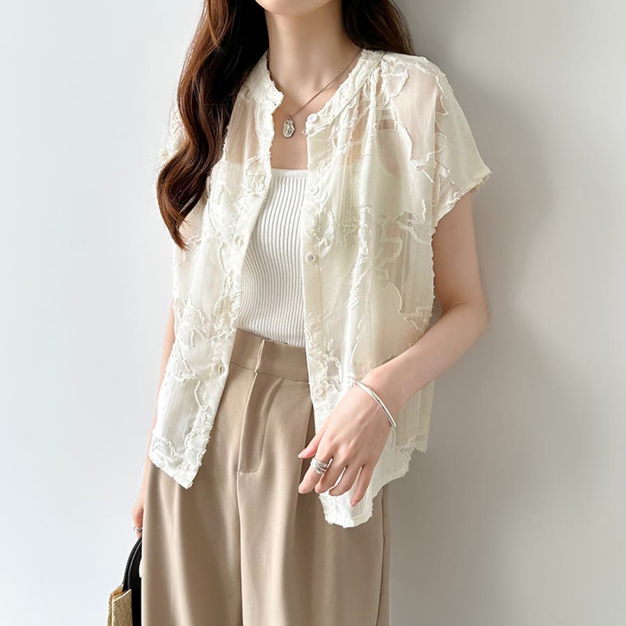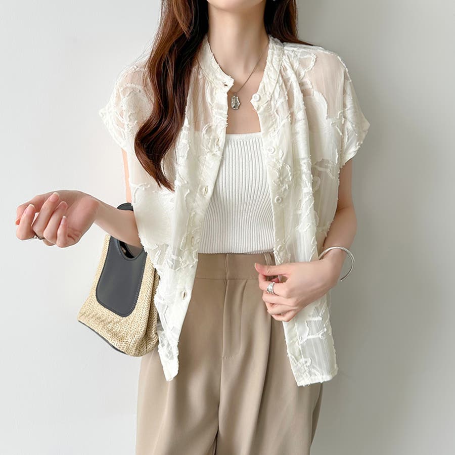 レース シャツ トップス シアー ブラウス シアーシャツ シアーブラウス シアー 半袖 刺繍 レースシャツ シャツブラウス シアーレースシャツ バンドカラー レディース フレンチスリーブ シアージャガード ジャガード シアーブラウス 刺繍ブラウス 刺繍レース 柄 総柄 しあー 襟なし 襟 前開き 羽織 羽織り レディース夏 夏ブラウス 着回し 重ね 重ね着 レイヤード レディースブラウス スタンドカラー 薄手 薄い 透け 透け感 透けてる シースルー オーガンジー さらさら 涼しい ポリエステル100% tops セレモニー 食事会 式 行事 女子会 デート オフィス オフィスカジュアル オフィスカジュアル春夏 カジュアル エレガント 華やか 大人 かわいい 可愛い 大人かわいい 大人可愛い 大人女子 上品 きれい め きれいめ キレイめ おしゃれ オシャレ ママ ママコーデ 母 女性 プチプラ 高見え トレンド ヒット 商品 おすすめ 服 ファッション コーデ フリーサイズ ホワイト 白 ベージュ ブラック 黒 カラー レディース夏 新作 春夏 春 夏 春服 夏服 春物 夏物 春用 夏用 韓国 韓国ファッション 10代 20代 30代 40代 50代 cocomomo ココモモ