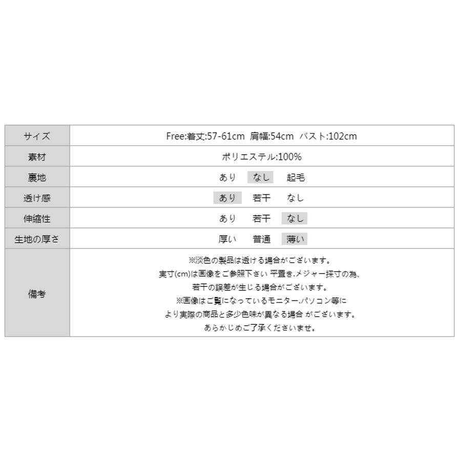 | サイズ | Free: 着丈 57-61cm 肩幅 54cm バスト 102cm |