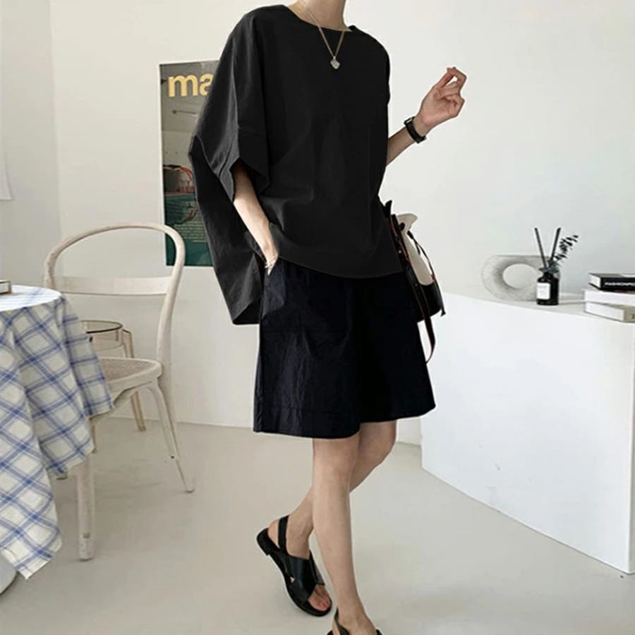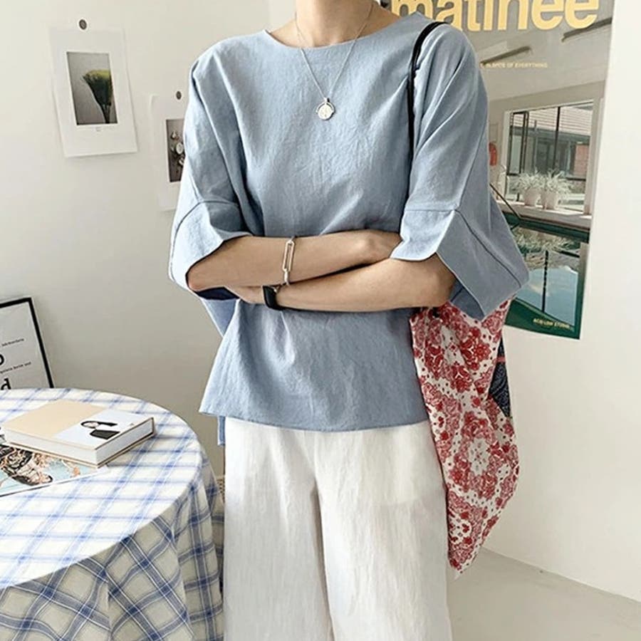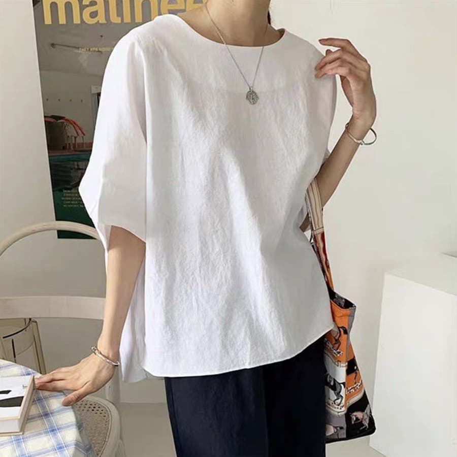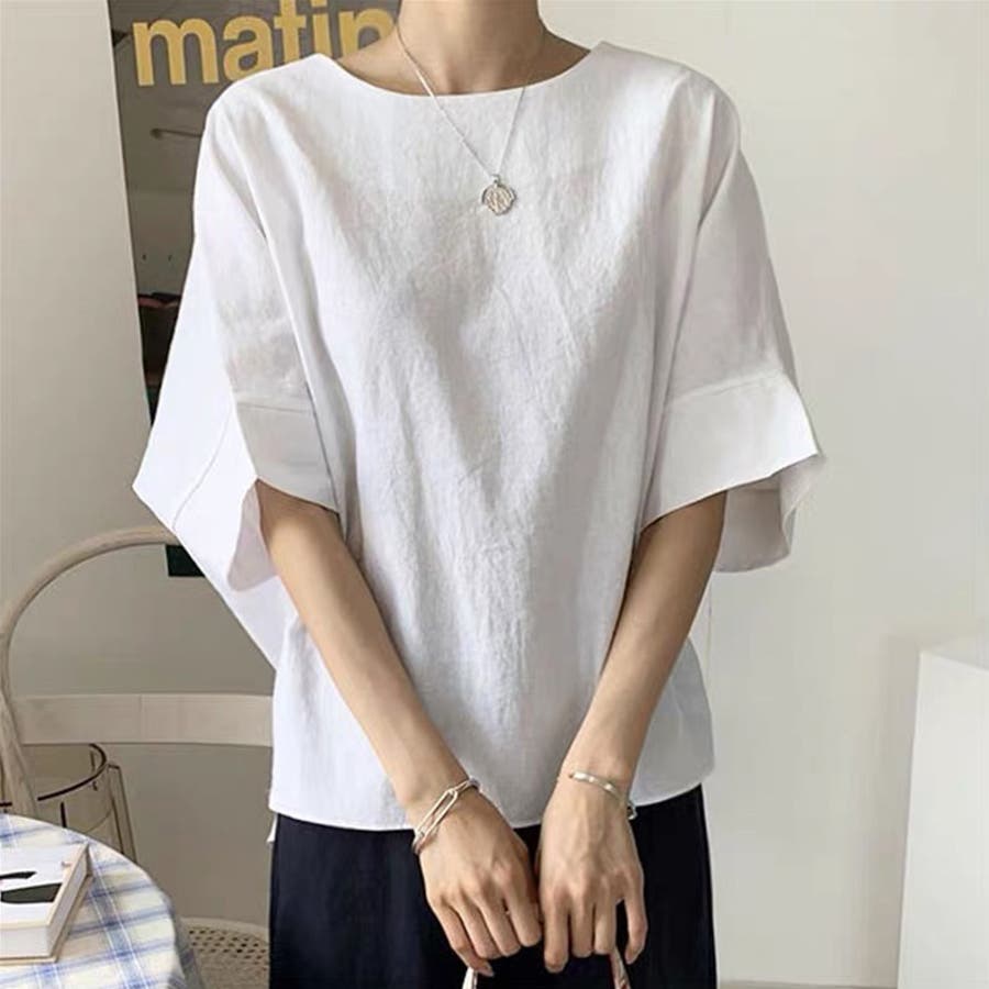 ブラウス トップス 綿麻ブラウス レディース ドルマンスリーブ カットソー 涼感 さらさら 風通し 涼しい リネン コットン 半袖 オーバーサイズ プルオーバー ラウンドネック 袖あり ゆる ゆったり 大きめ 大きいサイズ 体型カバー 二の腕カバー 二の腕 カバー 隠し 着回し 五分袖 ドルマン ドルマンブラウス レディースブラウス 夏トップス 夏トップスレディース 春トップス 春トップスレディース 着痩せ 着やせ 丸首 襟なし ノーカラー 綿 麻 綿麻 シンプル 無地 後ろ 長め スリット スリット入り tops 服装 通勤 通学 ol 仕事 オフィス オフィスカジュアル オフィスカジュアル春夏 レディース春 春ブラウス カジュアル ナチュラル 上品 大人 かわいい 可愛い 大人かわいい 大人可愛い 大人女子 きれい め きれいめ キレイめ おしゃれ オシャレ ママ ママコーデ 母 女性 プチプラ 高見え トレンド ヒット 商品 おすすめ 服 ファッション コーデ m l サイズ mサイズ lサイズ ホワイト 白 ブルー 青 ダークブラウン 茶色 ブラック 黒 カラー 春夏用 新作 春夏 春 夏 春服 夏服 春物 夏物 秋物 韓国 韓国ファッション 10代 20代 30代 40代 50代 60代 cocomomo ココモモ
