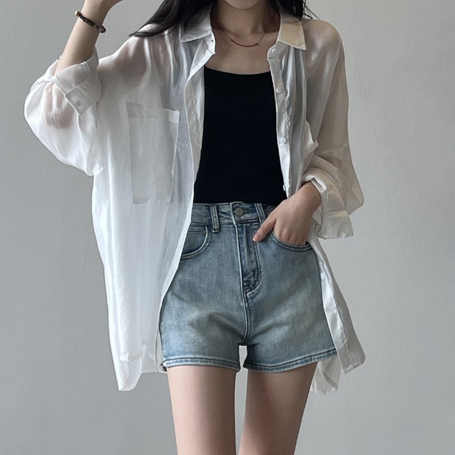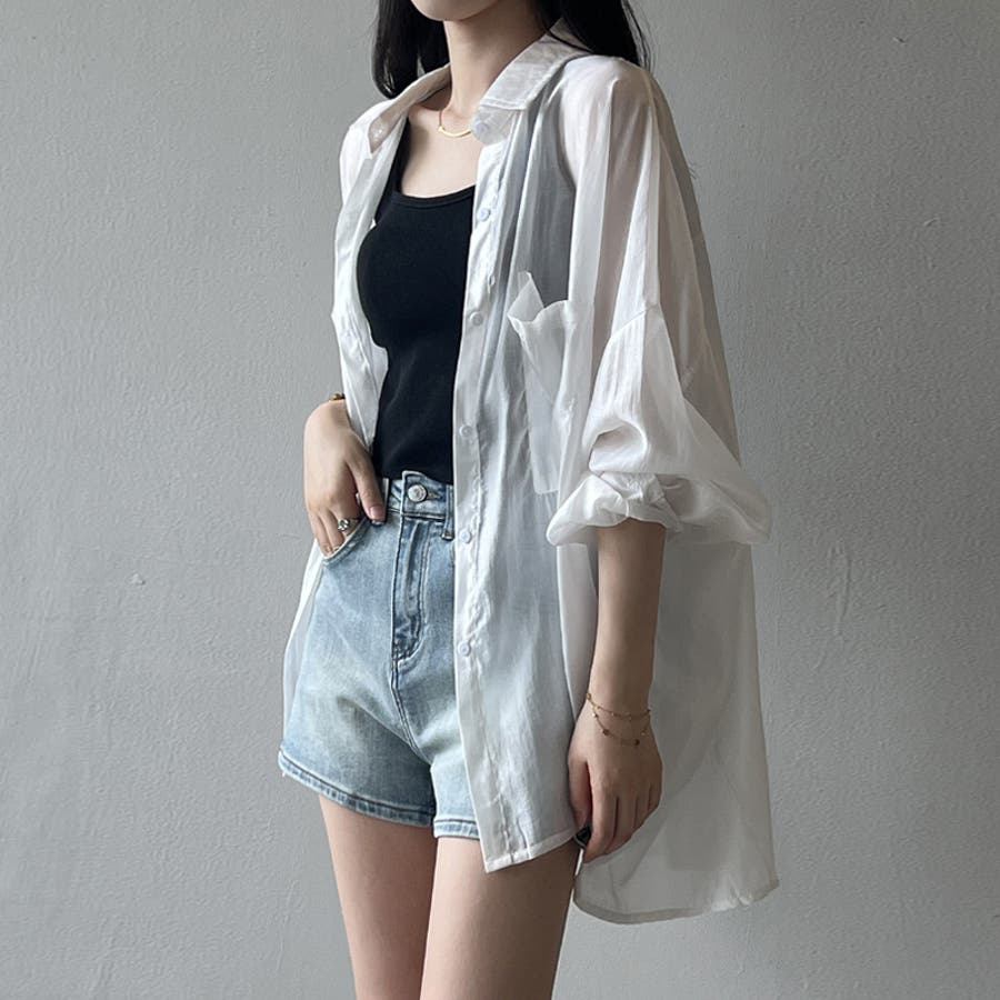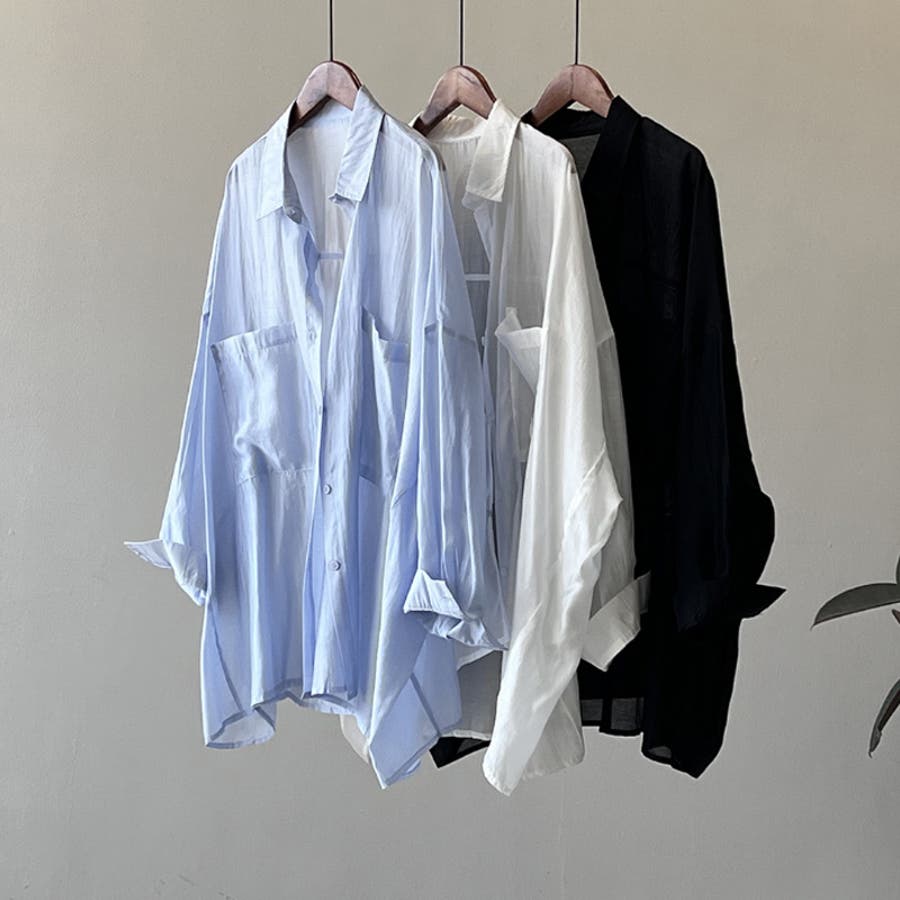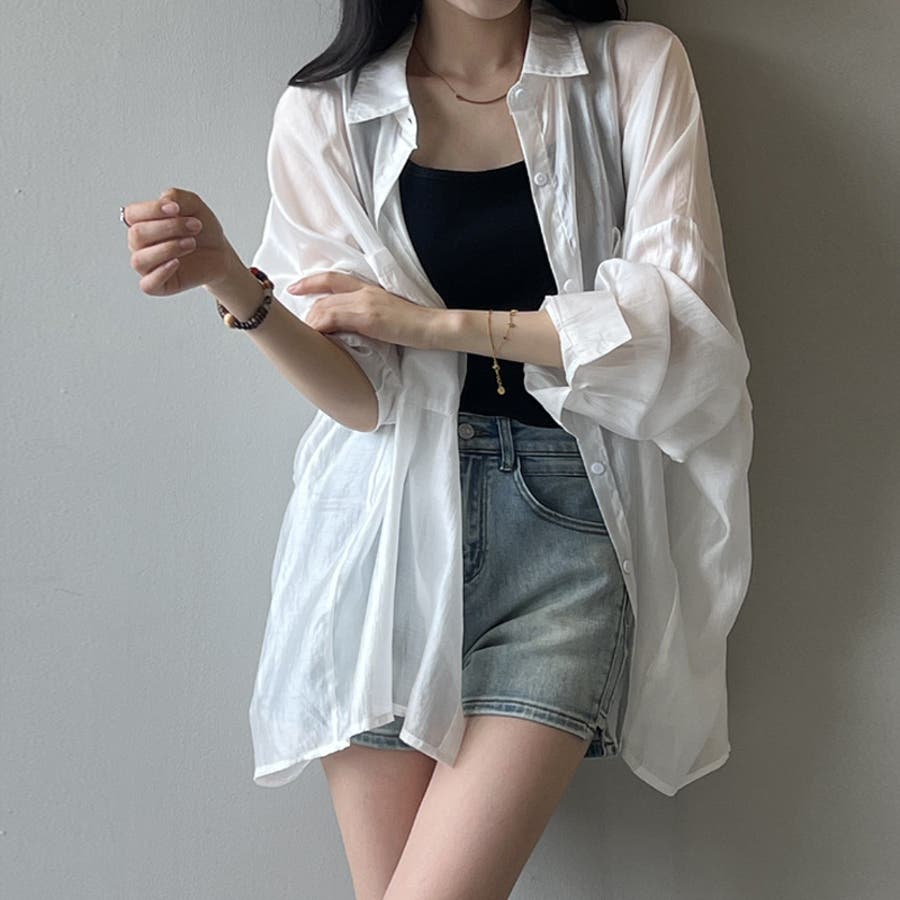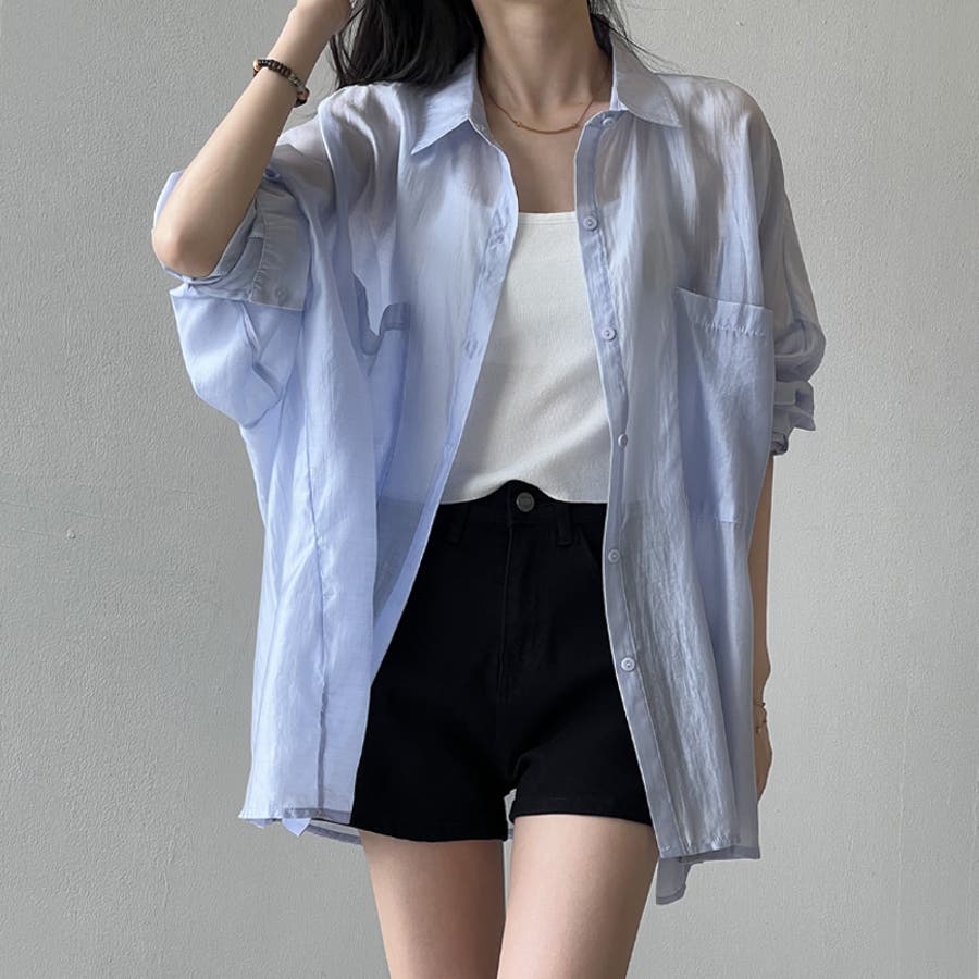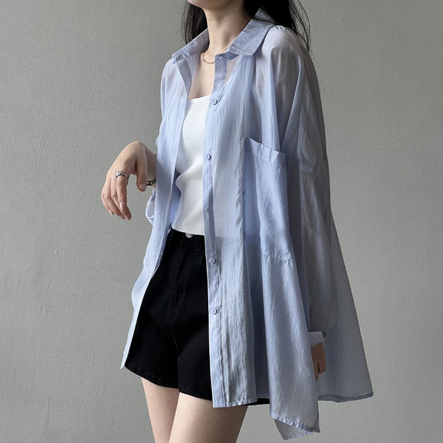 シアーシャツ シャツ レディース シアー トップス 長袖 薄手 UV対策 オーバーサイズ 羽織 羽織り 羽織もの 羽織りシャツ 長袖シャツ ゆる ゆったり 大きい 大きめ 大きいサイズ 体型カバー ビッグシルエット ロング ロング丈 丈 長め 透け感 シースルー サマー さらさら サラサラ さらっと 涼しい 軽い ドロップショルダー ポケット ポケット付き ボタン 前あき 前開きシンプル 無地 UV UVケア 日焼け 対策 日焼け対策 紫外線 紫外線対策 海 山 運動会 おでかけ お出かけ 旅行 レジャー イベント 水着の上 しあー 襟つき 襟あり 前開き はおりもの レディース夏 着回し 重ね 重ね着 レイヤード 薄い 透け 透けてる 薄 tops オフィス オフィスカジュアル オフィスカジュアル春夏 カジュアル 大人 かわいい 可愛い 大人かわいい 大人可愛い 大人女子 きれい め きれいめ キレイめ 綺麗 おしゃれ オシャレ ママ ママコーデ 母 女性 プチプラ 高見え トレンド ヒット 商品 おすすめ 服 ファッション コーデ m l サイズ mサイズ lサイズ ホワイト 白 ブルー 青 水色 ブラック 黒 カラー 薄い色 レディース夏 夏トップス 新作 春夏 春 夏 春服 夏服 春物 夏物 春用 夏用 韓国 韓国ファッション 10代 20代 30代 40代 50代 cocomomo ココモモ