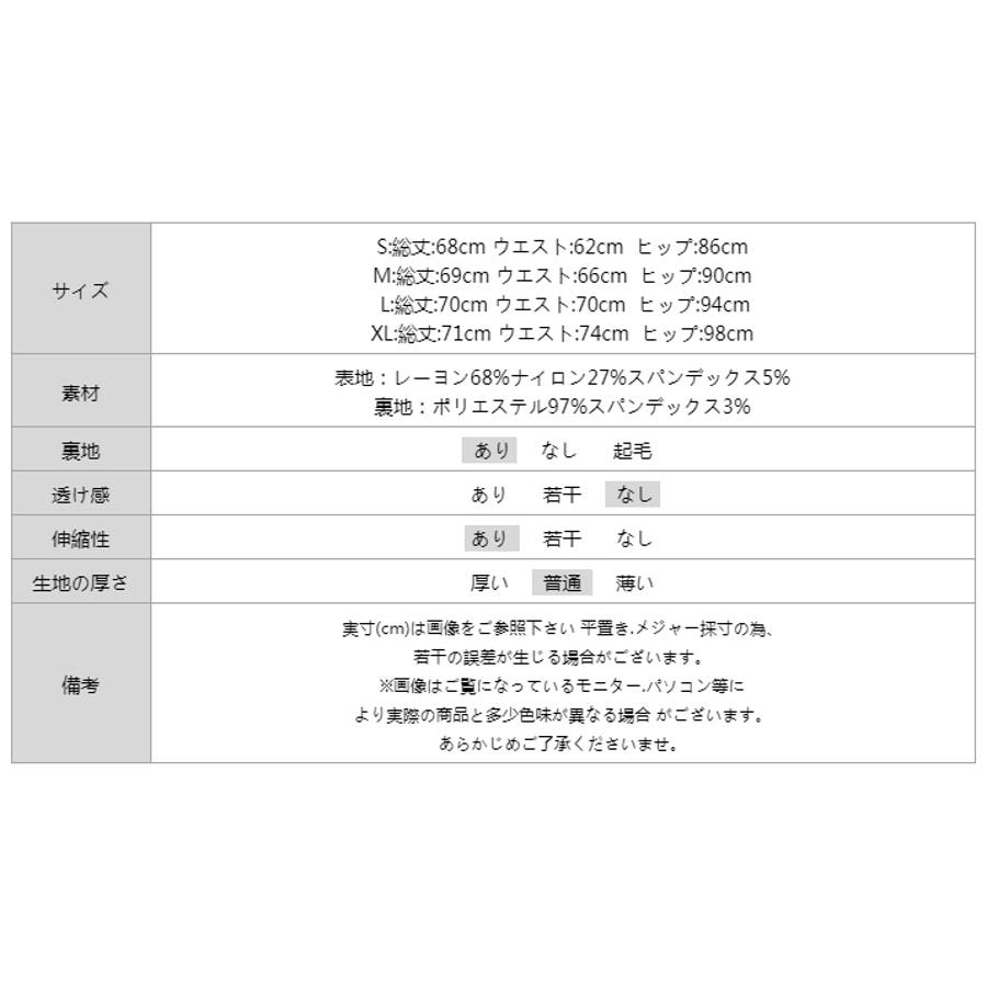 | サイズ | S: 総丈 68cm ウエスト 62cm ヒップ 86cm M: 総丈 69cm ウエスト 66cm ヒップ 90cm L: 総丈 70cm ウエスト 70cm ヒップ 94cm XL: 総丈 71cm ウエスト 74cm ヒップ 98cm |