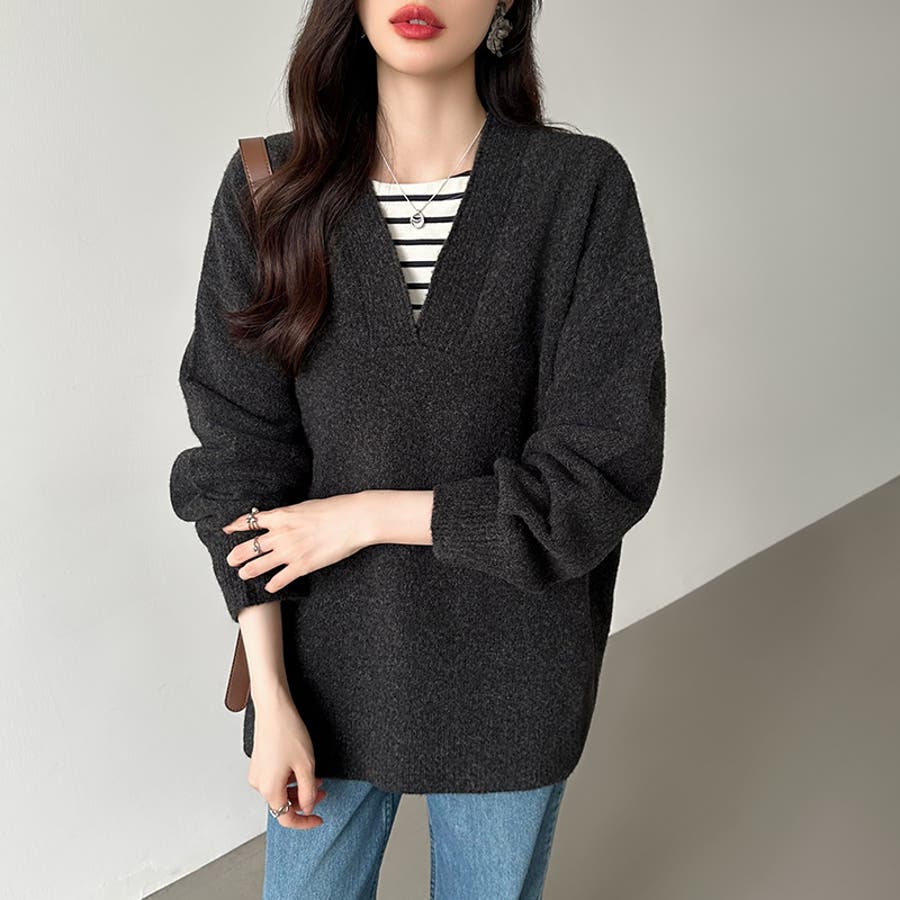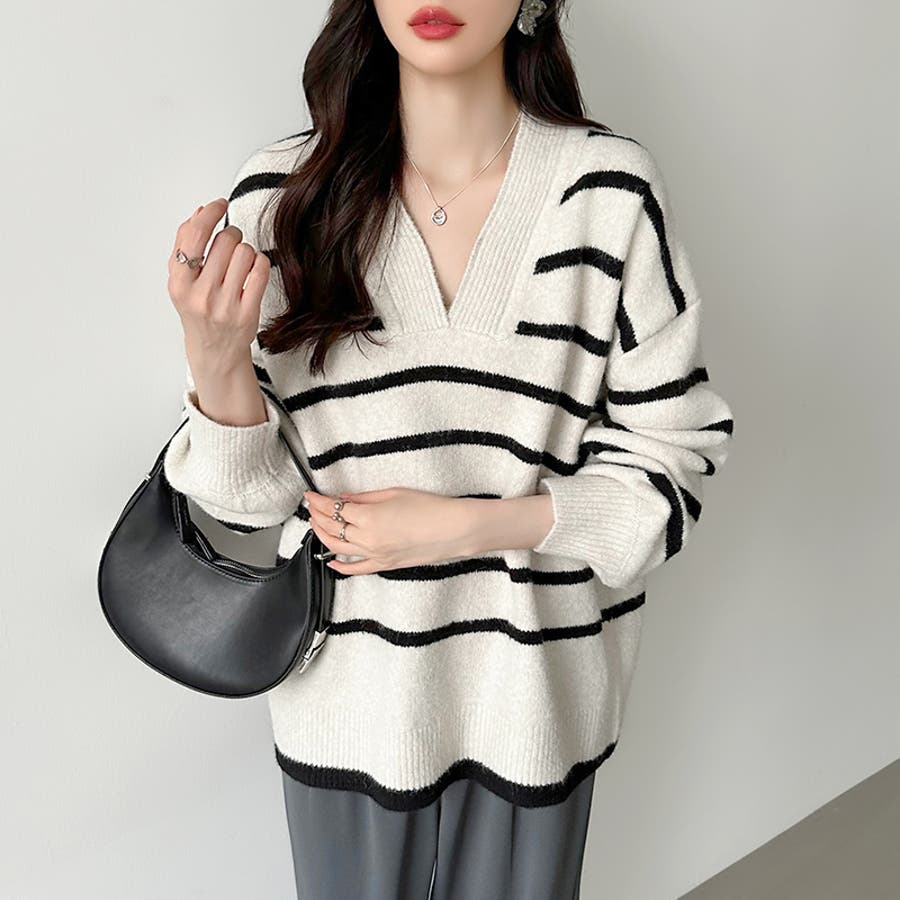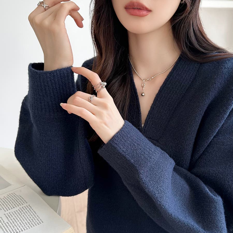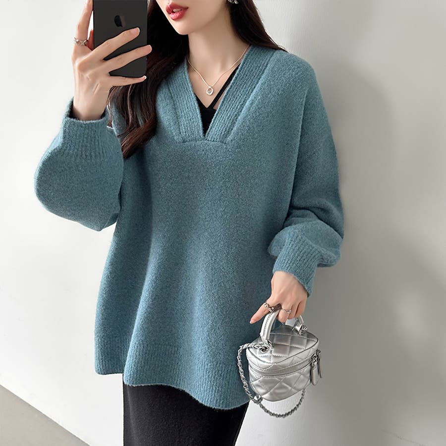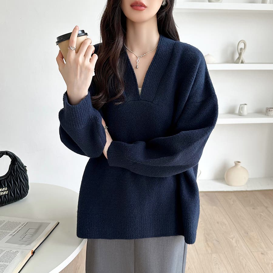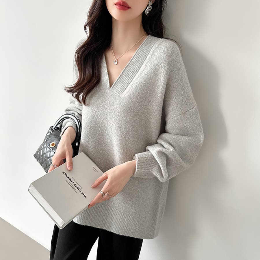 深Vネックニット ドロップショルダー キレカジニットセーター