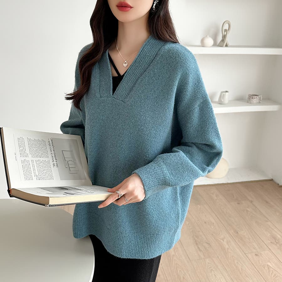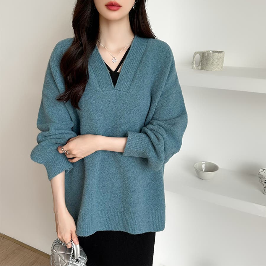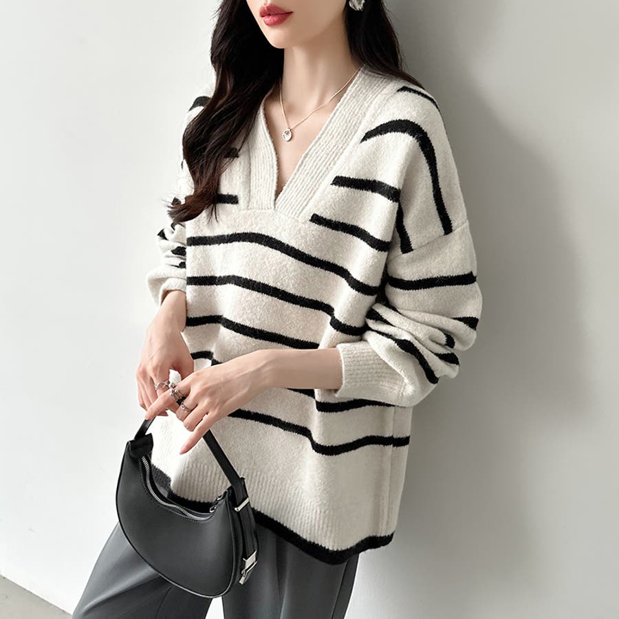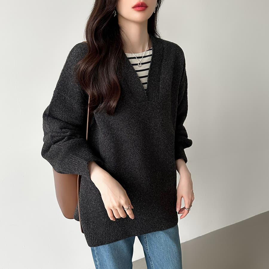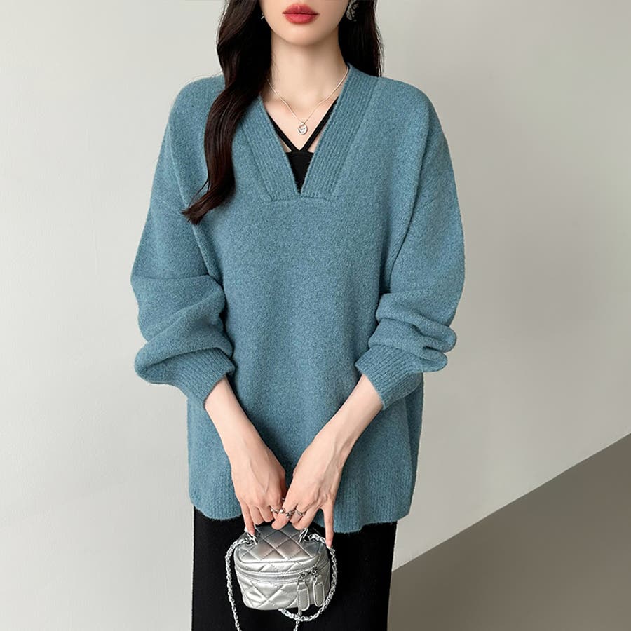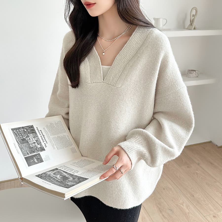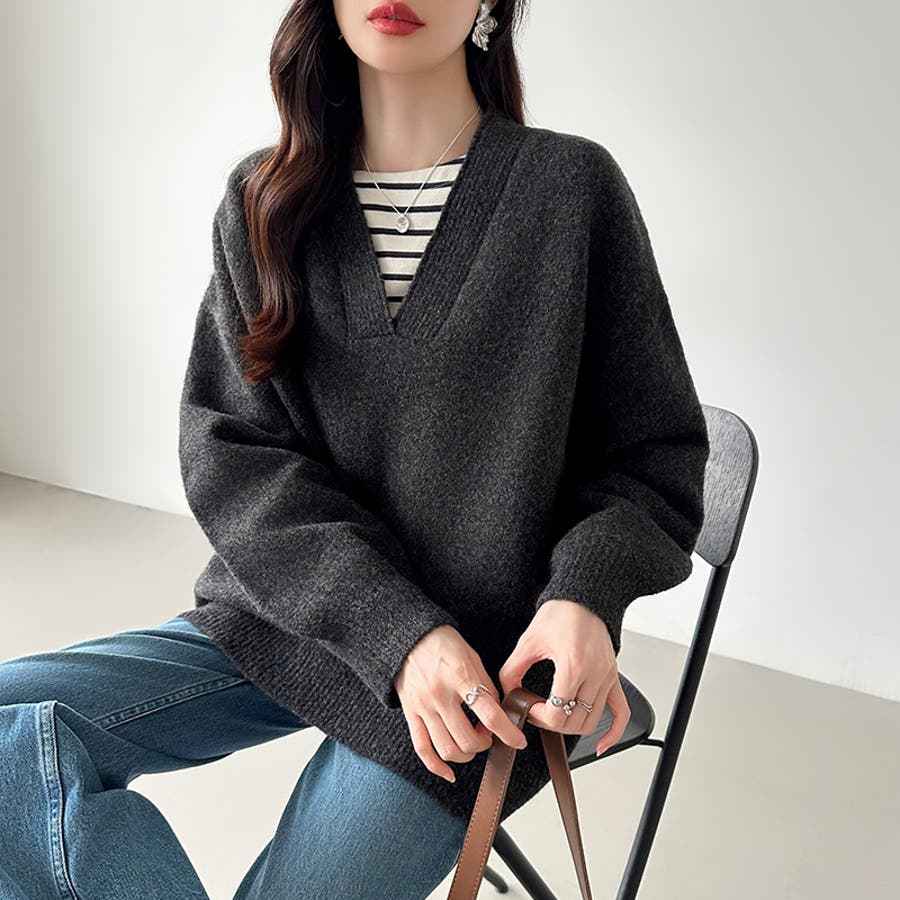 深Vネックニット ドロップショルダー キレカジニットセーター