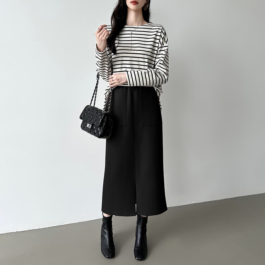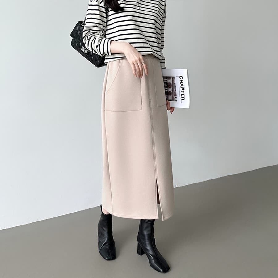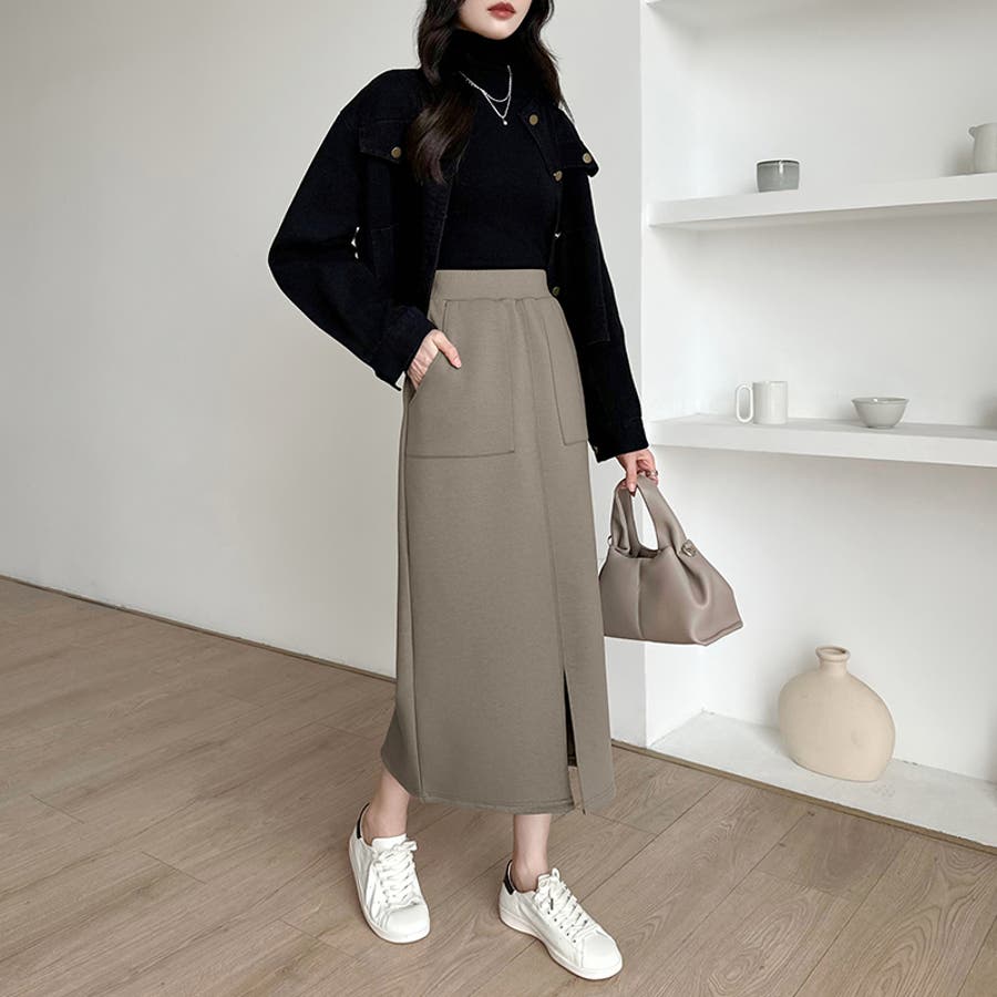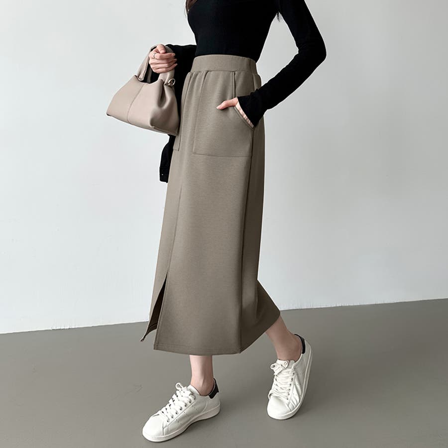 タイトスカート スリット タイト ナロースカート ストレッチ ナロー スカート ロングスカート ロング きれいめ レディース ボトムス ウエストゴム ポケット付き ポケットつき スリット入り ダンボールスカート スリットスカート ストレートスカート ストレッチスカート フロントスリット ハイウエスト ハイウエストスカート 膝下 細見え 伸縮性 生地 ストレート シンプル 無地 ひざ丈 膝下スカート ミモレ丈 ロング丈 着回し ウエスト ゴム ポケット 脚長 美脚 美シルエット 美ライン Iライン iライン iラインスカート 動きやすい 大きい 大きいサイズ 体型カバー 楽ちん 楽 オフィス オフィスカジュアル オフィスカジュアル秋冬 通勤 通学 キレカジ カジュアル 綺麗 きれい目 きれい め キレイめ 大人 かわいい 可愛い 大人可愛い オトナ女子 おしゃれ オシャレ 低身長 高身長 トレンド ヒット 商品 おすすめ 服 ファッション コーデ プチプラ 高見え ママ ママコーデ 母 女性 m l サイズ mサイズ lサイズ ベージュ モカ ネイビー 紺 紺色 ブラック 黒 アイボリー 新作 秋冬 春物 秋物 冬物 春 秋 冬 春服 秋服 冬服 韓国 韓国ファッション 10代 20代 30代 40代 50代 60代 cocomomo ココモモ 裏起毛 あったか 厚い 厚手 防寒 軽くて暖か 暖か ダンボール 生地 ダンボールニット ライトグレー ダークグレー 灰色