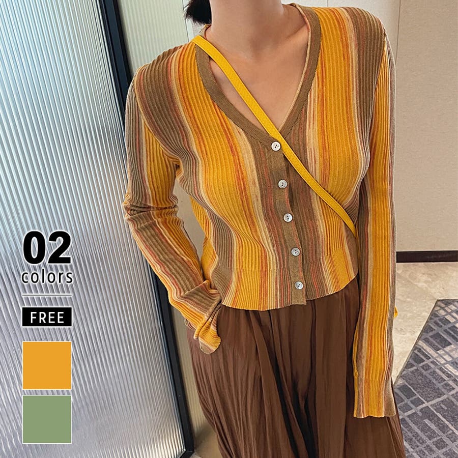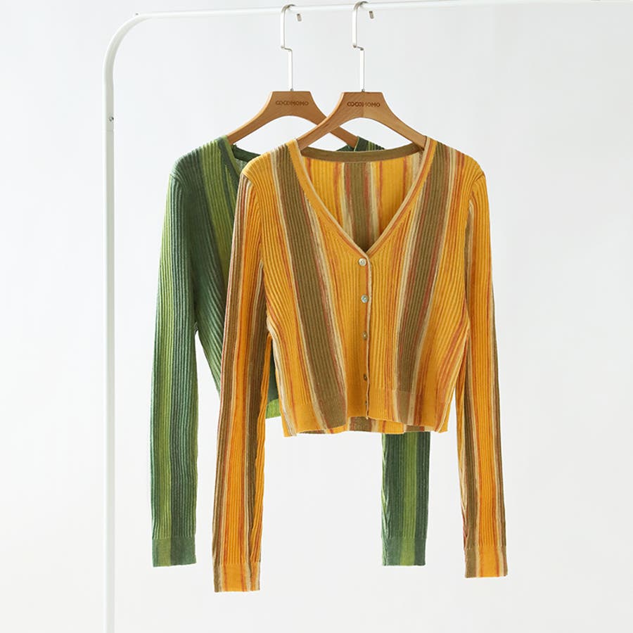 カーディガン リブニット vネック 長袖 レディース トップス ニット vネックカーディガン ニットカーディガン リブ グラデーション ストライプ クロップド クロップド丈 ショート ショート丈 かーでぃがん 深Vネック 深v v Vネック 袖 長め 袖クシュ 羽織 羽織り 羽織もの 上着 ボタン ボタン付き 前あき 前開き 冷え対策 冷房対策 暖かい 重ね 重ね着 レイヤード 着回し 伸縮性 ストレッチ フィット 着痩せ tops シワになりにくい アクリル ウール やわらかい 柔らかい やわらか 柔らか ソフトな肌触り 韓国風 きれいめ きれい め カジュアル 大人 かわいい 可愛い 大人かわいい 大人可愛い おしゃれ オシャレ ママ ママコーデ 母 女性 プチプラ 高見え トレンド ヒット 商品 おすすめ 服 ファッション コーデ フリーサイズ オレンジ グリーン 緑 カラー 新作 春秋 秋冬 春 秋 冬 春服 秋服 冬服 春物 秋物 冬物 韓国 韓国ファッション 10代 20代 30代 40代 50代 cocomomo ココモモ