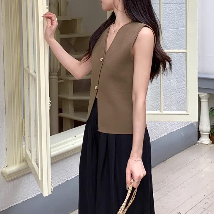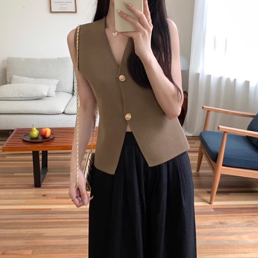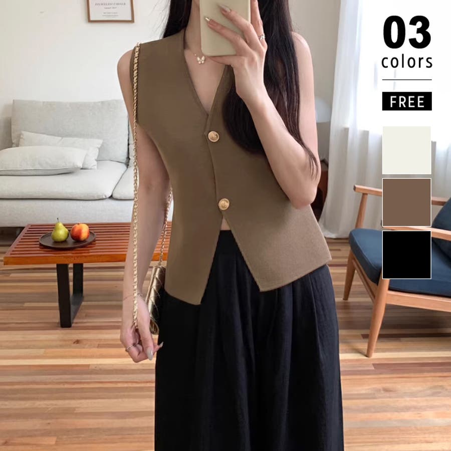 ベスト 金ボタン Vネック ノースリーブ スリット 前開き レディース ニットベスト ニット オシャレ トップス スリット入り ニットレディース ノースリーブニットレディース ニットトップス v ネックv 深v シンプル ノーカラー 袖なし ボタン トップス ストレッチ 伸縮性 着回し 重ね着 重ね レイヤード アクリル 柔らかい やわらかい やわらか ソフトな肌触り ふんわり もちもち チクチクしない ちくちくしにくい お出かけ おでかけ 旅行 レトロ カジュアル きれいめ キレイめ きれい 大人 かわいい 可愛い 大人可愛い オトナ女子 おしゃれ プチプラ ママ ママコーデ 母 女性 トレンド ヒット 商品 おすすめ 服 ファッション コーデ フリーサイズ アイボリー ダークブラウン 茶色 ブラック 黒 前開き春 ニットベスト秋冬 秋色 新作 春夏 秋冬 春 夏 秋 冬 春服 秋服 韓国 韓国ファッション 10代 20代 30代 40代 50代 cocomomo ココモモ