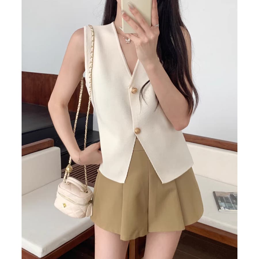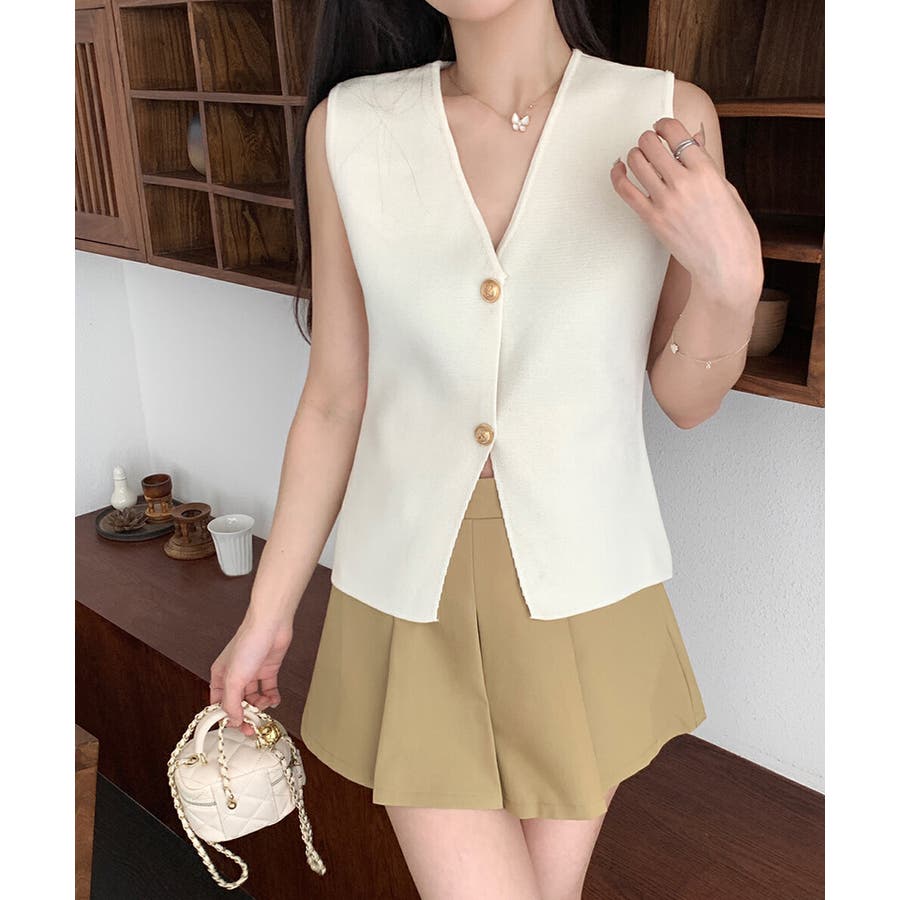 ノースリーブニットベスト 金ボタン 韓国ファッション