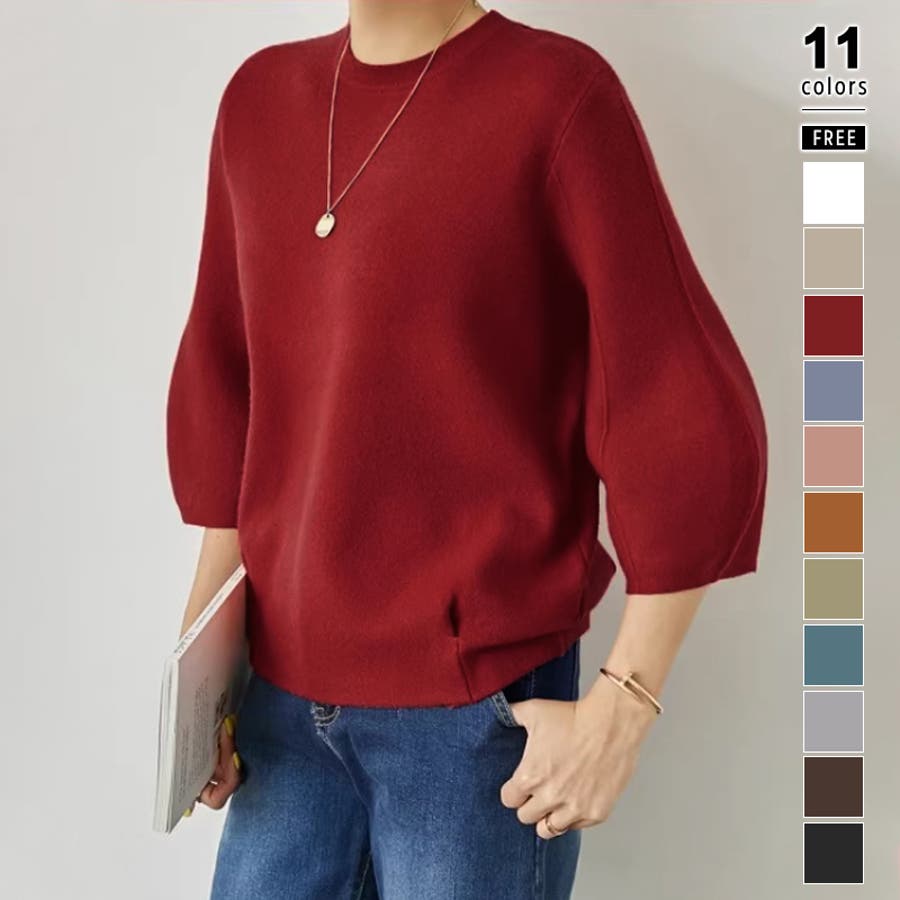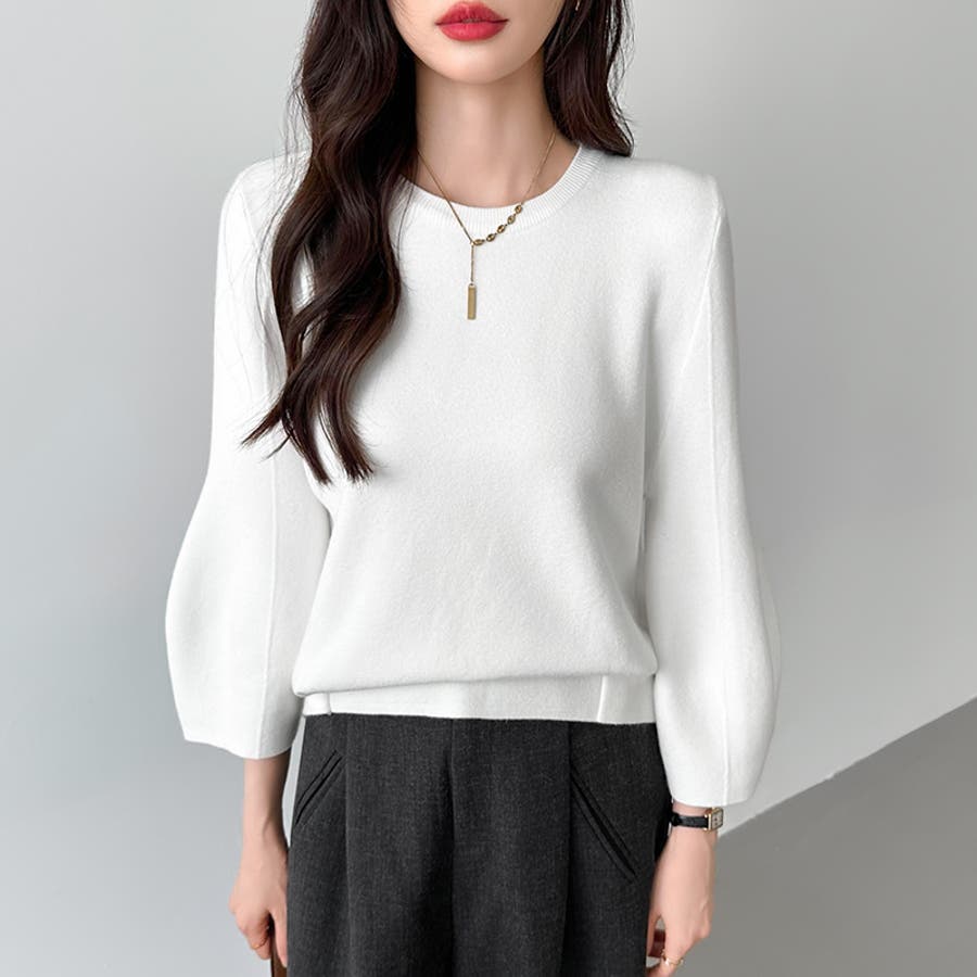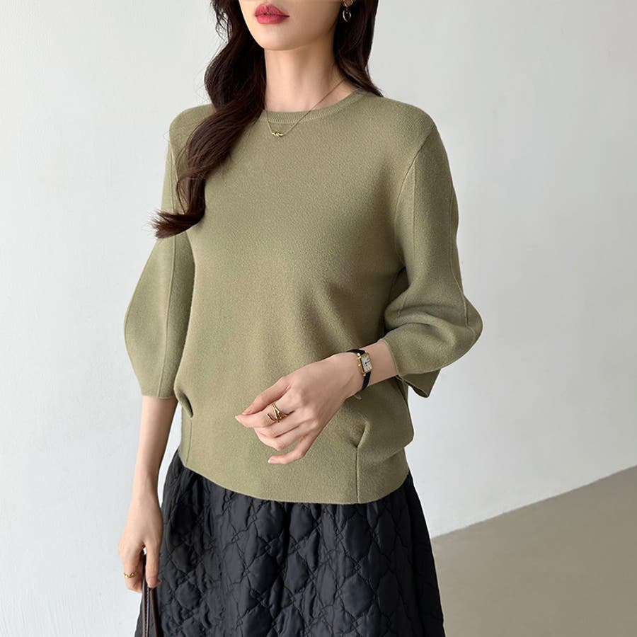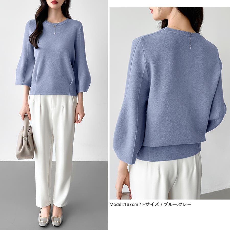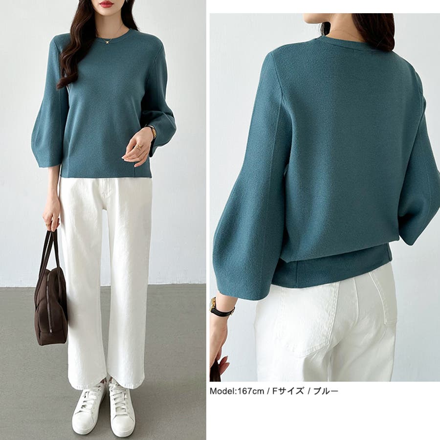 ニット トップス 七分袖 レディース ぽわん袖 立体フォルム ニットトップス タック ストレッチ セーター プルオーバー プルオーバーニット バルーン袖 カーブ 袖 クルーネック ラウンドネック ゆったり 大きめ 大きい おしゃれ きれいめ バルーンスリーブ 立体 タックヘム ダーツ7分袖 7分袖 ニットセーター ニットレディース tops ぽわん ポワン袖 ポワン ボリューム袖 ボリューム 着回し 伸縮性 アクリル チクチクしない チクチクしにくい ちくちくしにくい ふわ ふんわり もちもち 柔らかい やわらかい やわらか ソフトな肌触り ソフト ヤク風 あったか 通勤 通学 オフィス オフィスカジュアル オフィスカジュアル秋冬 カジュアル 上品 きれい キレイめ 大人 オトナ かわいい 可愛い 大人可愛い オトナ女子 オシャレ 女性 母 ママ ママコーデ プチプラ 高見え フリーサイズ トレンド ヒット 商品 おすすめ 服 ファッション フリー サイズ フリーサイズ ホワイト 白 ベージュ ブルーグレー 青 水色 レッド 赤 ブラック 黒 きれい色 新作 秋冬 春秋 春 秋 冬 春服 秋服 冬服 韓国 韓国ファッション 20代 30代 40代 50代 60代 cocomomo ココモモ グレー 灰色 グリーン 緑 ブルー ピンク オレンジ ブラウン 茶色