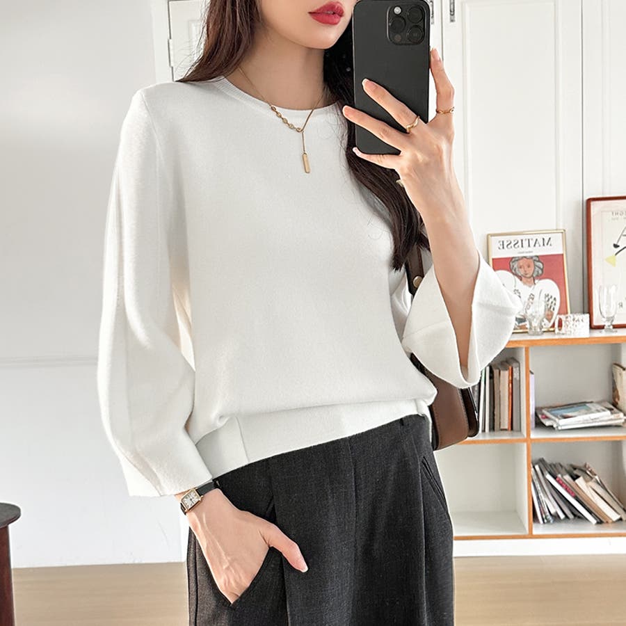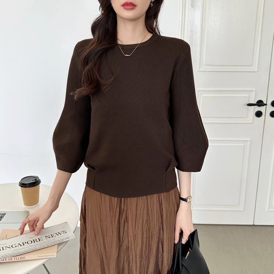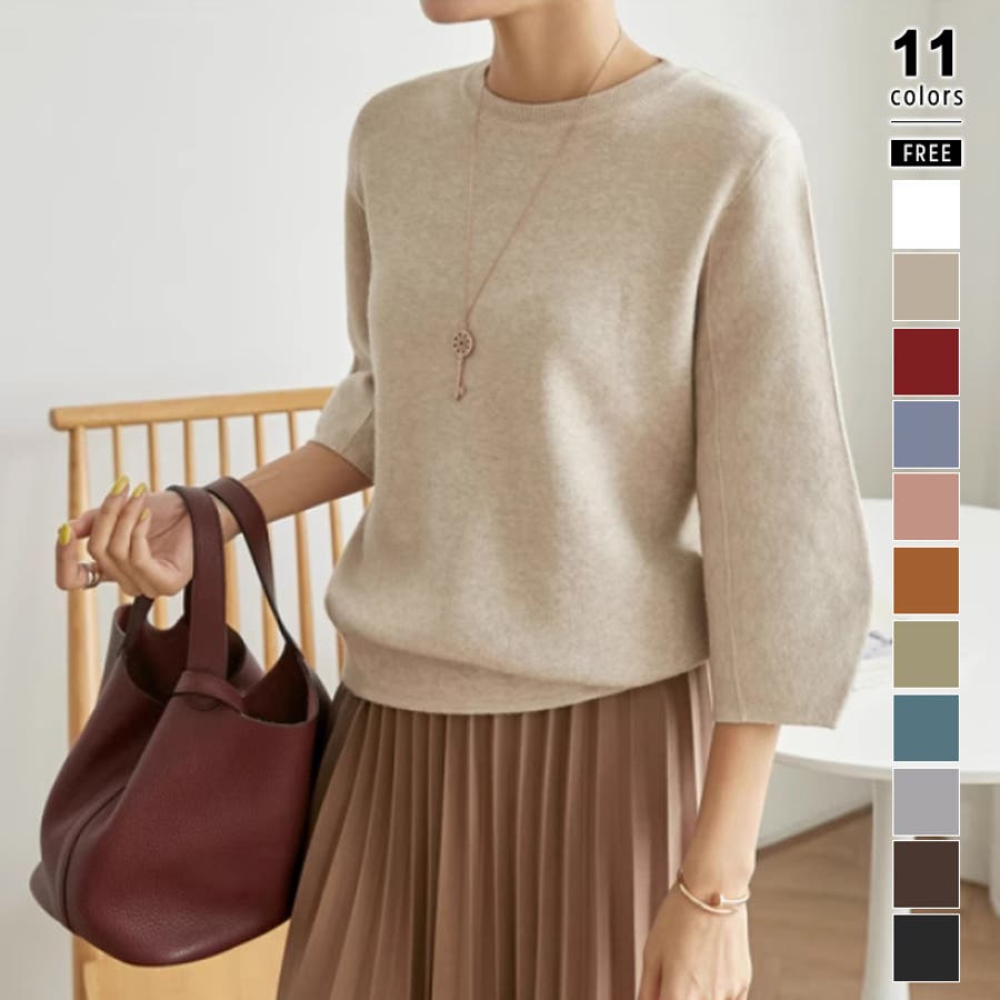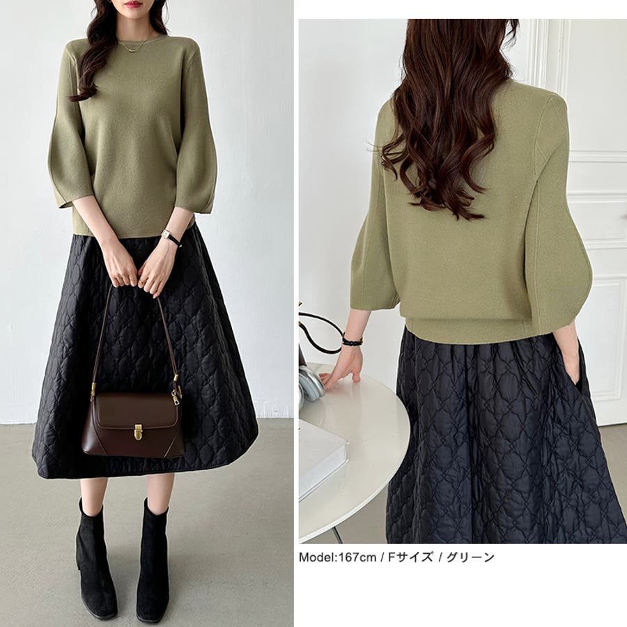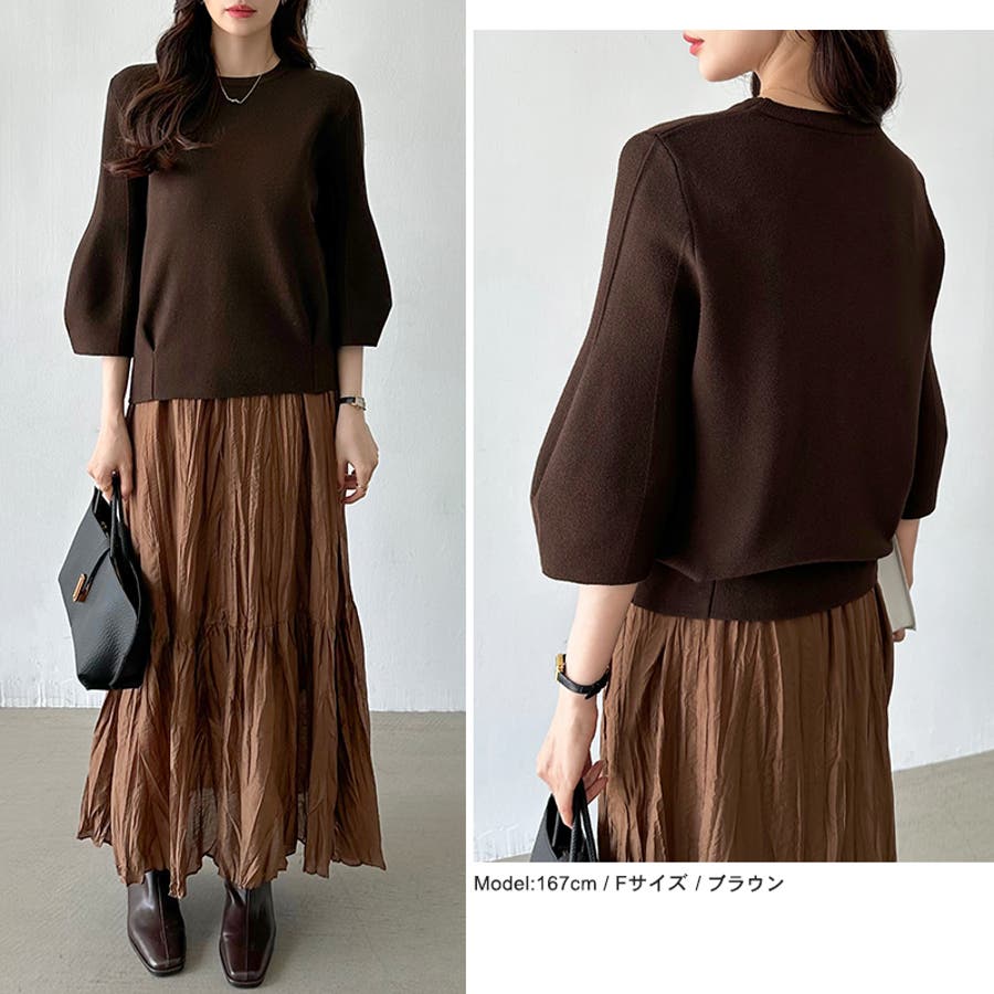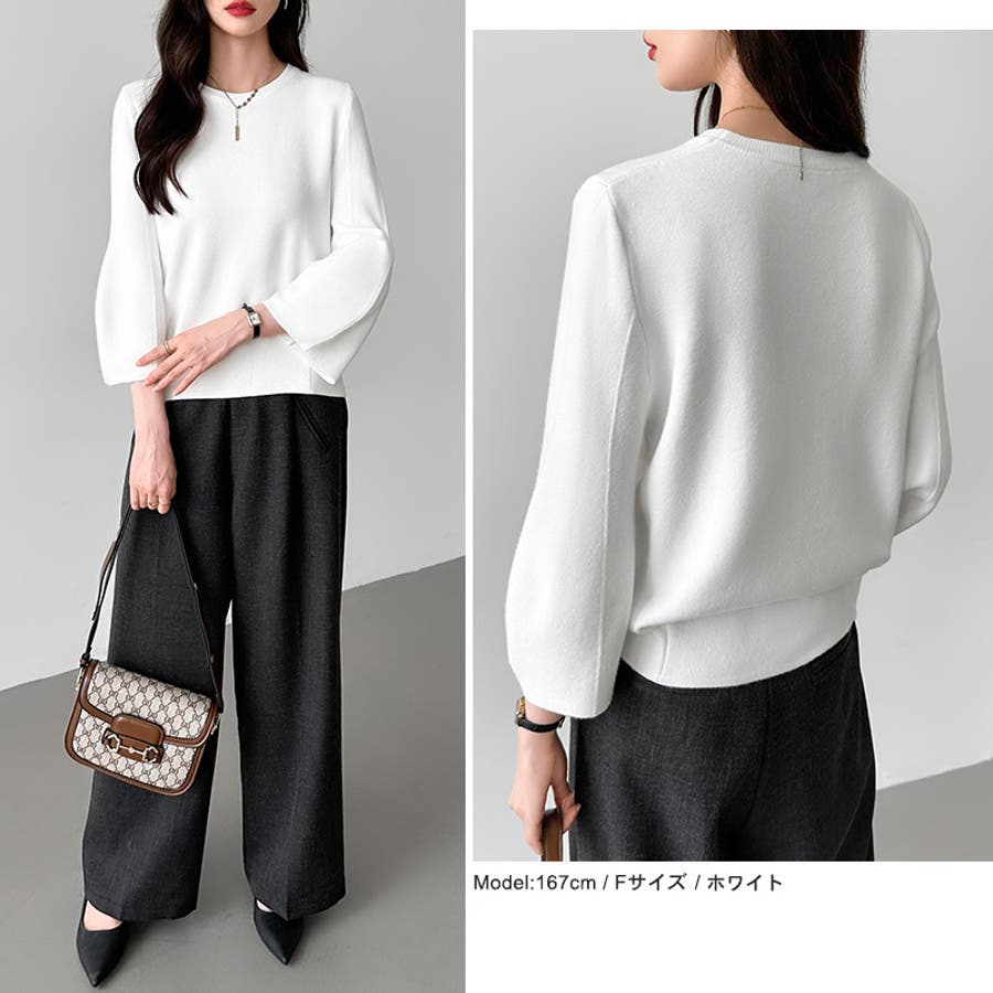 ニット トップス 七分袖 レディース ぽわん袖 立体フォルム ニットトップス タック ストレッチ セーター プルオーバー プルオーバーニット バルーン袖 カーブ 袖 クルーネック ラウンドネック ゆったり 大きめ 大きい おしゃれ きれいめ バルーンスリーブ 立体 タックヘム ダーツ7分袖 7分袖 ニットセーター ニットレディース tops ぽわん ポワン袖 ポワン ボリューム袖 ボリューム 着回し 伸縮性 アクリル チクチクしない チクチクしにくい ちくちくしにくい ふわ ふんわり もちもち 柔らかい やわらかい やわらか ソフトな肌触り ソフト ヤク風 あったか 通勤 通学 オフィス オフィスカジュアル オフィスカジュアル秋冬 カジュアル 上品 きれい キレイめ 大人 オトナ かわいい 可愛い 大人可愛い オトナ女子 オシャレ 女性 母 ママ ママコーデ プチプラ 高見え フリーサイズ トレンド ヒット 商品 おすすめ 服 ファッション フリー サイズ フリーサイズ ホワイト 白 ベージュ ブルーグレー 青 水色 レッド 赤 ブラック 黒 きれい色 新作 秋冬 春秋 春 秋 冬 春服 秋服 冬服 韓国 韓国ファッション 20代 30代 40代 50代 60代 cocomomo ココモモ グレー 灰色 グリーン 緑 ブルー ピンク オレンジ ブラウン 茶色