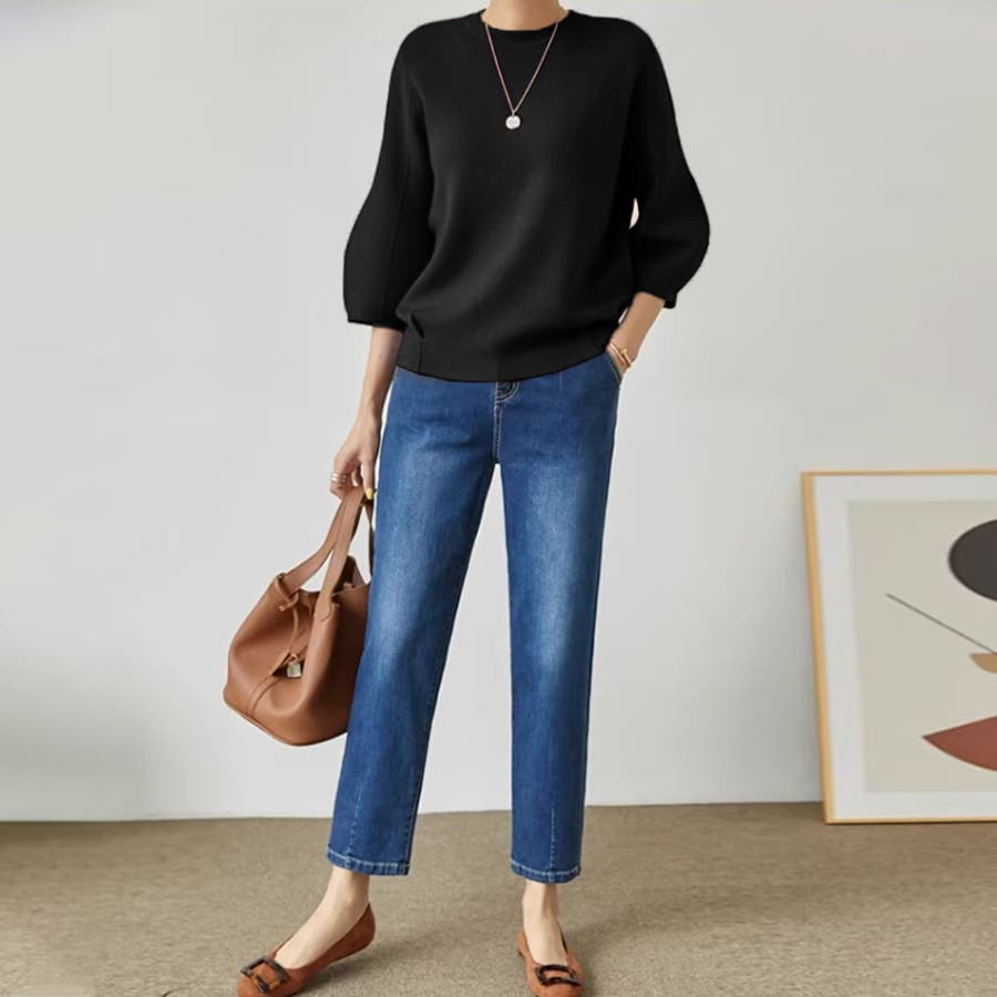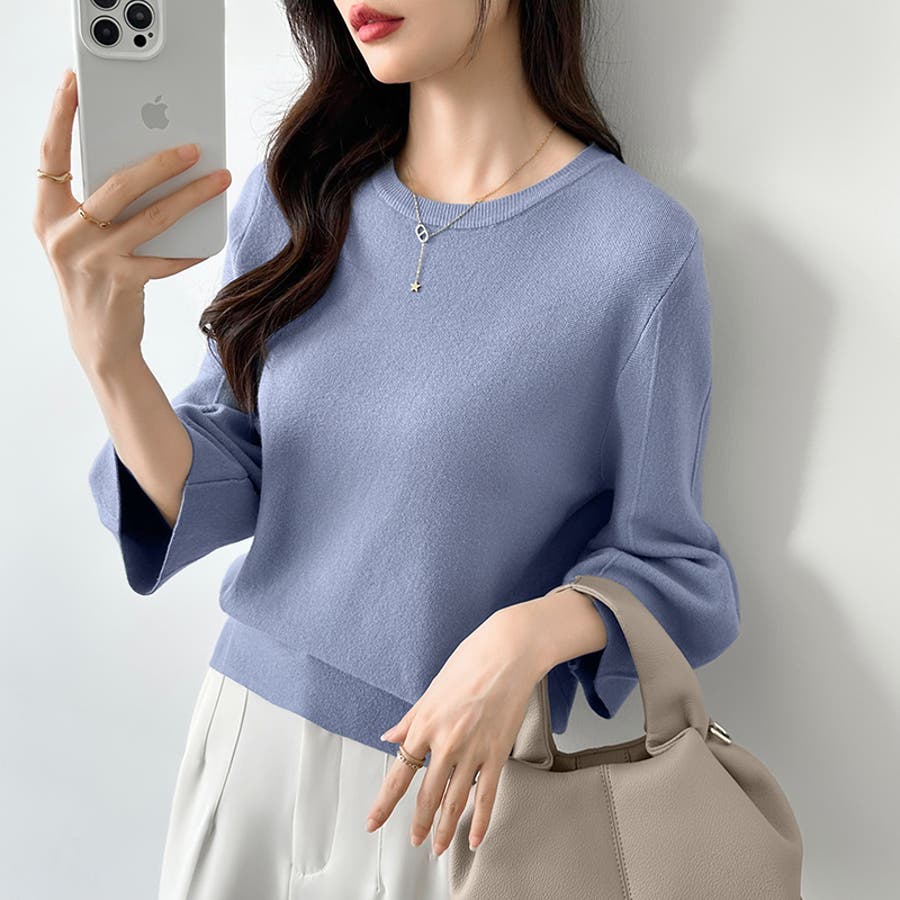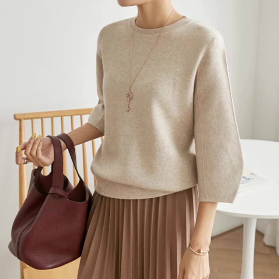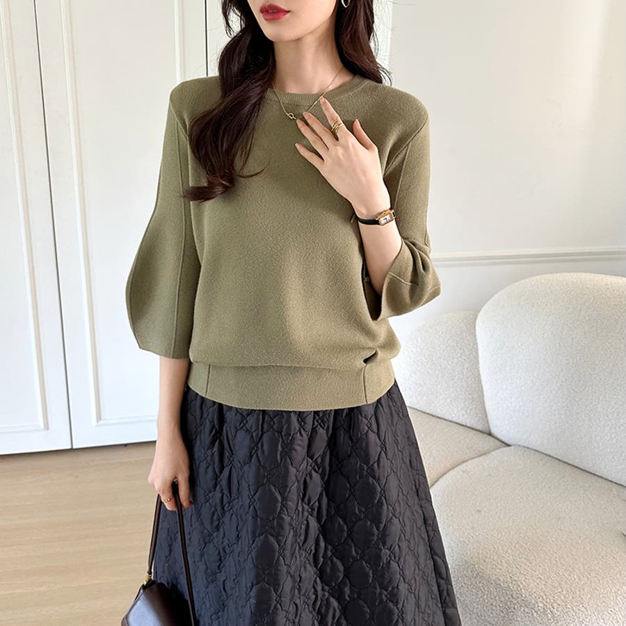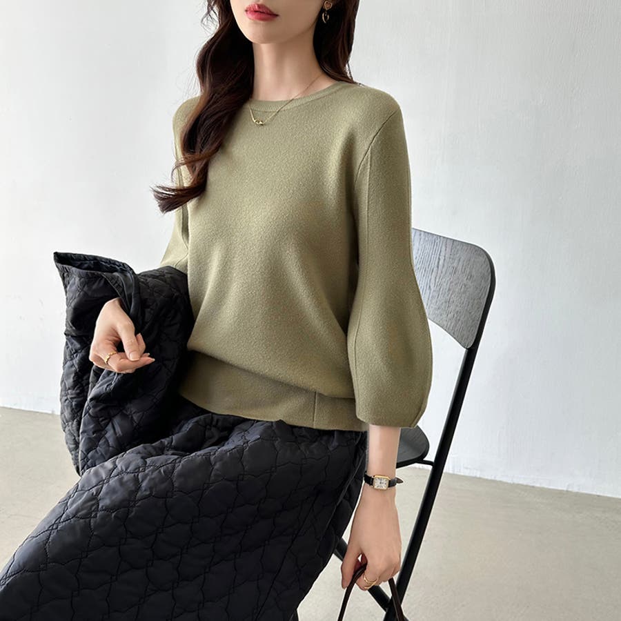 七分袖ニット。