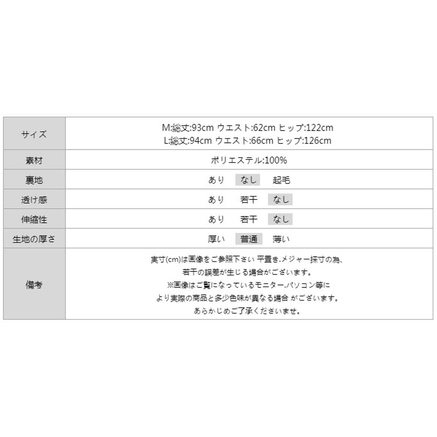 | サイズ | M: 総丈 93cm ウエスト 62cm ヒップ 122cm L: 総丈 94cm ウエスト 66cm ヒップ 126cm |
