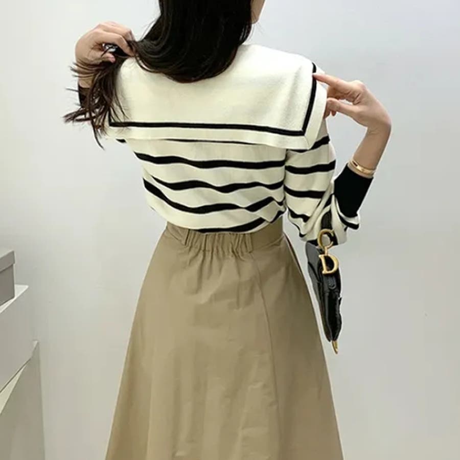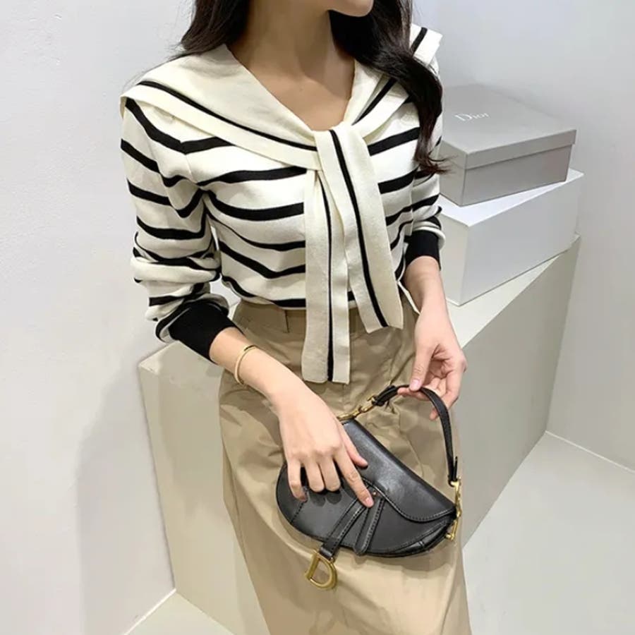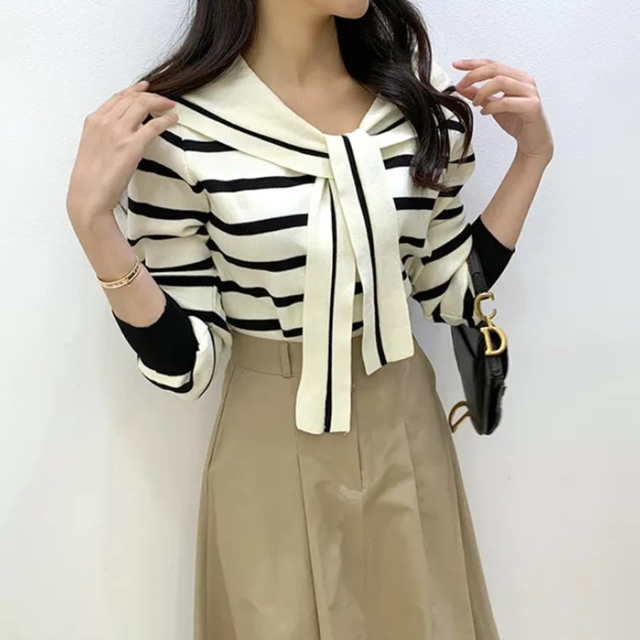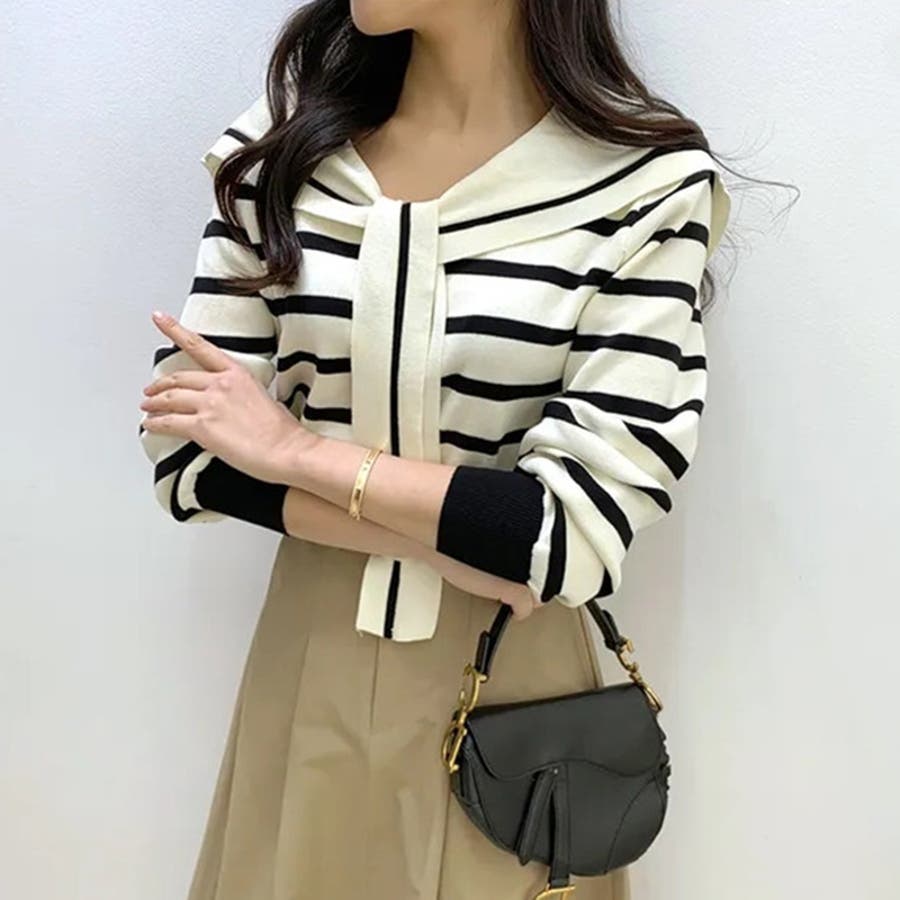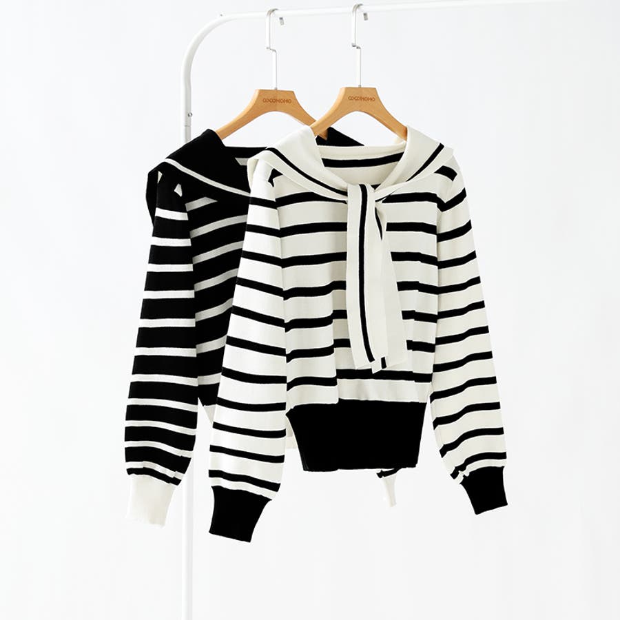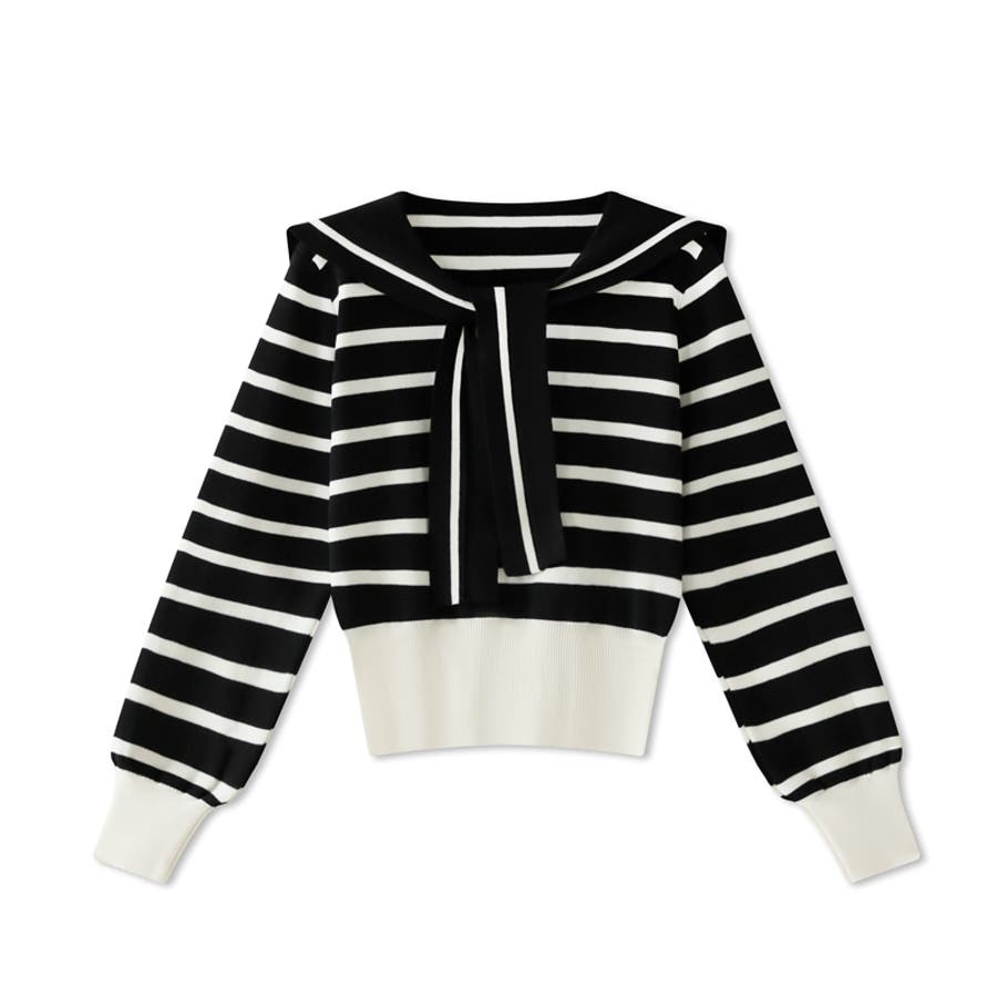 セーラーカラー ボーダー 長袖 トップス マリン 大人 ニット レディース クロップド Vネック ビッグカラー リブ ボーダーニット 配色 ボウタイ 大人可愛い クロップドトップス ニットトップス ニット生地 ボーダートップス 長袖ニット ボーダー柄 柄 セーラー ケープカラー 襟付き 襟 リボン りぼん ショート 丈 ショート丈 海 vネック tops v やわらかい やわらか ソフトな肌触り アクリル チクチクしない ニットレディース こなれ感 洗濯できる 洗濯機で洗える 1枚で決まる カジュアル 大人 かわいい 可愛い おしゃれ オシャレ プチプラ 高見え トレンド ヒット 商品 おすすめ 服 ファッション コーデ ランキング 人気 ママ ママコーデ 母 女性 女子 母の日 アイボリー ブラック 黒 白黒 カラー フリーサイズ 秋ニット 春ニット 冬ニット 春トップス 秋トップス 冬トップス 新作 秋冬 春 秋 冬 春服 秋服 冬服 韓国 韓国ファッション 10代 20代 30代 40代 50代 cocomomo ココモモ