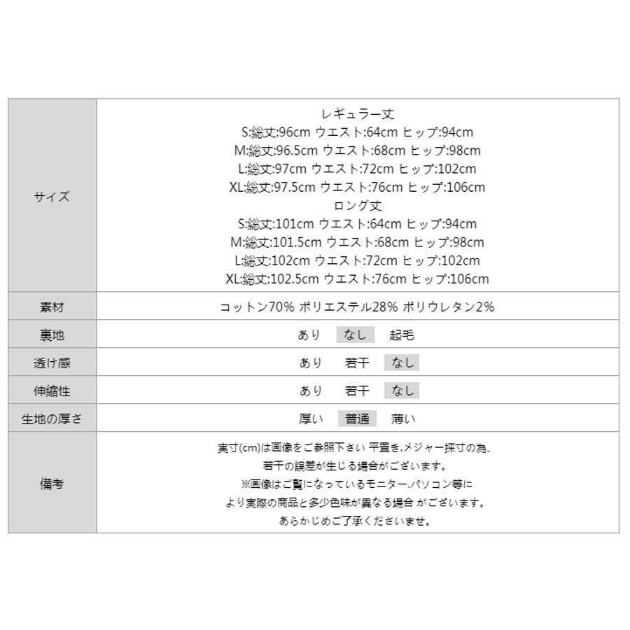 | サイズ | レギュラー丈 S: 総丈 96cm ウエスト 64cm ヒップ 94cm M: 総丈 96.5cm ウエスト 68cm ヒップ 98cm L: 総丈 97cm ウエスト 72cm ヒップ 102cm XL: 総丈 97.5cm ウエスト 76cm ヒップ 106cm ロング丈 S: 総丈 101cm ウエスト 64cm ヒップ 94cm M: 総丈 101.5cm ウエスト 68cm ヒップ 98cm L: 総丈 102cm ウエスト 72cm ヒップ 102cm XL: 総丈 102.5cm ウエスト 76cm ヒップ 106cm |
