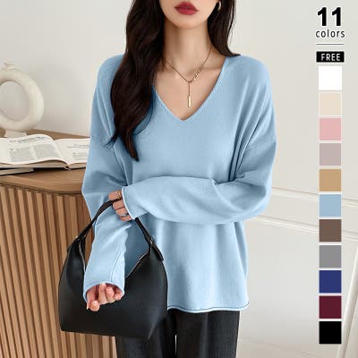 もっちり柔らかルーズニット Vネックニット オフィスカジュアル