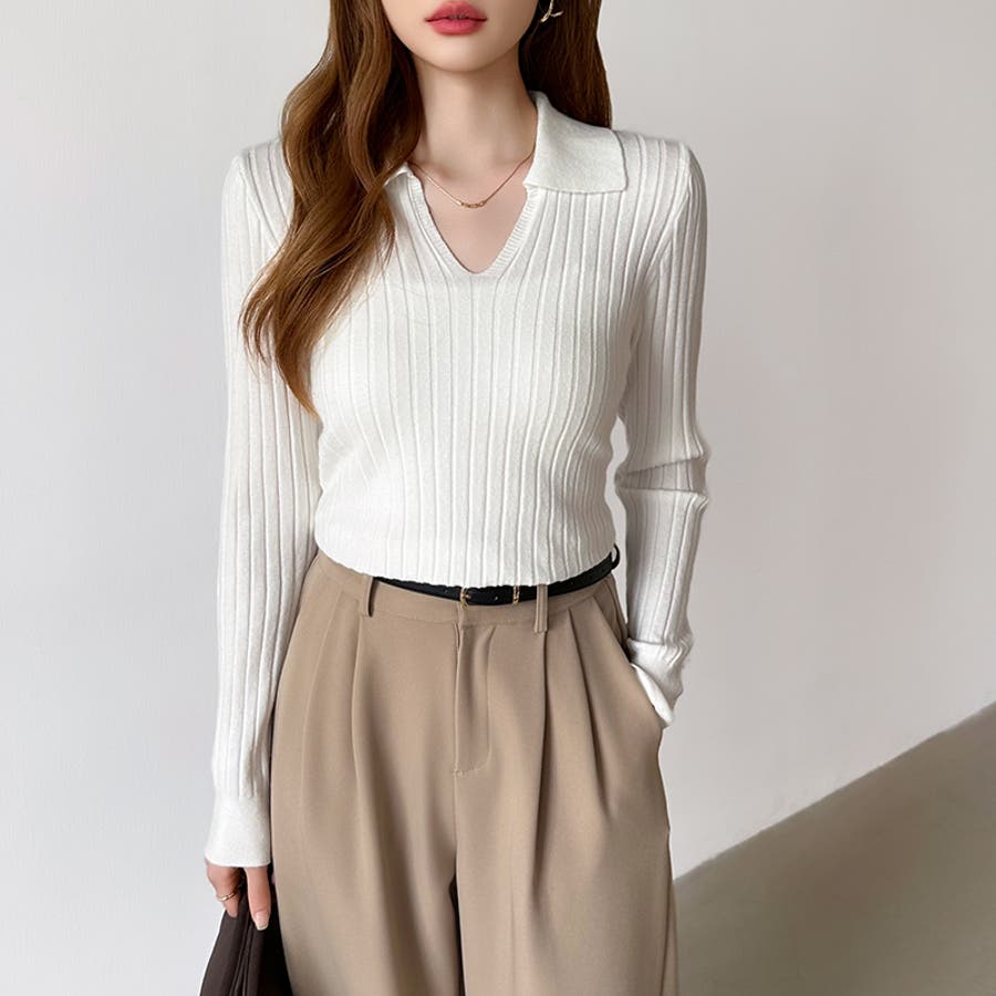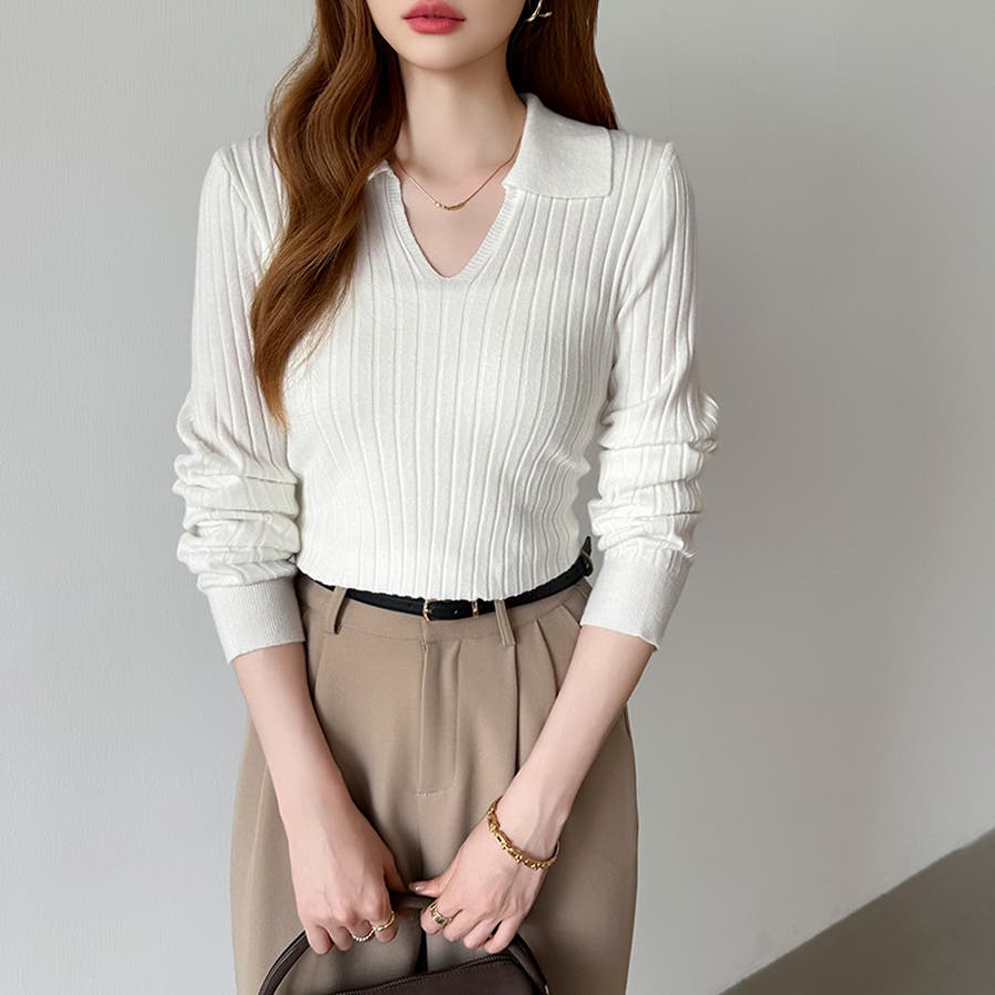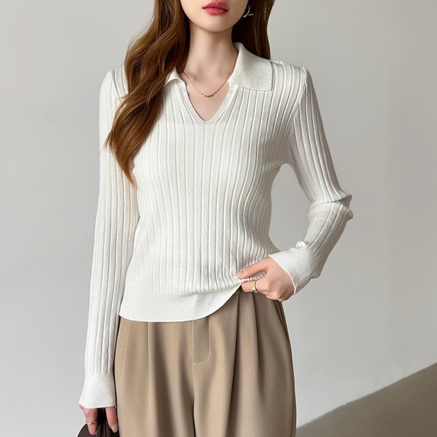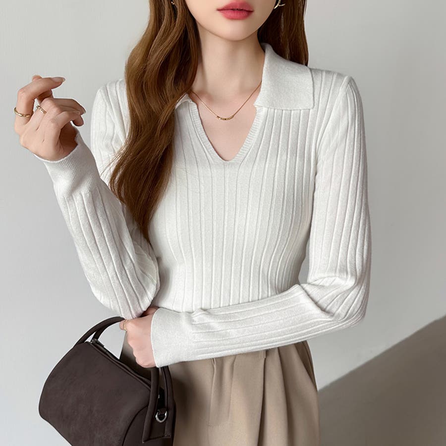 ニット スキッパーネック リブニット トップス 長袖 レディース 襟付き リブ フィット プルオーバー シンプル 無地 スキッパー ポロ ニットセーター セーター おしゃれ v vネック Vネック ニットトップス 長袖ニット タイト 襟 付き tops 着回し 伸縮性 ストレッチ 細見え 華奢見え ニットレディース アクリル アクリル100% 柔らかい やわらかい やわらか ソフトな肌触り ソフトな肌触り チクチクしにくい チクチクしない 洗濯できる ヤク風 ヤク風ニット 1枚で決まる 洗える 洗濯機で洗える ノーアイロン あたたかい あったか 暖かい 暖か 韓国風 韓国コーデ カジュアル 大人 オトナ かわいい 可愛い 大人可愛い きれい め きれいめ キレイめ オシャレ 女性 母 ママ ママコーデ プチプラ 高見え トレンド デザイン コーデ ヒット 商品 おすすめ 服 衣料 ファッション フリーサイズ フリー サイズ ホワイト 白 ライトブラウン 茶色 ブラック 黒 カラー 秋色 秋物レディース 秋物 冬物 新作 秋冬新作 春秋 秋冬 春 秋 冬 春服 秋服 冬服 韓国 韓国ファッション 10代 20代 30代 40代 50代 cocomomo ココモモ